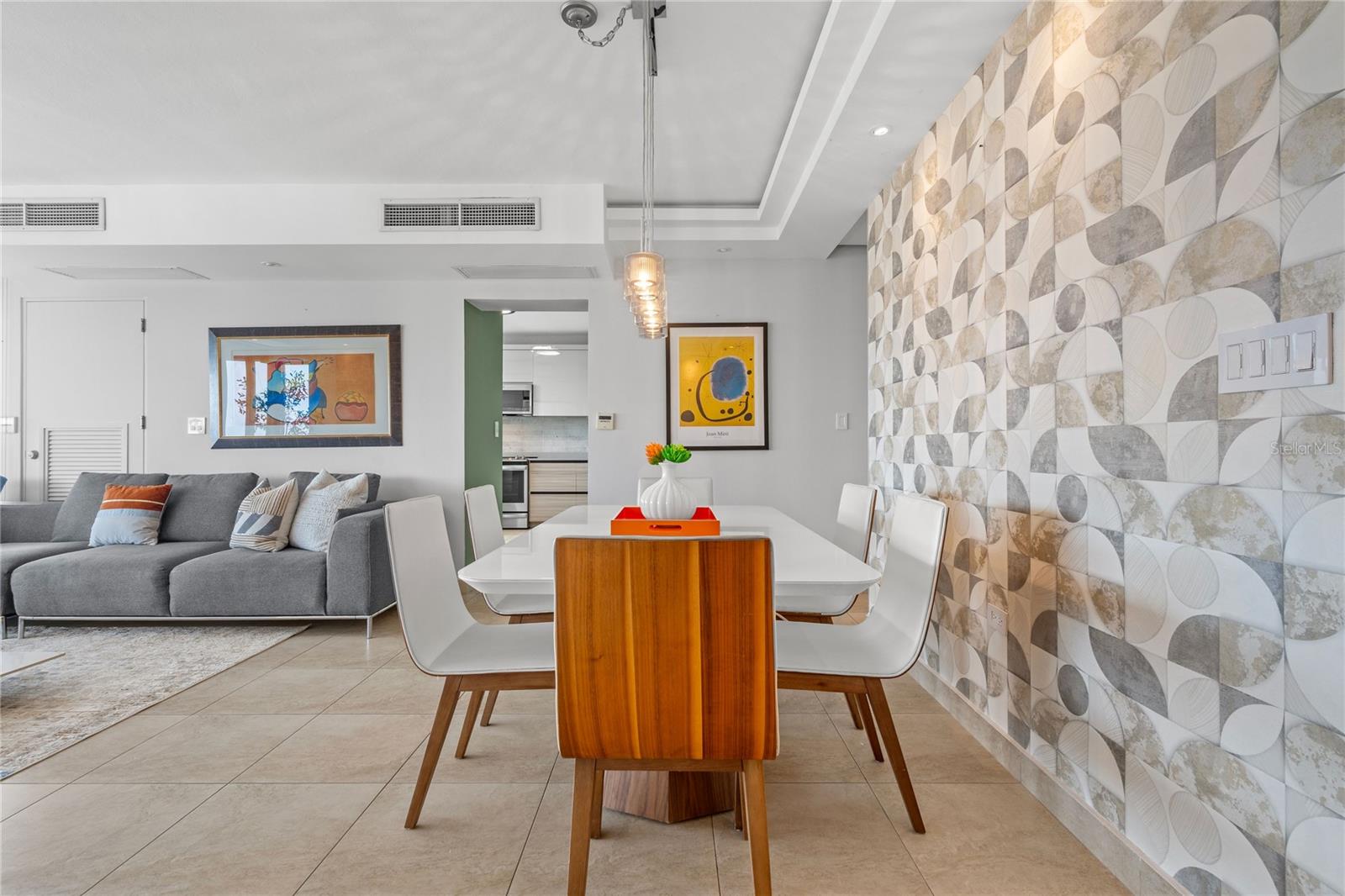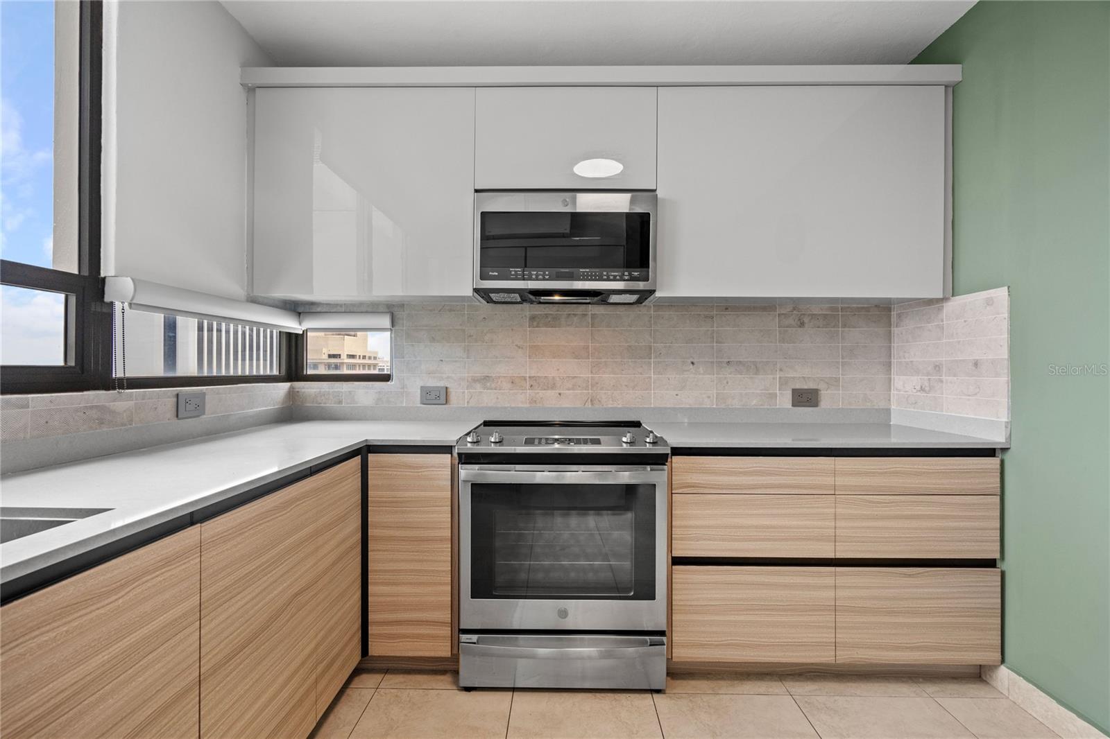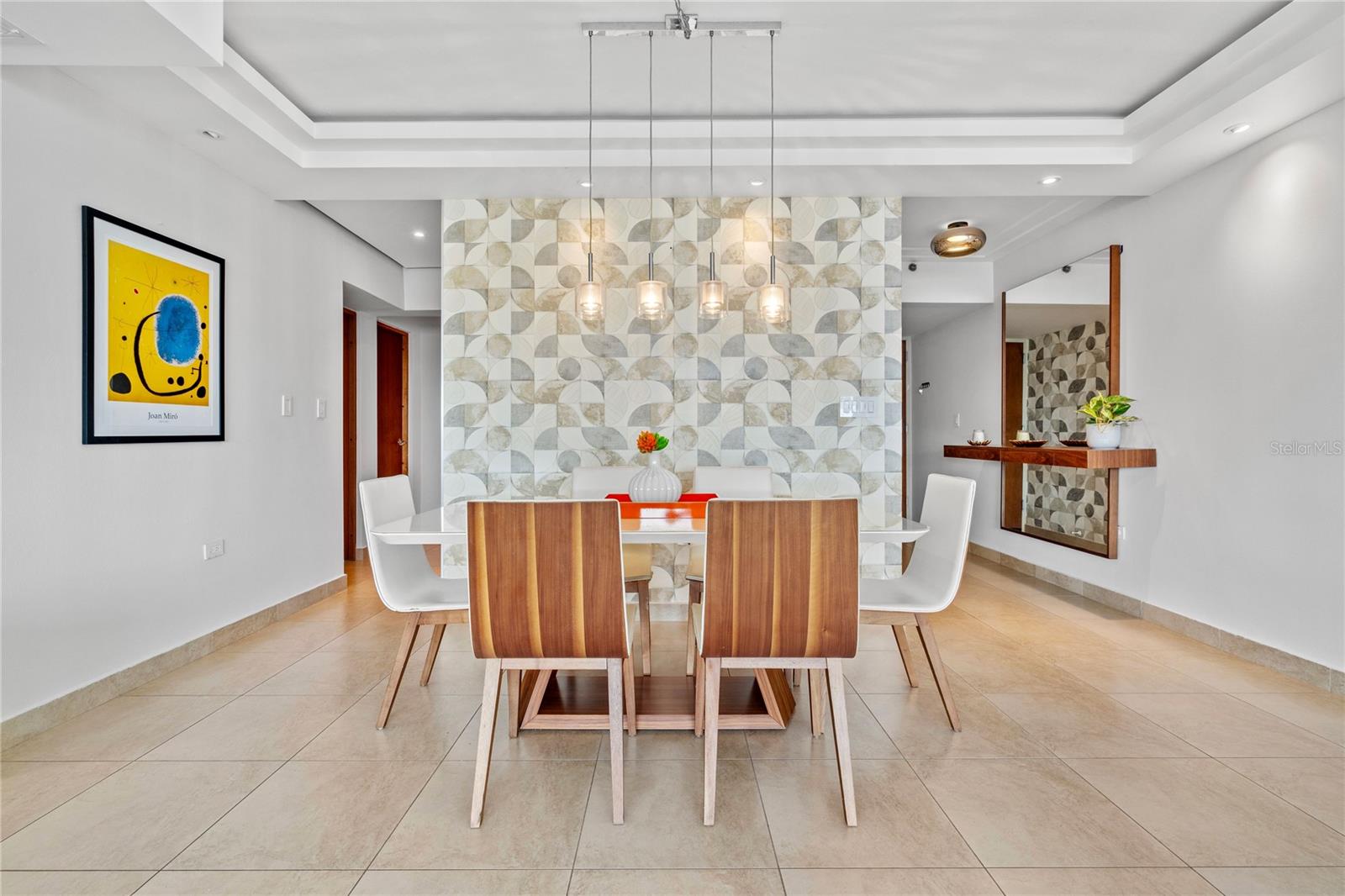 Quantum Metrocenter, known for its two imposing circular towers and recognized for its architectural brilliance, stands among the tallest buildings in Puerto Rico. This beautifully furnished and decorated apartment features 3 bedrooms, 2 full bathrooms, and a spacious living and dining area with floor-to-ceiling glass windows. The unit boasts one balcony and one terrace: one accessible from the living room area and another that can be accessed through all three bedrooms. The recently renovated modern European-style kitchen with quartz countertops, complements the elegant interiors. The master suite includes a walk-in closet and a luxurious bathroom with a double vanity, whirlpool, and separate shower.