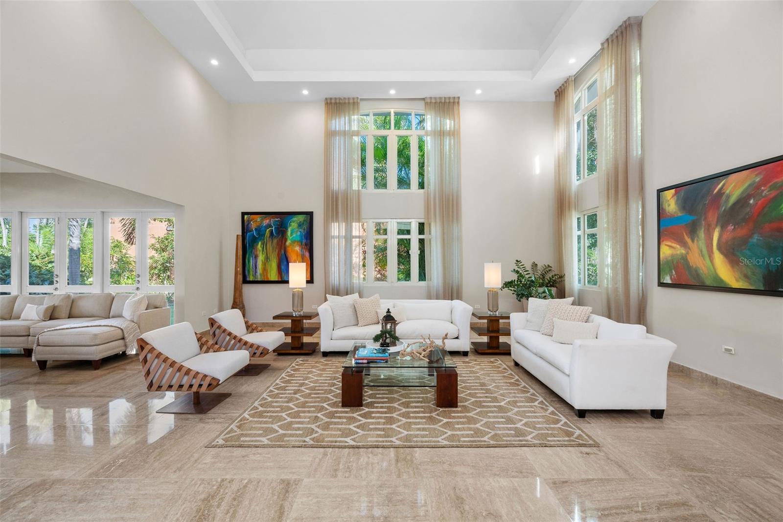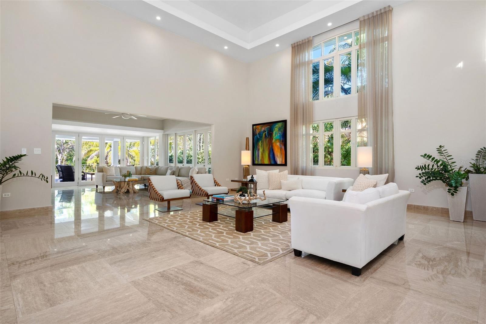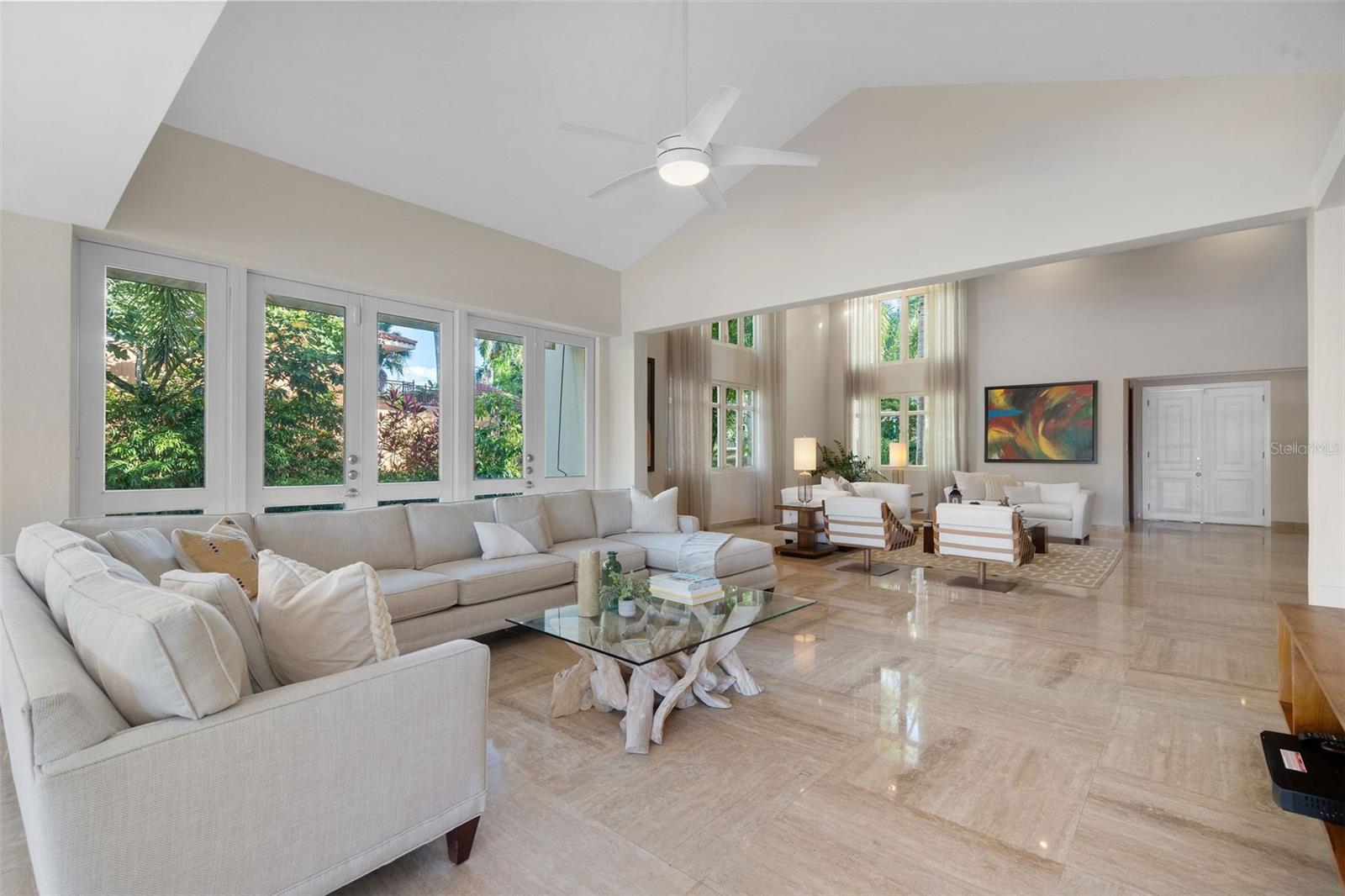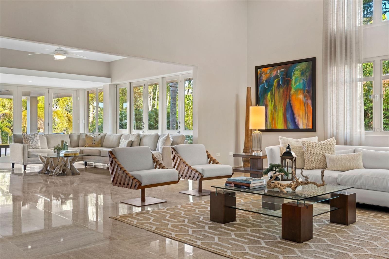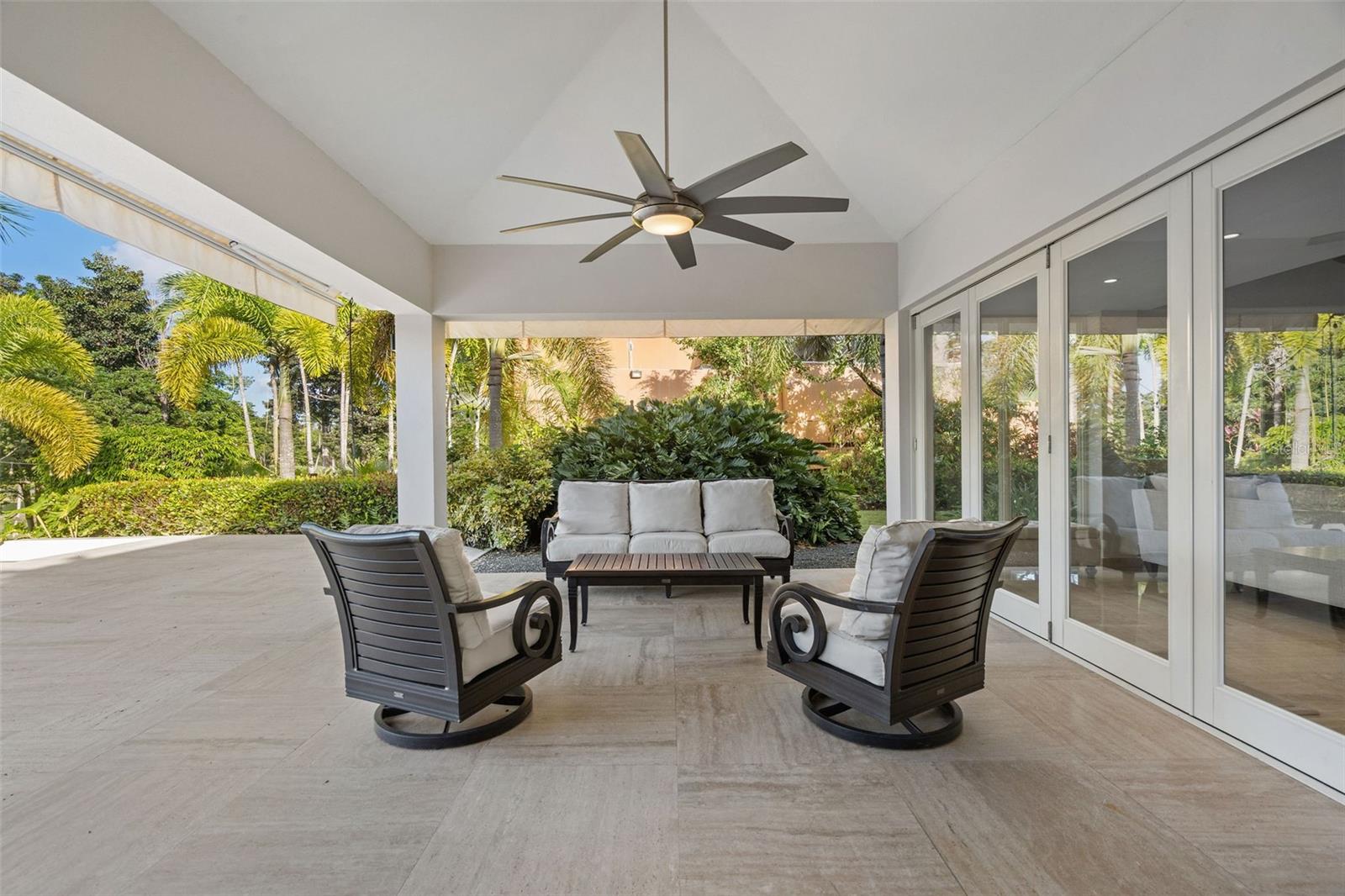 This sun-drenched and spacious property has 5 bedrooms, 6.5 bathrooms over 6,000 sq. ft. and sits within a lush and tropical community. The open and contemporary property boasts cathedral ceilings, tiled floors throughout, a dream kitchen with all high-end appliances and a secluded, fully-furnished outdoor patio/backyard. Large Infinity Pool overlooking the East Golf Course