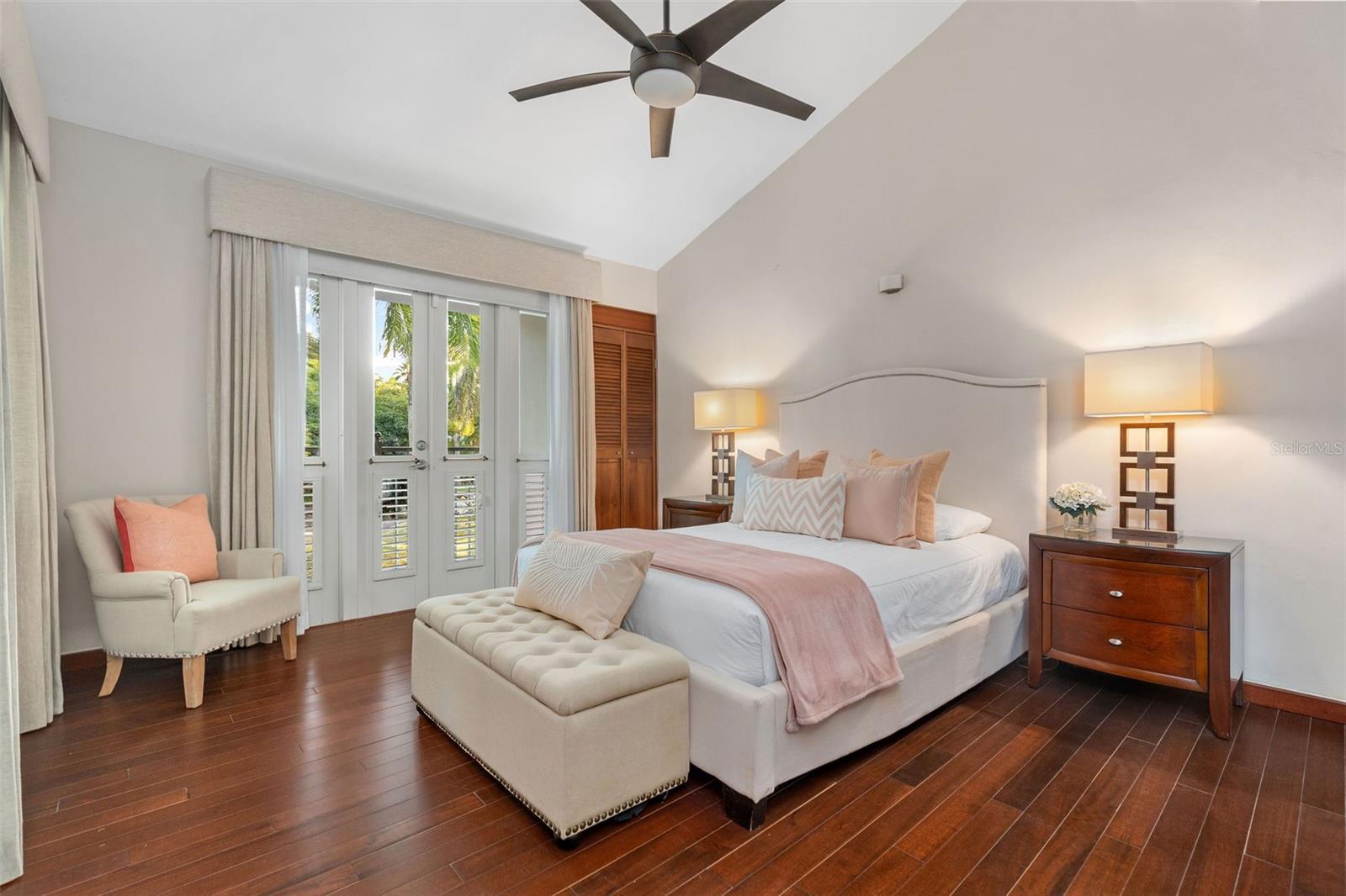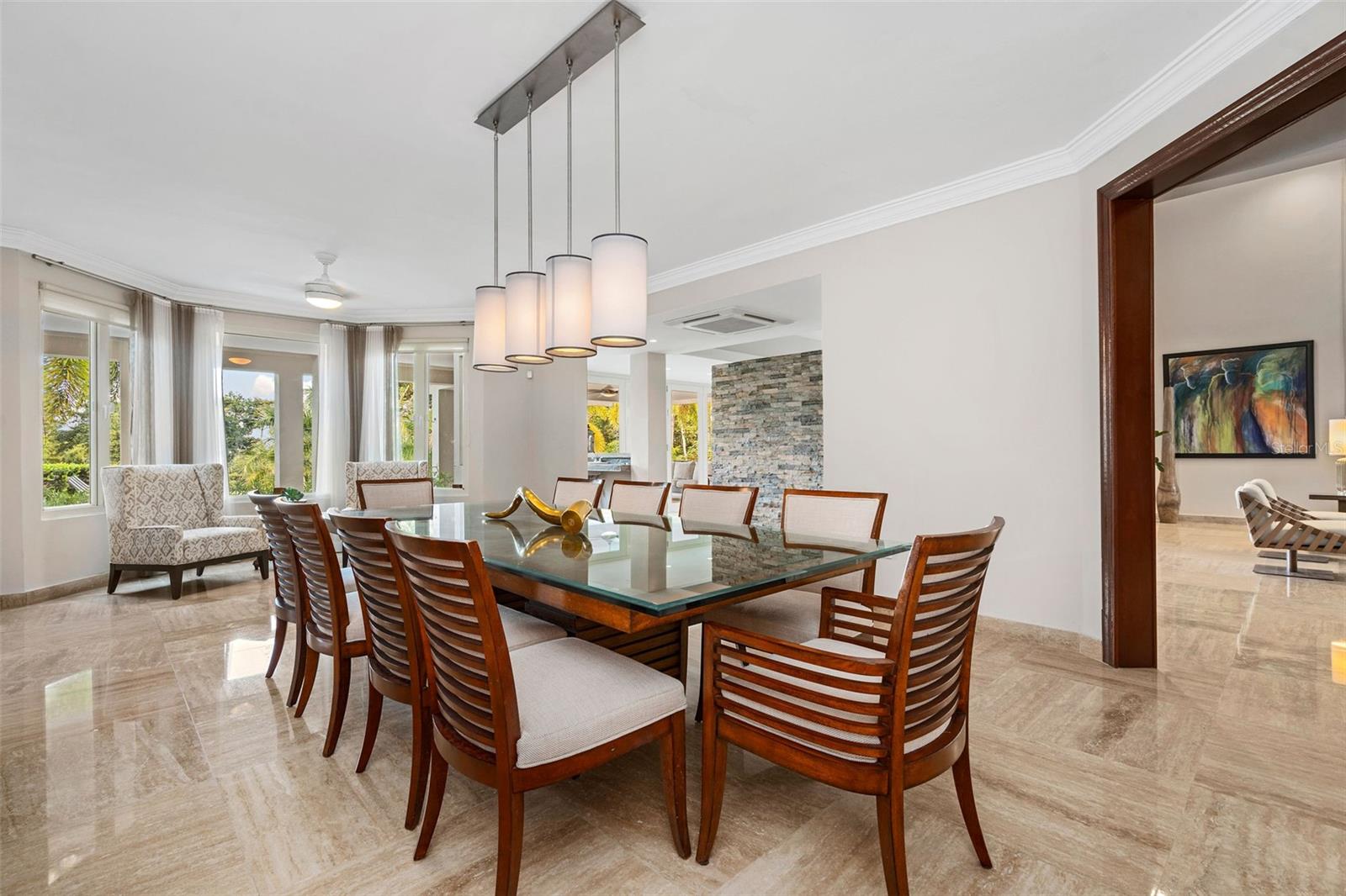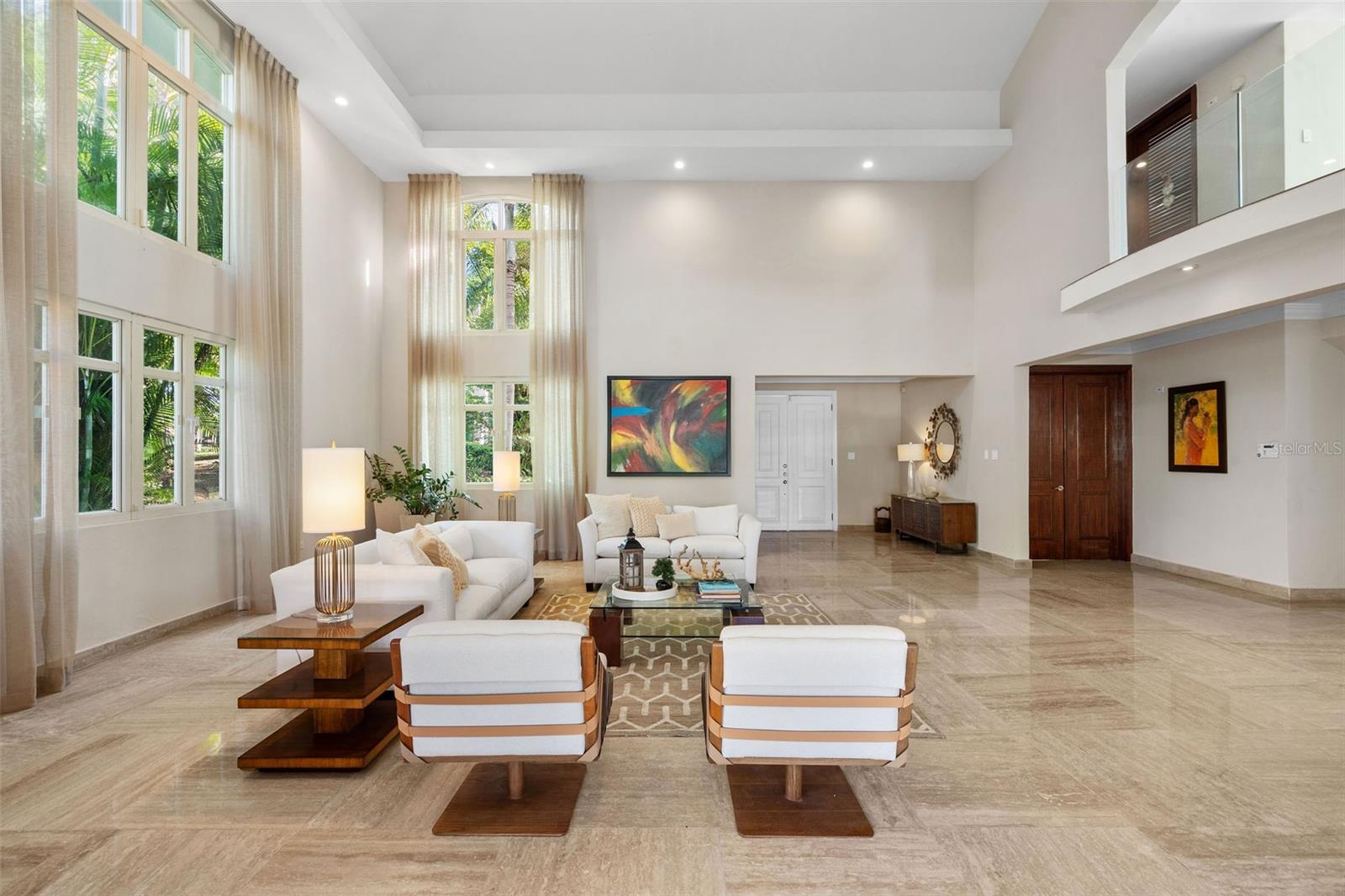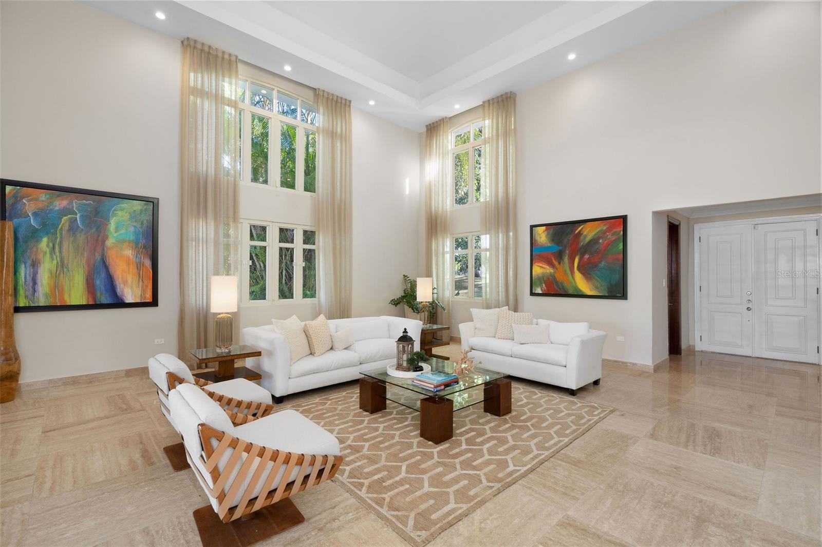 This sun-drenched and spacious property has 5 bedrooms, 6.5 bathrooms over 6,000 sq. ft. and sits within a lush and tropical community. The open and contemporary property boasts cathedral ceilings, tiled floors throughout, a dream kitchen with all high-end appliances and a secluded, fully-furnished outdoor patio/backyard. Large Infinity Pool overlooking the East Golf Course
