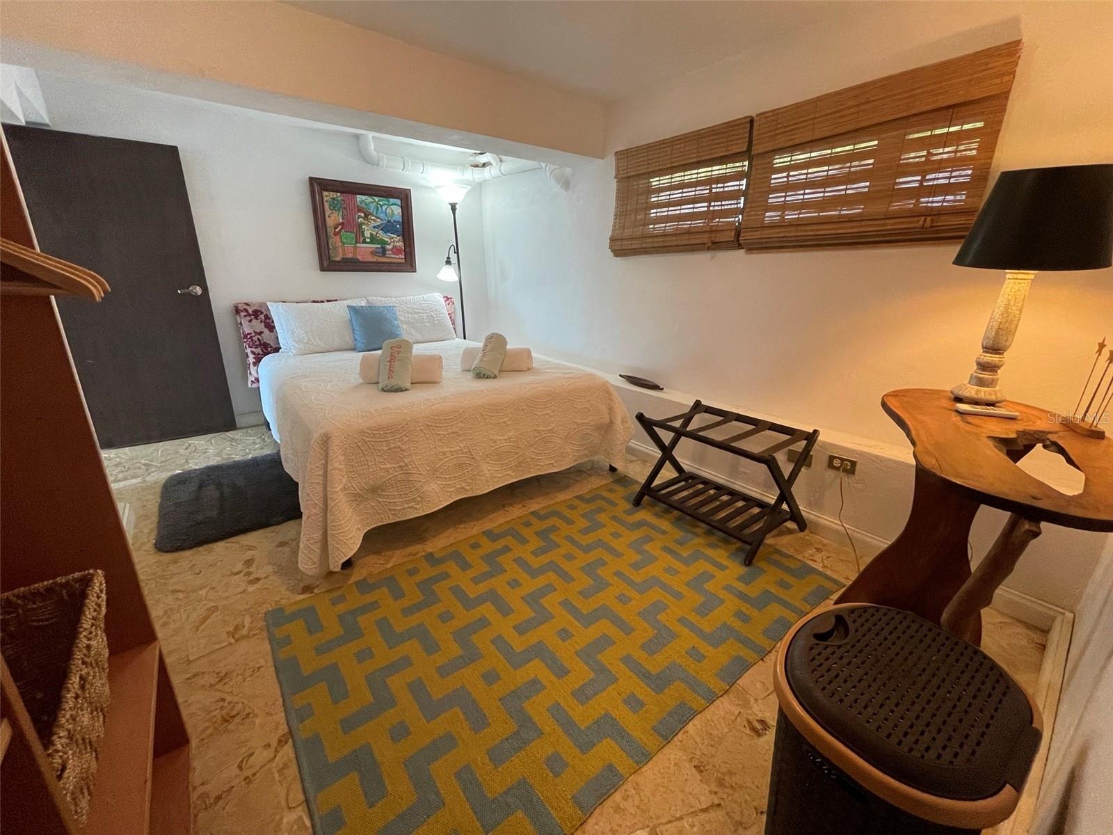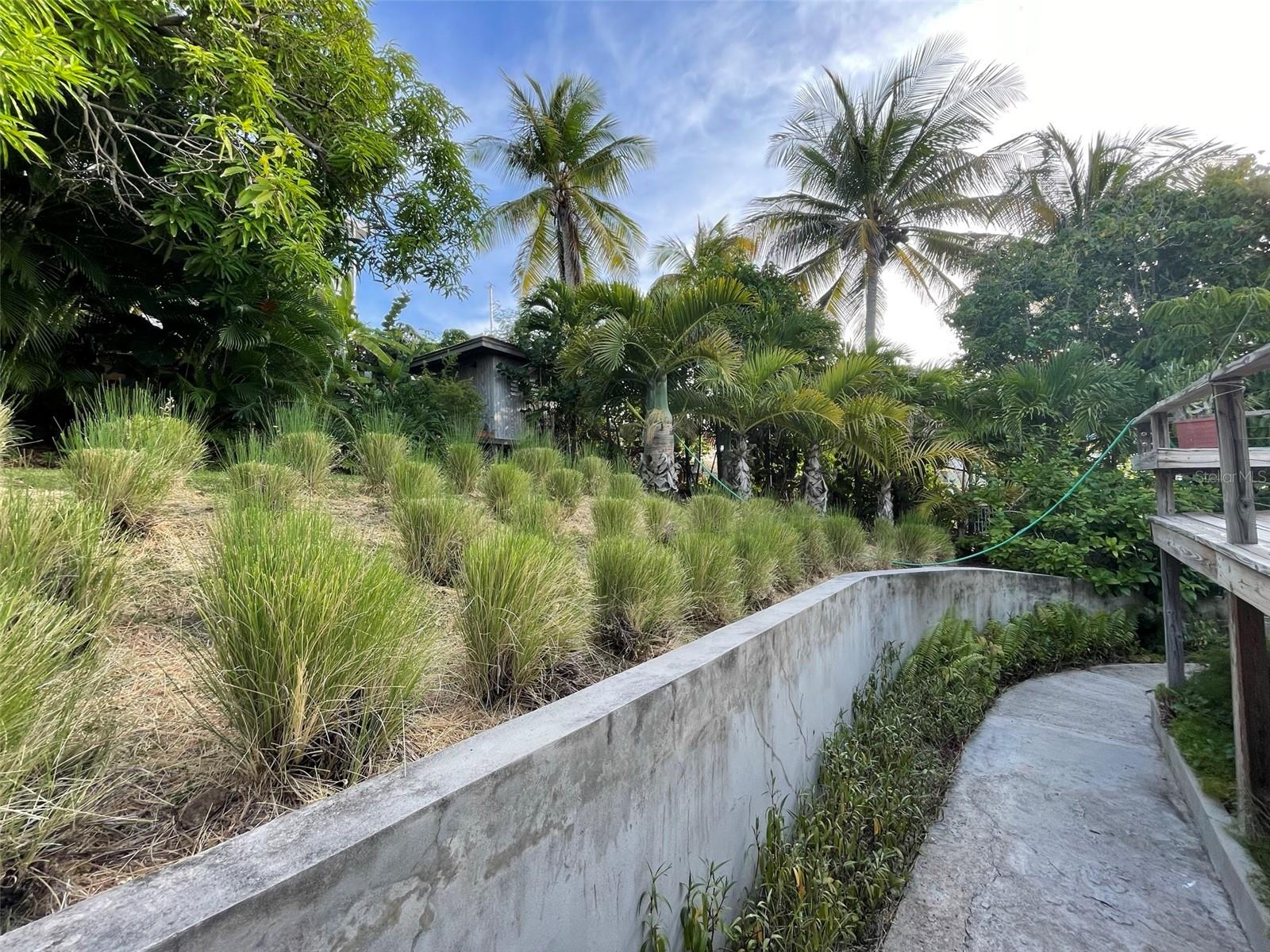 Additional amenities include natural stone tile flooring throughout, a garage located below the deck, and a backyard casita offering flexible use as a storage room, workshop, or artist’s studio. The mature tropical landscaping surrounding the property enhances the sense of privacy and tranquility.