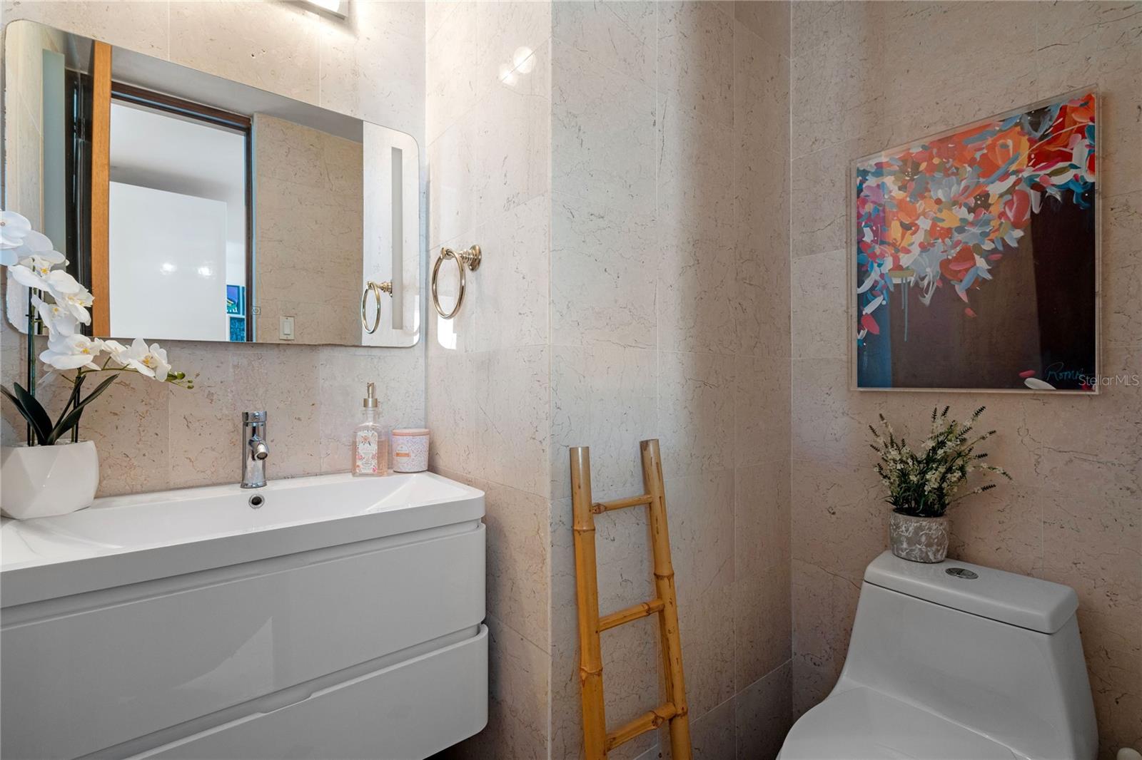 The second level is dedicated to private quarters, including the luxurious primary suite, boasting expansive windows, a five-fixture en-suite primary bathroom, and a spacious built-in walk-in closet. An additional junior suite with its own en-suite bathroom and walk-in closet provides a comfortable space for guests, while two additional bedrooms share a well-appointed bathroom.