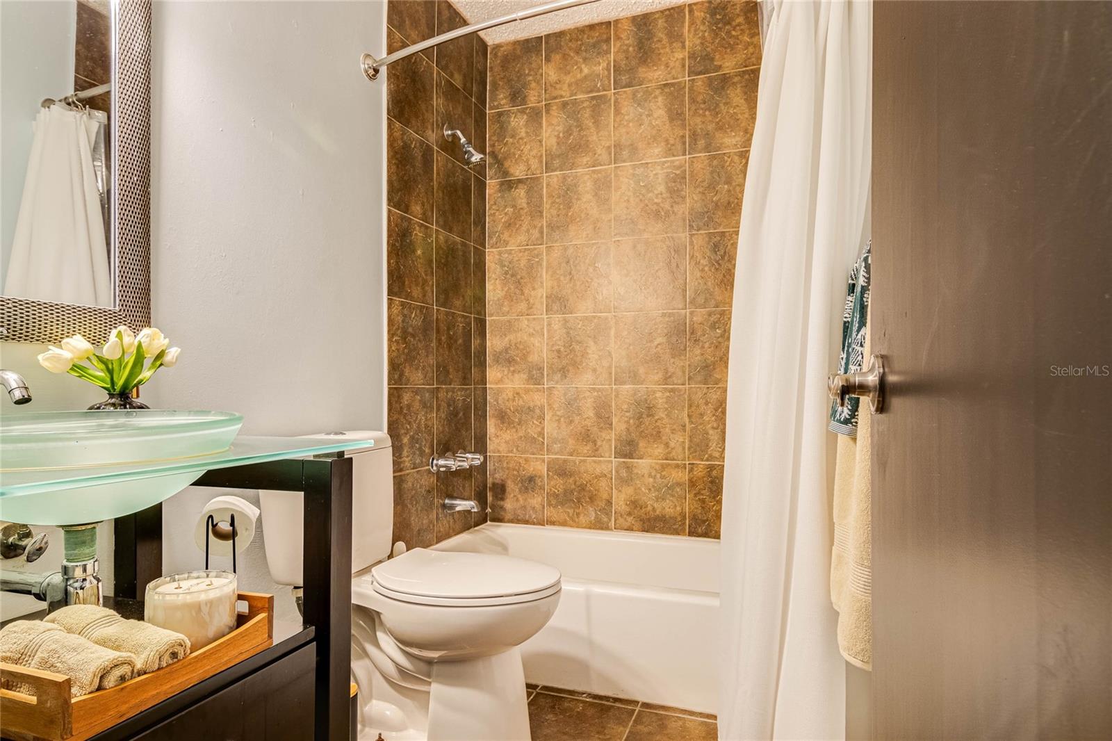 The apartment is fully air-conditioned with individual A/C units in all areas. Washer and dryer included. The building offers excellent amenities such as a large swimming pool, gazebo, and beautiful common areas. Security guard on-site. One assigned parking space.
