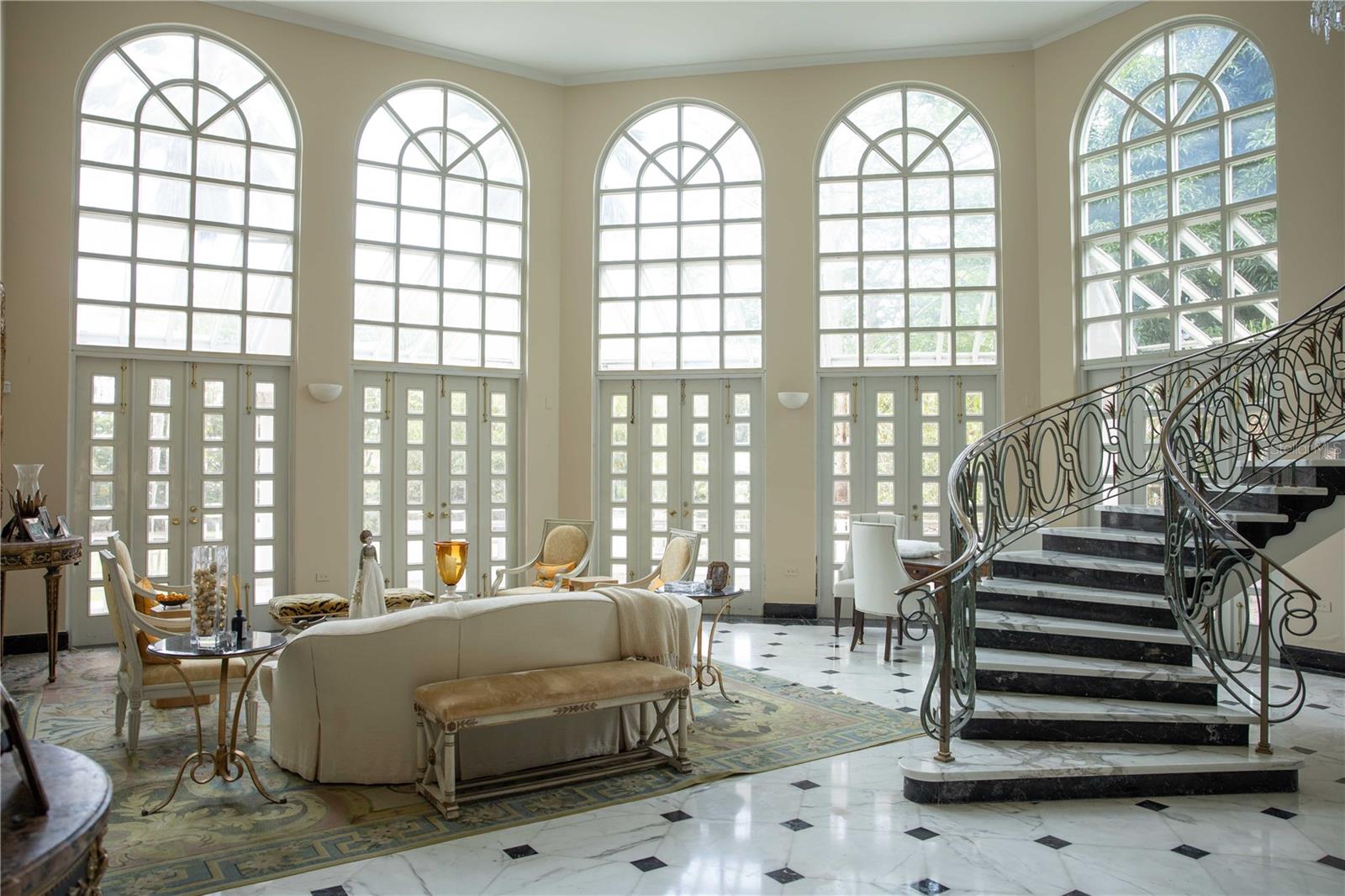 This two-story residence features 7 ensuite bedrooms, 10 full bathrooms, 2 powder rooms, and a private guest house, offering an exceptional level of comfort and privacy. The grand interior showcases an open floor plan, soaring ceilings in the living and formal dining areas, abundant natural light, and breathtaking backyard views. Unique Carrara marble floors, a designer kitchen with top-of-the-line Monogram appliances, central A/C, an elegant library, a spacious family room, a maid’s quarter, and a laundry room complete the thoughtfully curated interiors.
