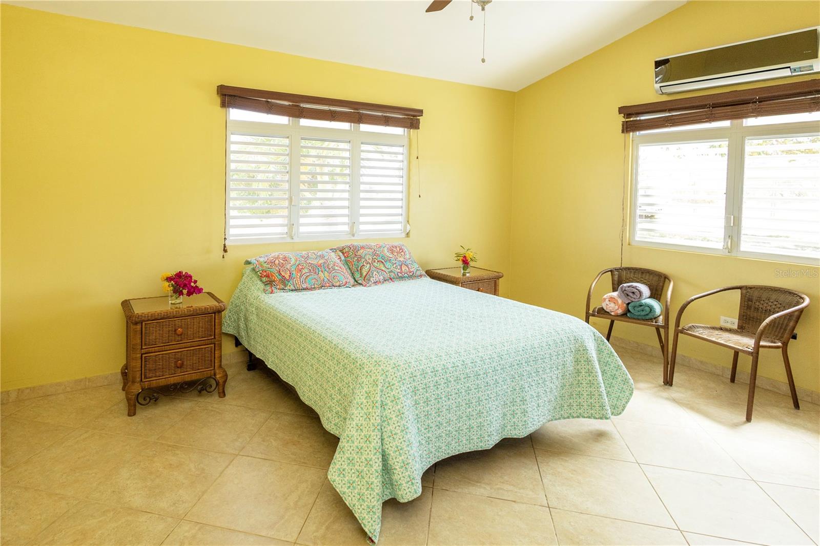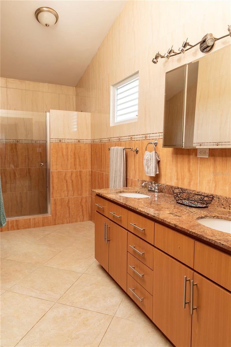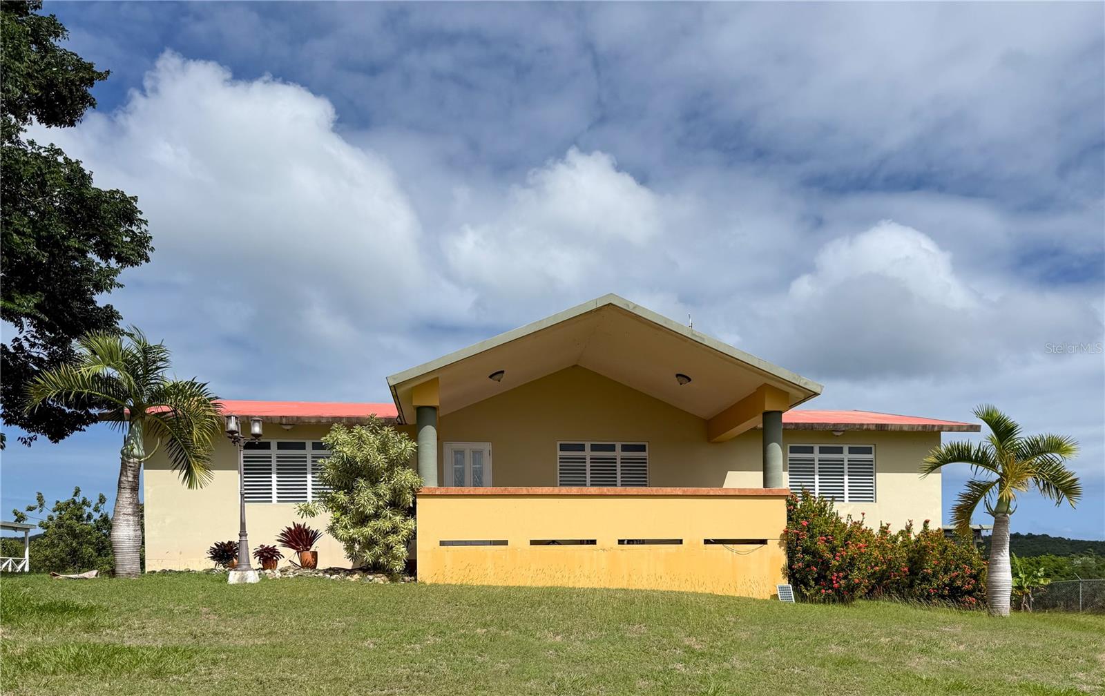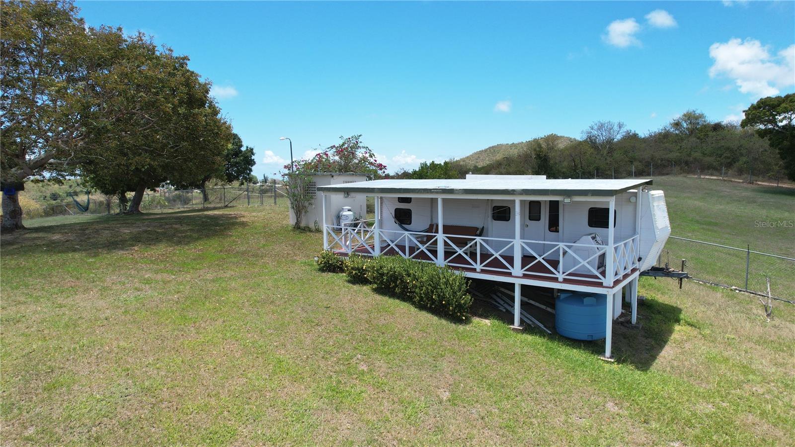 Built to withstand, the sturdy structure of poured concrete is comfortably designed, appointed, and spacious. The property features an open and generously sized living room and dining room with granite countertops, three bedrooms, two bathrooms and a separate two bed, one bath guest bungalow. Well fenced and fully equipped with a security system, air conditioning, solar system, generator, a dual chamber cistern that holds a rain water and public water supply, and a separate two car garage. The large garage has high ceilings and can hold a second story and be easily converted into an additional unit.