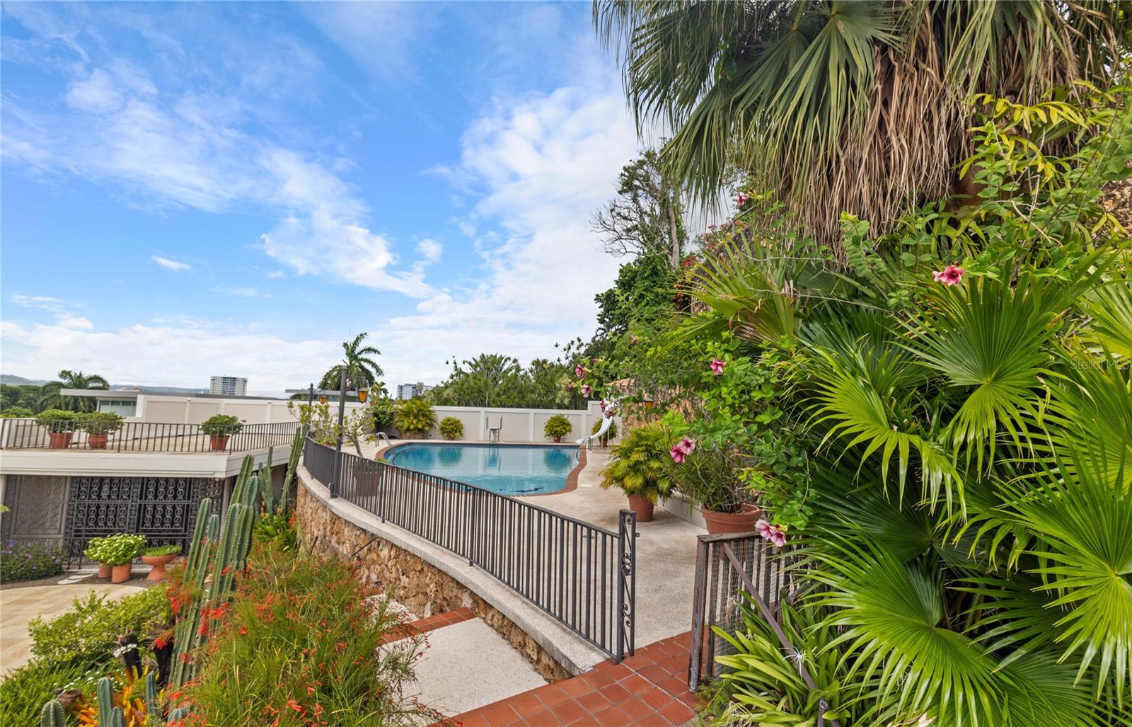 Experience serenity in this elegant home, perched on a small hill in Villa Caparra, Guaynabo, offering stunning city views of Guaynabo and San Juan. Enjoy the privacy of this residence and the refreshing breeze from the trade winds. Located in a gated and secure community with easy access through multiple entry points, this house is an ideal retreat.