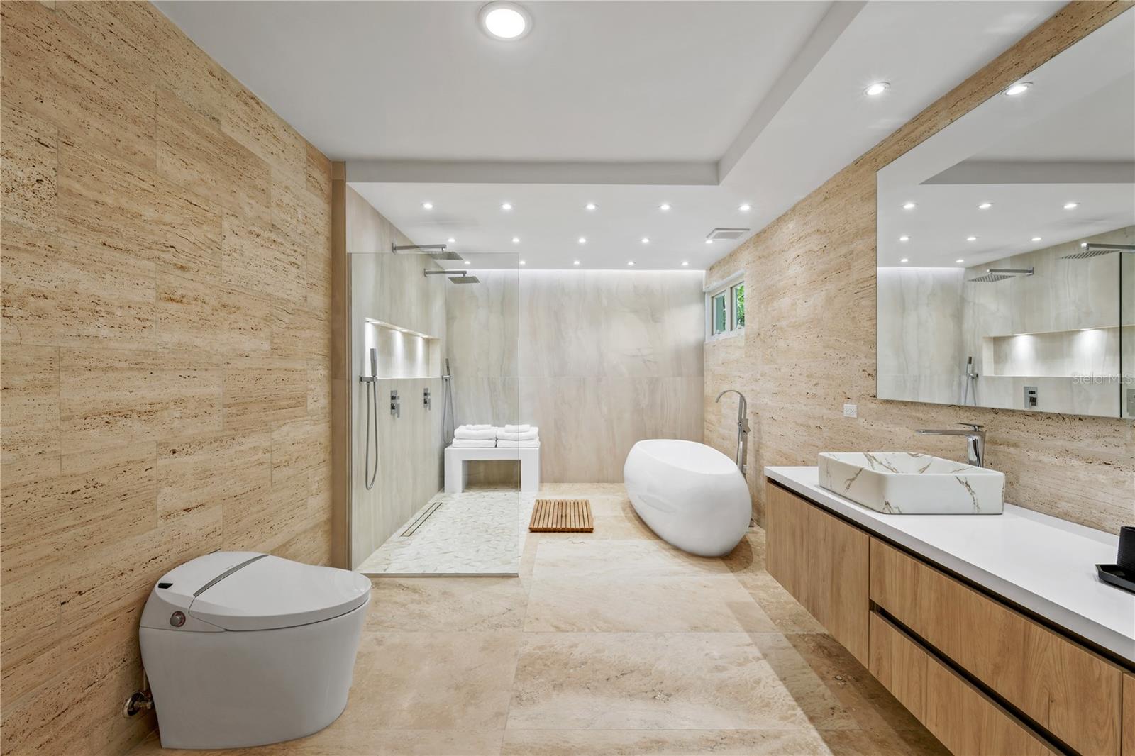 Highly sought after lakefront corner residence with approx. 5,088 interior Sq. Ft. and approx. 2,309 exterior Sq. Ft., 121 Dorado Beach East stands apart within the gated resort community of Dorado Beach East. Recently renovated and in mint condition, this 2-level home with guest casita is flooded with light and enjoys ultimate privacy in the lush backdrop of its scenic surroundings overlooking tropical vegetation. The 4-bed, 3.5-bath main residence showcases a modern aesthetic and exceedingly elegant custom features throughout the interior footprint, in addition to a double height living room with over 23' ceiling that seamlessly connects to the beautifully appointed dining room and designer top of the line kitchen with breakfast nook and wine cellar. A dedicated laundry room and home office also serves as some of the property's many highlights, as well as an impressive primary suite with a 19' x 12' walk-in closet and North-facing terrace that overlooks the outdoor entertainment space with pool and covered patio. The 1-bed, 1-bath guest casita which is the ideal space to host loved ones or friends affording sanctuary and the utmost comfort. A 2-vehicle carport, golf cart garage, water cistern and full-power generator are provided for added convenience, rounding out this exceptional property situated on almost half an acre of land, a rare and coveted find within the community. Dorado Beach is the premier resort in the Caribbean. Enjoy exclusive access to world-renowned amenities such as top golf courses, spa sanctuary, fitness center, biking trails, water sport facilities, beaches and more. Only a 30-minute drive away from San Juan. Experience the epitome of resort living while still being in close proximity to the city.