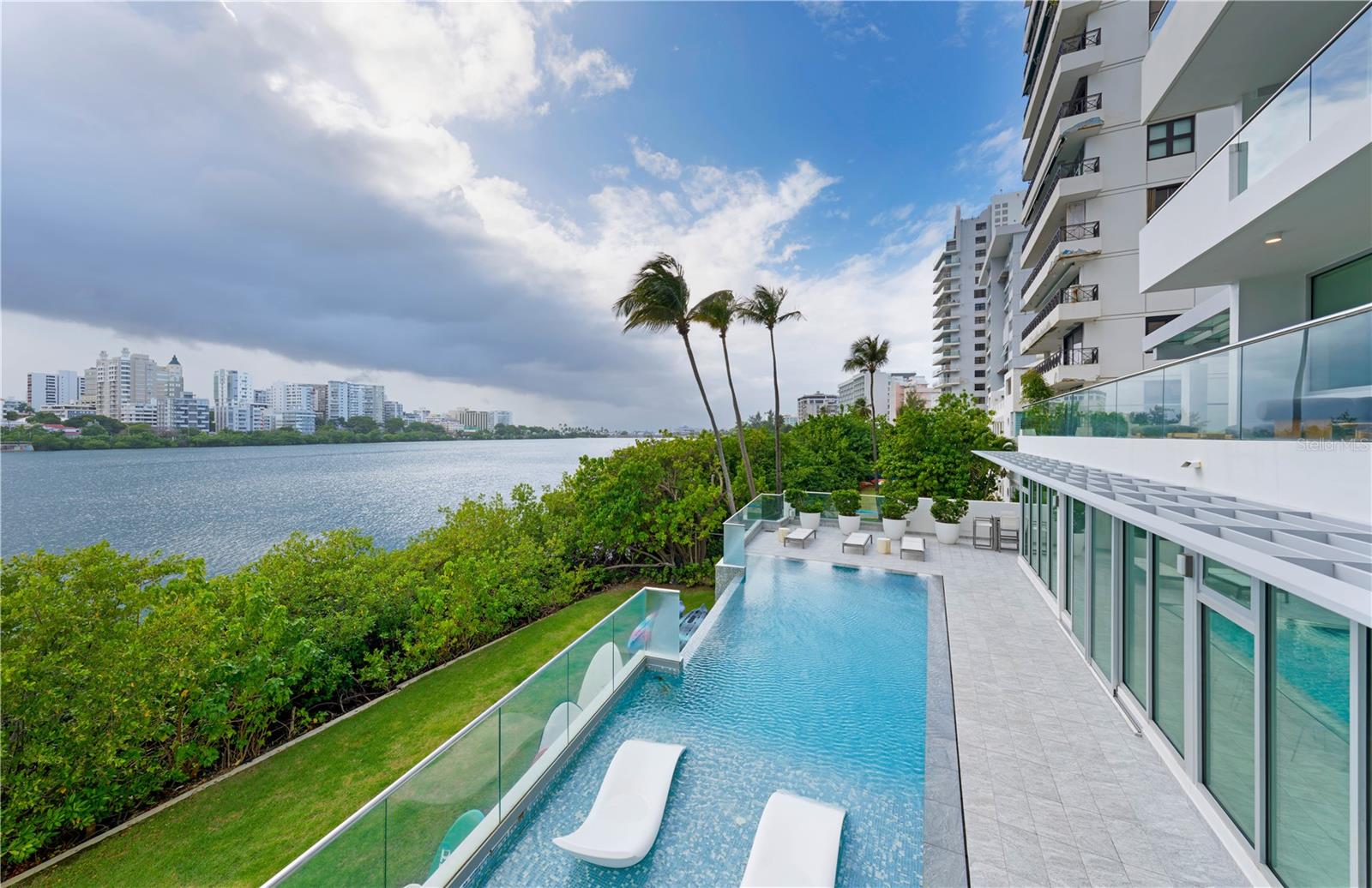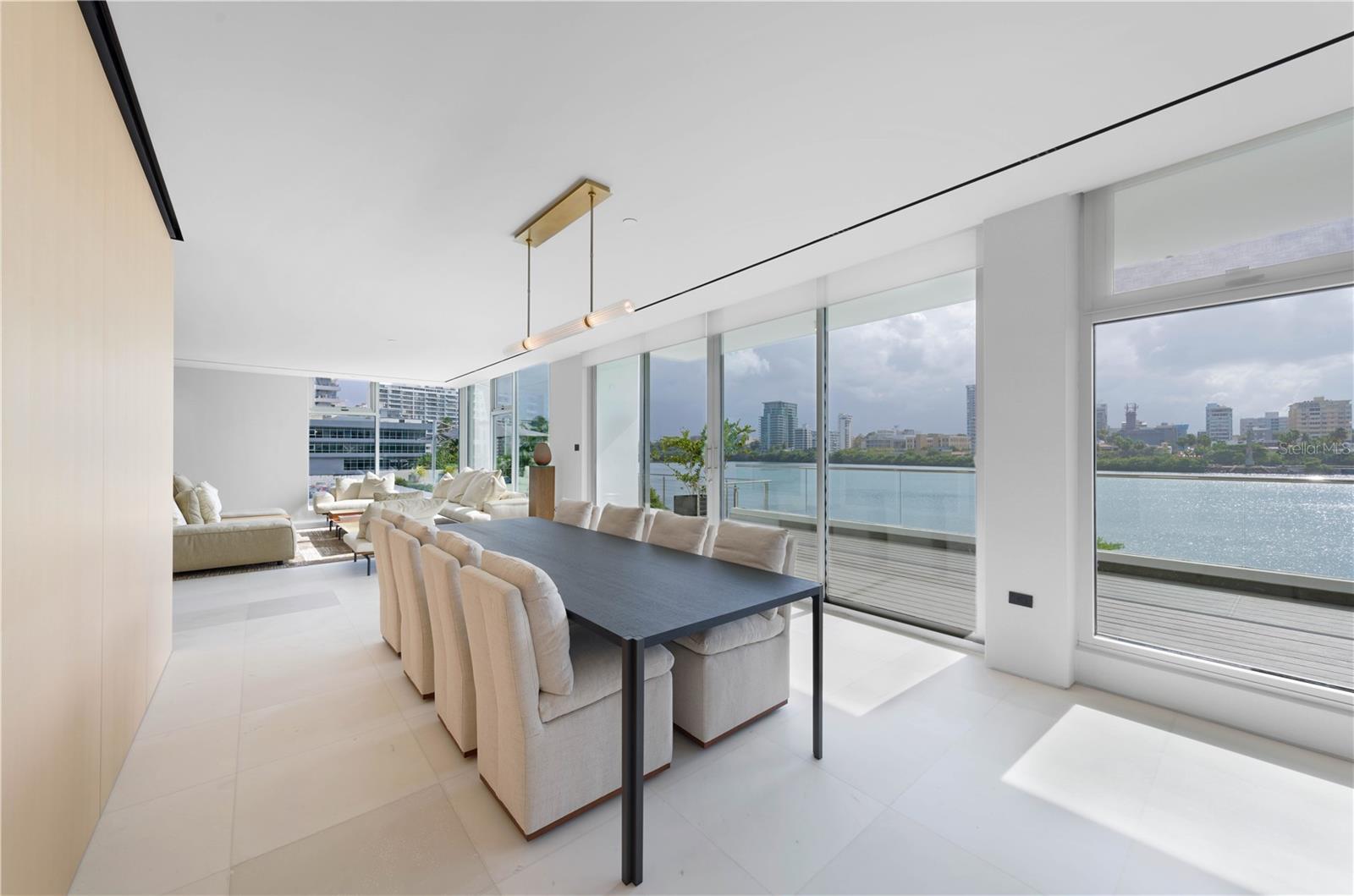 Welcome to your exquisite new home within one of the newest developments at CoBe, also known as Condado Beach. Constructed in 2020 and reimagined in 2024, no expense has been spared within this striking residence with lagoon and ocean views. Spanning the entire floor, the home serves as a modern retreat showcasing tastefully curated furnishing and custom-built accents throughout. Fully equipped with state of the art automation features and technology such as Lutron lighting and shades, as well as ceiling concealed air conditioning conduits for an aesthetic and noiseless comfort. The expansive living area seamlessly connects to the impeccably crafted Poliform kitchen, which affords top of the line appliances and a spacious dedicated pantry with wine repository. Seamless custom designed doors with blond paneling discreetly provide access to all three ensuite bedrooms, including an exquisite primary suite with a beautifully appointed bathroom and custom dual closets that offer an abundance of storage. A versatile flex space that can be converted to a fourth ensuite bedroom adds to the captivating appeal of this remarkable property. Step outside to enjoy the expansive outdoor terraces located on both sides of the residence, one of which overlooks the serene Condado Lagoon, providing the perfect setting for relaxation and entertainment. Evoking the sensation of being aboard a luxurious yacht, watch the manatees frolic in the lagoon with Miramar's stunning skyline as the backdrop. Floor-to-ceiling windows flood the apartment with natural light. The home effortlessly combines style, comfort, and breathtaking vistas. The Peninsula features exceptional amenities, affording a pool, gym, residents' lounge, full backup generator, and 24-hour attendant service. Positioned in the heart of a vibrant neighborhood filled with fine dining, world-class hotels, and lively entertainment, this property offers an unparalleled metropolitan lifestyle in the Caribbean.