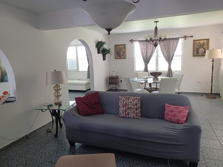 Stepping through the front door you will find a spacious, open living area. Living room, dining and kitchen flow together with arched doorways and windows to complete the ambience. AC throughout. One bathroom downstairs and one up. A spiral staircase leads upstairs to the three bedrooms. There is an extra small balcony off of the foyer on the second level where you can catch the breezes and enjoy the view. Beautifully furnished, and furnishings are negotiable. Well maintained inside and out! This approx. 2,000 squarefoot remarkable concrete 3 BR/2 BATH single-family residential property on approximately 1/3 of an acre is Titled and is zoned for Residential Use.