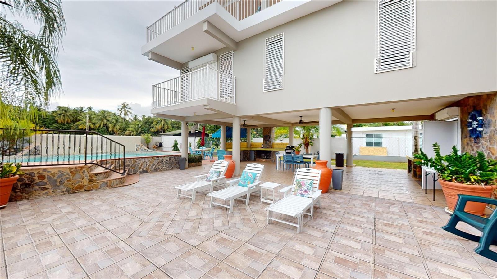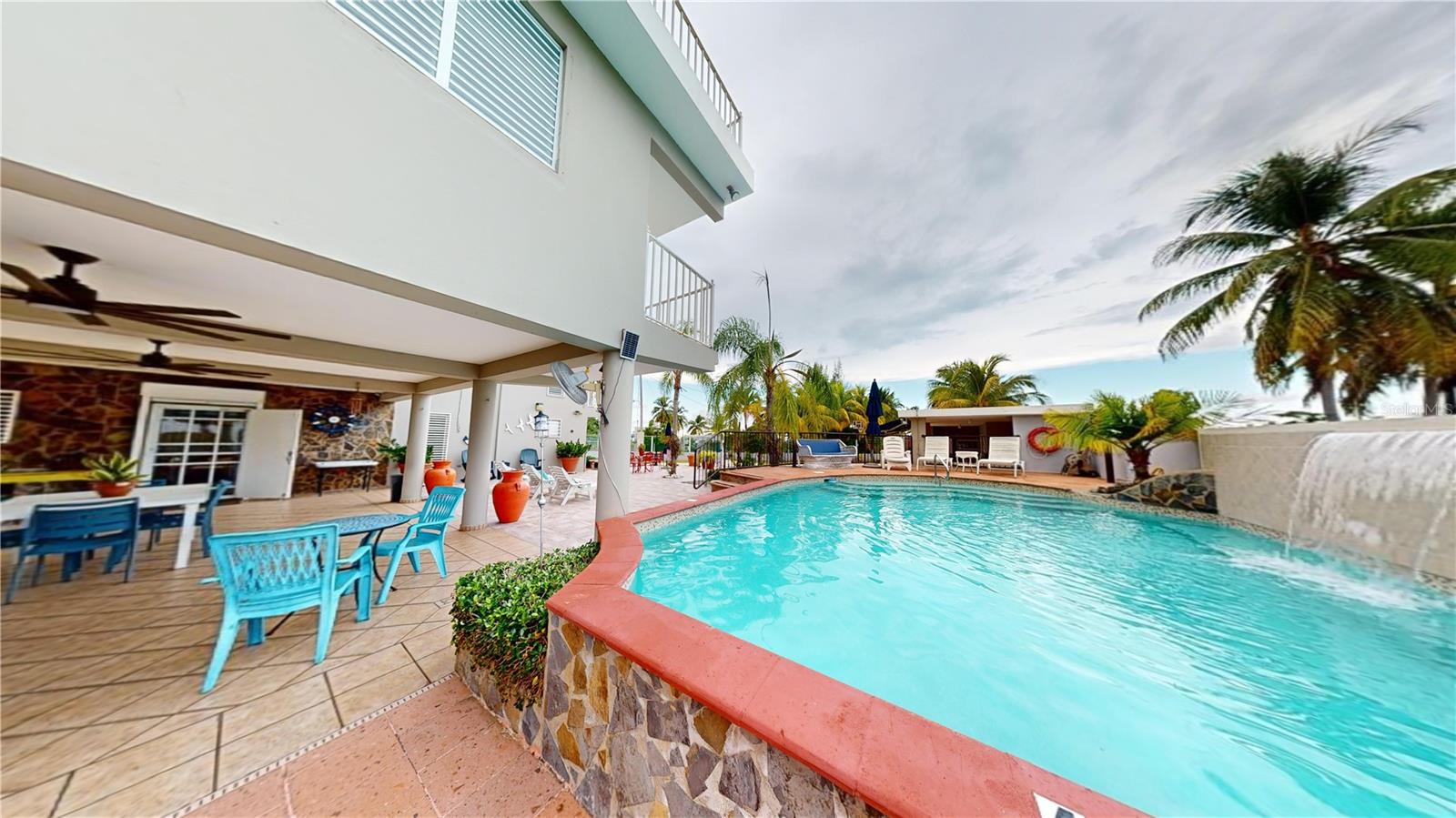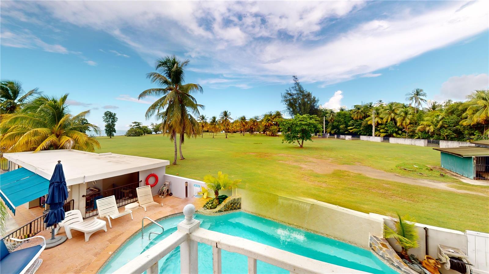 PALMA SOLA, Las Picuas, Rio Grande, Puerto Rico 5 Bedrooms · Ocean Front · Pool OFFERED AT: $2,400,000 Discover your Caribbean oasis in the quiet Las Picuas neighborhood, just five minutes from Rio Mar resort. Perfect for beach lovers, this oceanfront property is ideal for snorkeling, paddleboarding, fishing, and sailing. This solid, three-story concrete home features French doors, storm windows, roll-down security doors, a pool, patio with bar, and generator. The main house has five bedrooms and three bathrooms. The master suite has an ensuite bath, while the spacious kitchen/living area and media room provide comfort. The roof deck is built for entertaining, complete with a shaded area and bar. An oceanfront casita with a roof deck offers breathtaking Caribbean views. The gated property features a utility building with bathrooms, storage, and lush tropical landscaping.