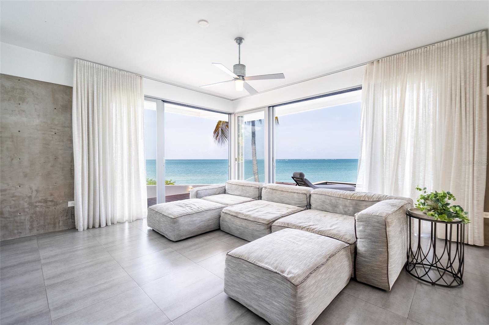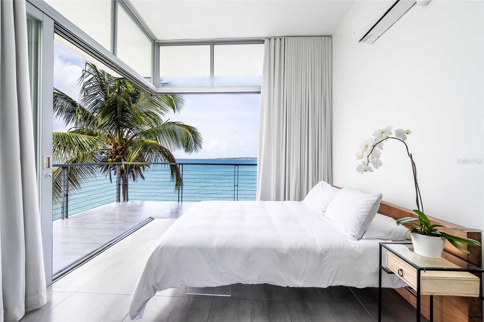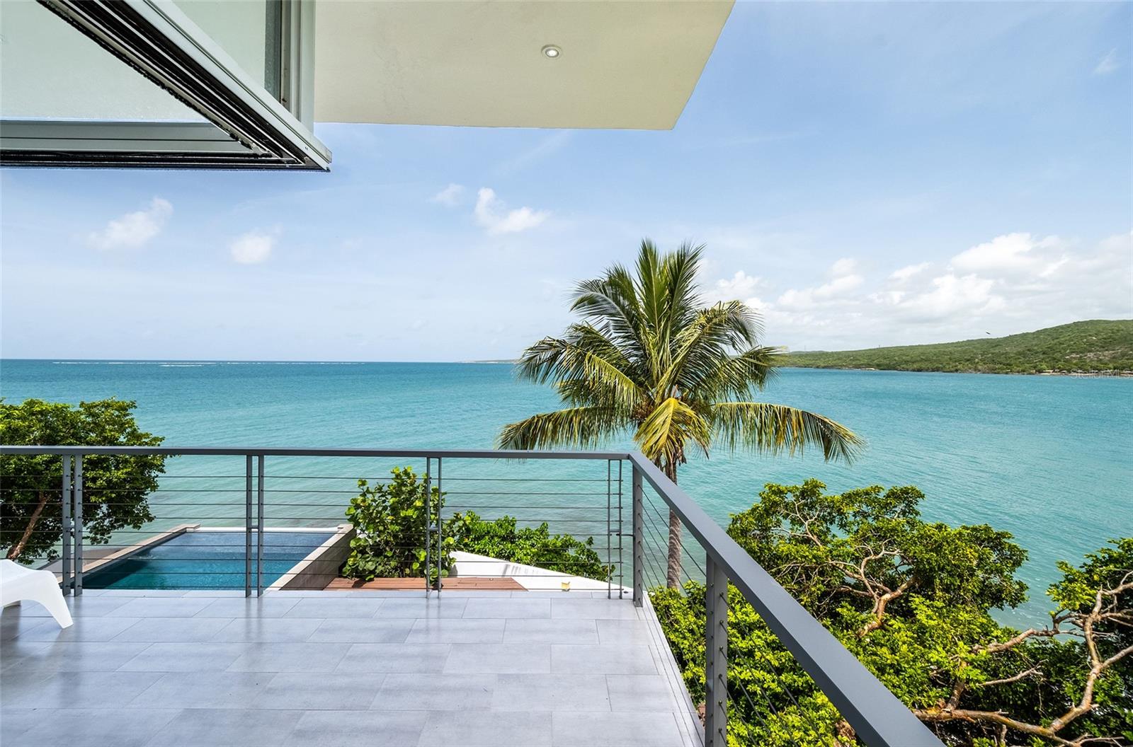 The master suite is a serene sanctuary featuring panoramic views of the Caribbean Sea. The spa-like master bathroom is a retreat in itself, with dual vanities and a walk-in shower. Four additional bedrooms are thoughtfully designed to offer guests comfort and relaxation.