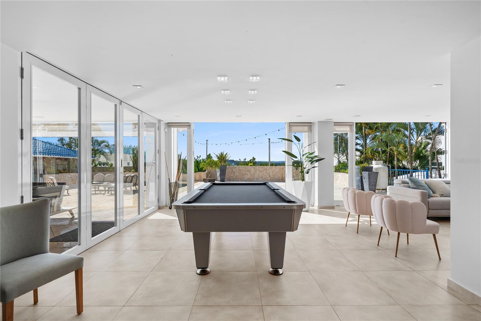 The home offers ample entertainment areas, including one billiard table on first floor and an outdoor space with a pool, gazebo, and bar. Additional highlights include an 80-bottle wine cellar for wine enthusiasts.