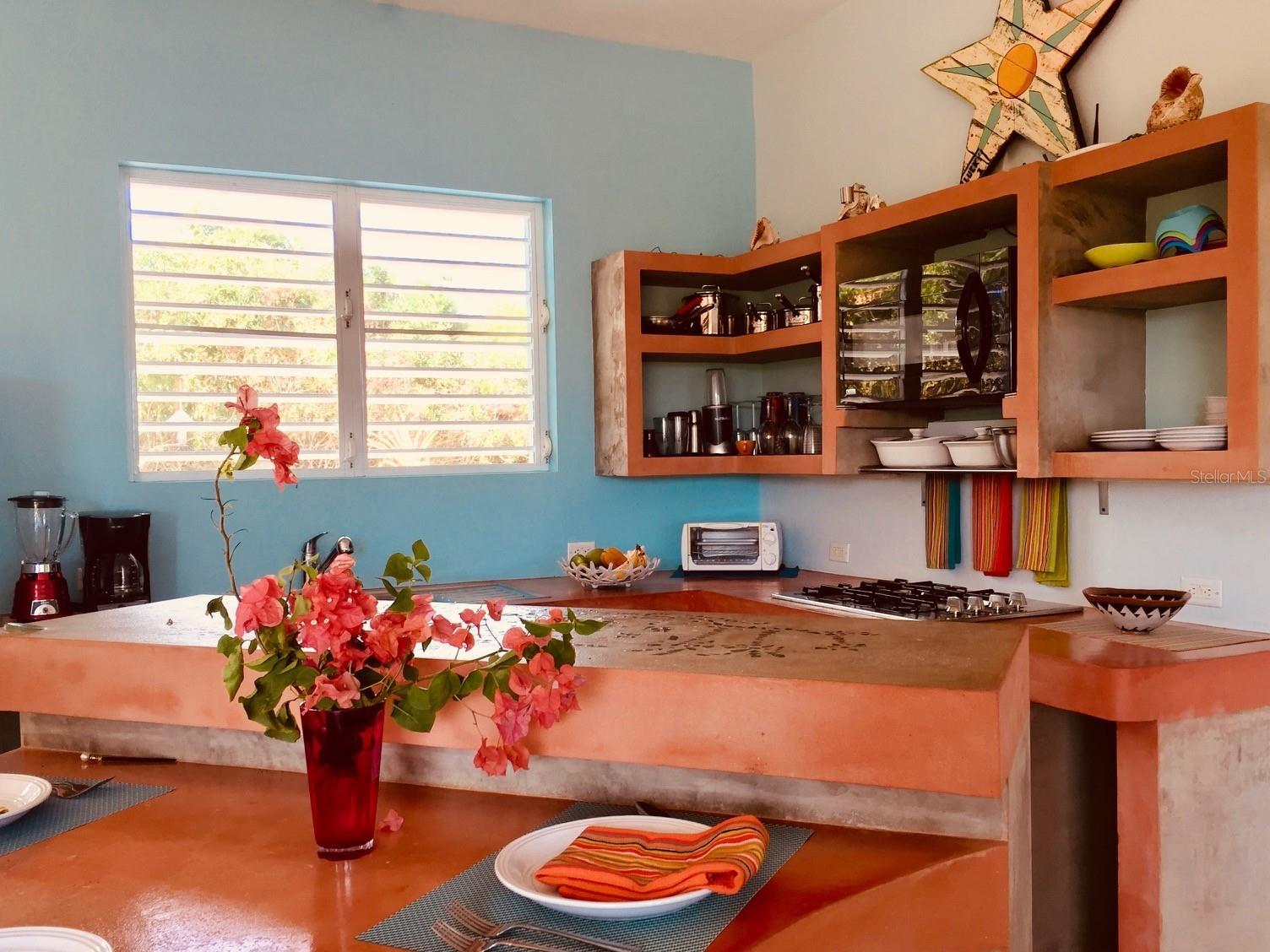 Nestled on a tranquil acreage on the Southside of Vieques Island, Casa Vieques is a stunning two-bedroom, two-bathroom home offering breathtaking ocean views from every room. The natural light and ventilation are an integral part of island living contributing to a healthier living environment, with lower energy costs. Constructed with insulated concrete forms, the 11-inch thick walls provide superior energy efficiency, keeping the interior cool and comfortable year-round. Insulated Concrete Forms (ICF) ensure both energy efficiency and a solid structure that is storm-ready.