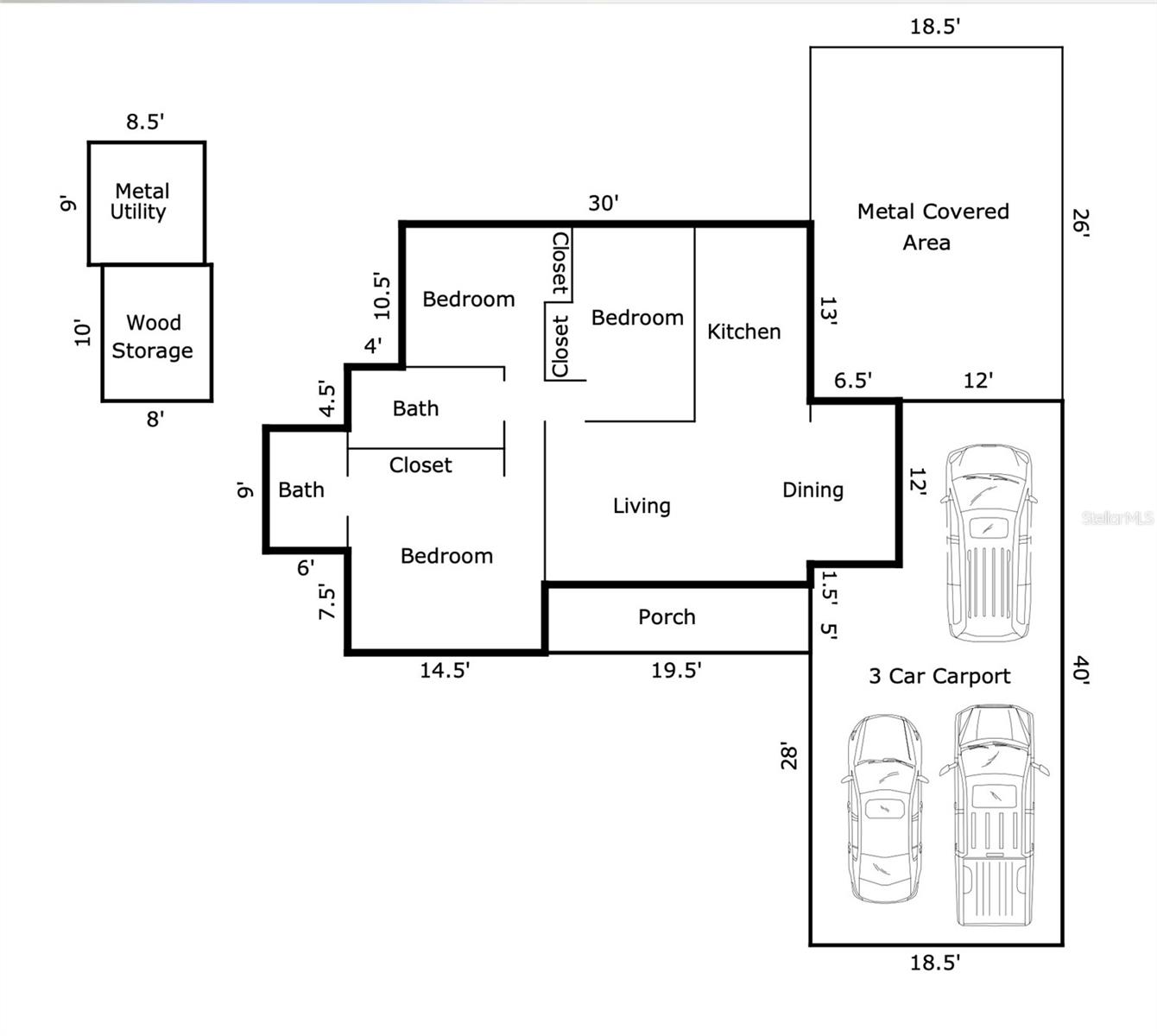 Additional Amenities: A 3-car carport, metal utility area, and wood storage.
