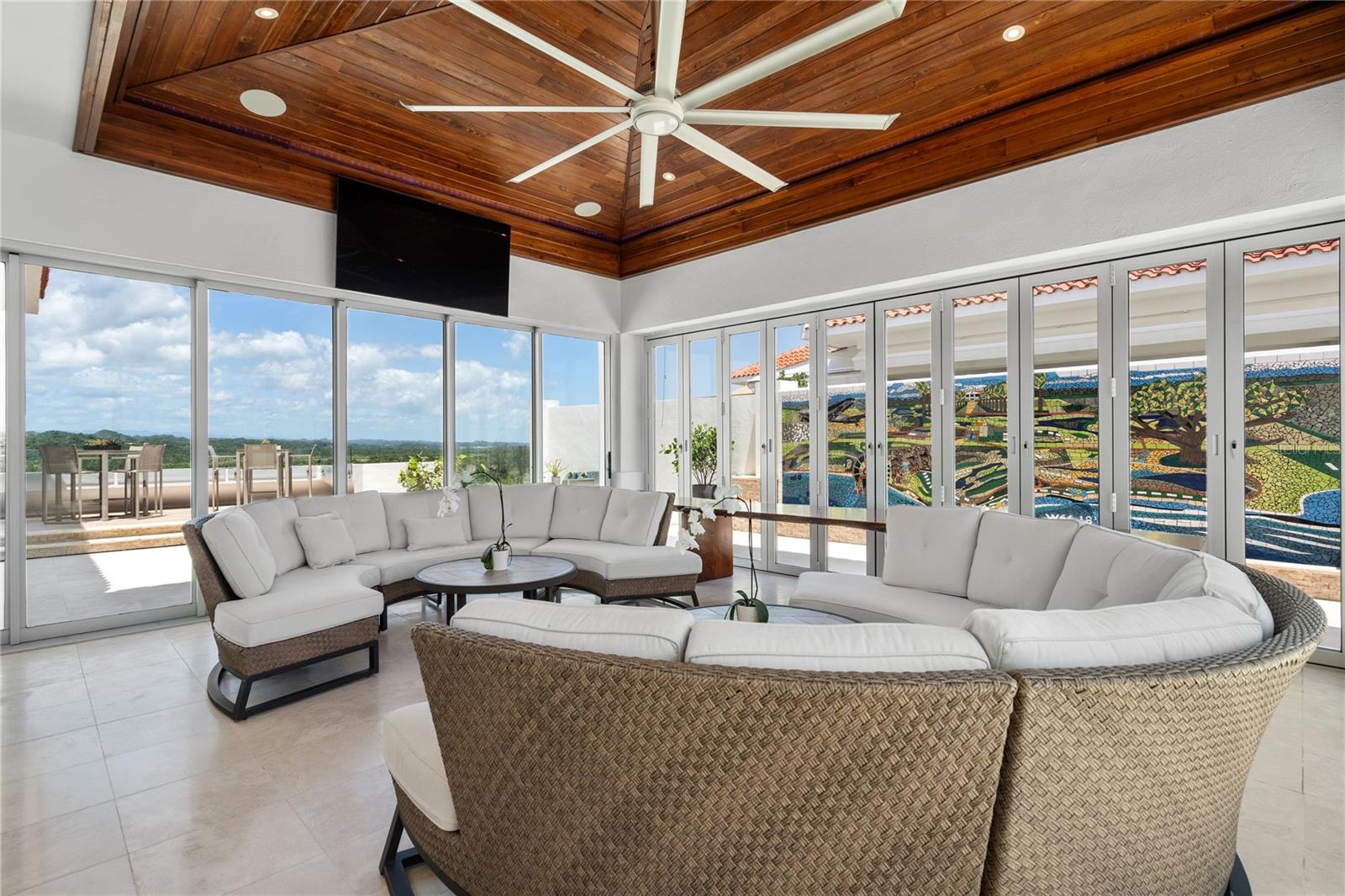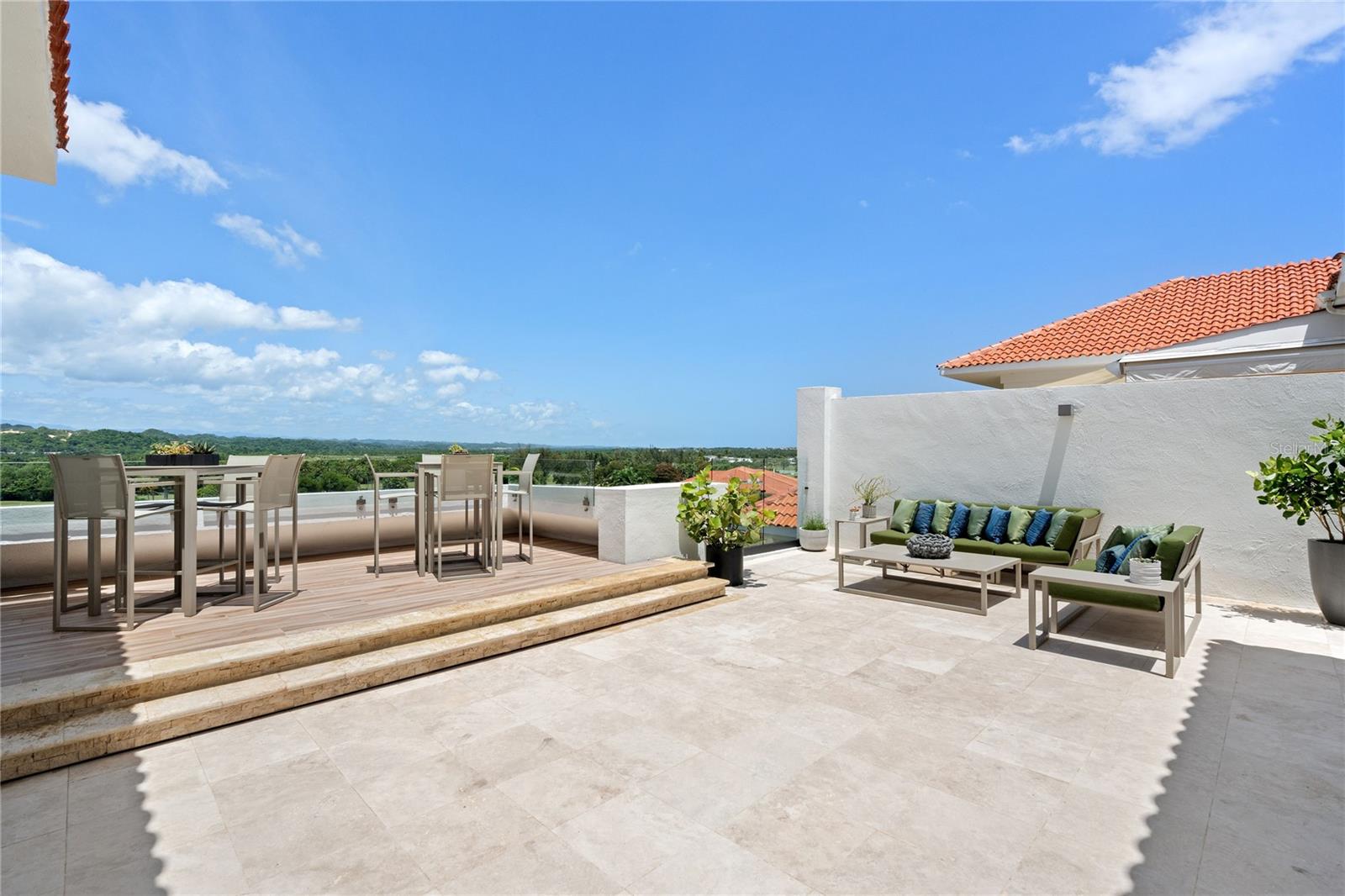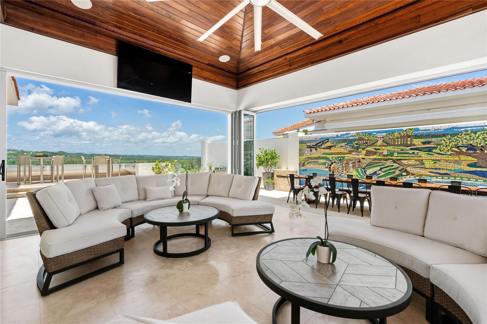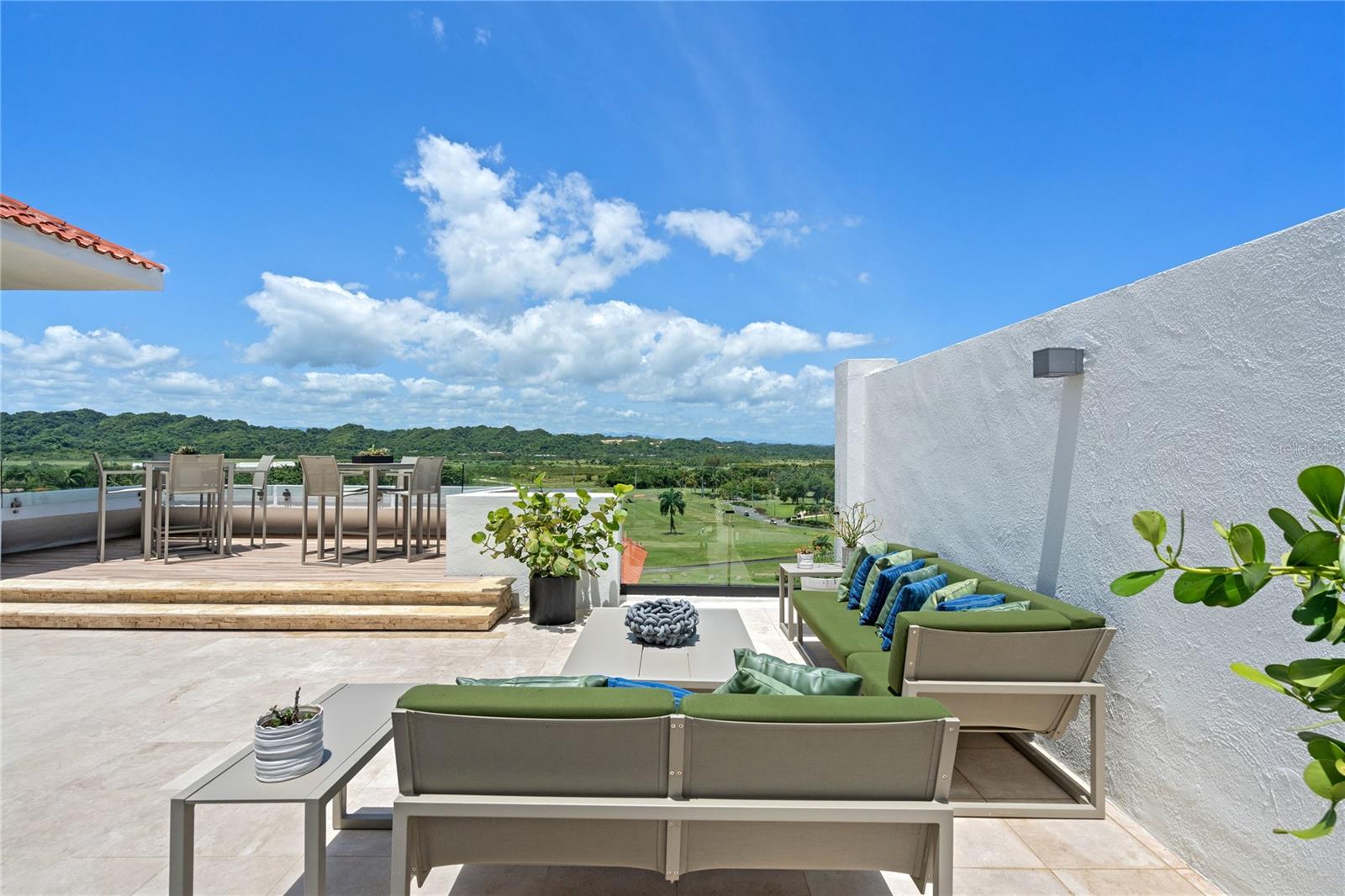 Introducing The Penthouse at Plantation Village, a stunning two-story residence located on the golf course within the exclusive gated community of the Ritz Carlton Reserve at Dorado Beach. Spanning an impressive 7,310 square feet, this luxurious home effortlessly combines 4,810 square feet of meticulously crafted interiors with a sprawling 2,500 square foot private rooftop terrace, offering breathtaking views of the expansive golf course and majestic mountains.