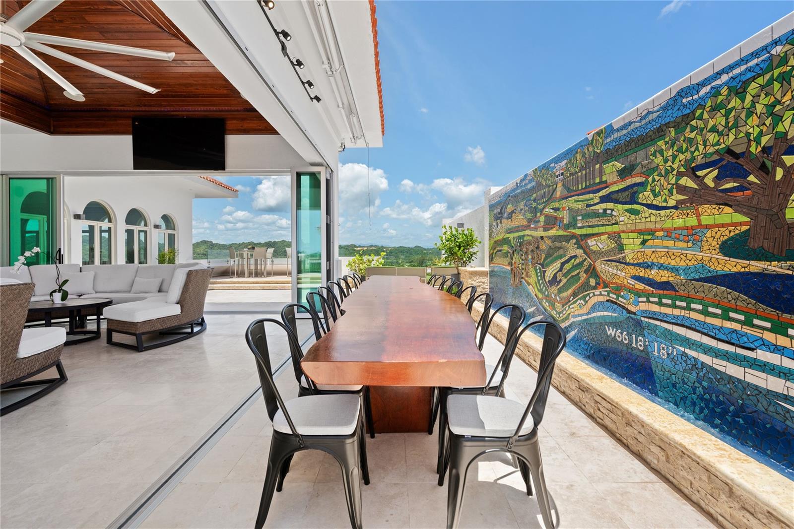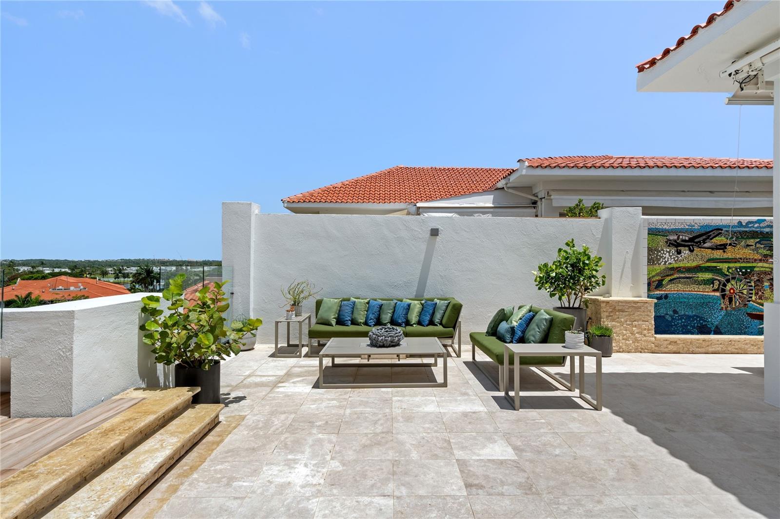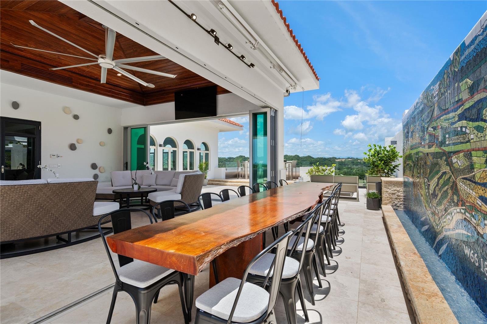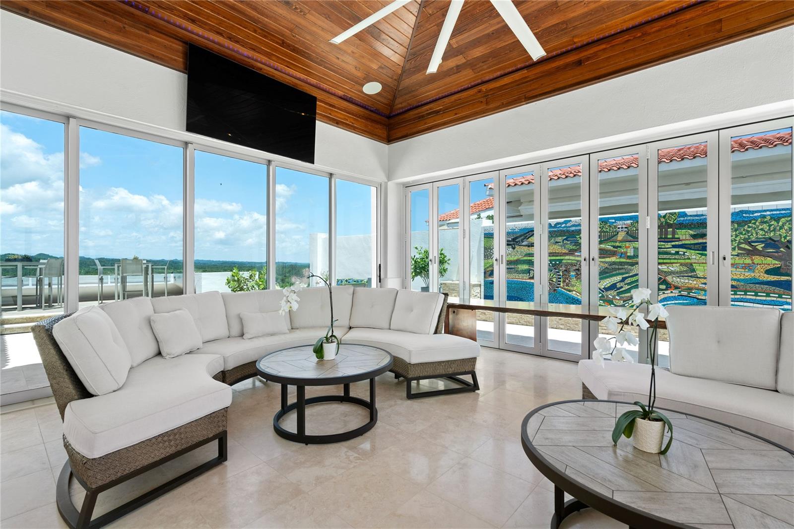 Introducing The Penthouse at Plantation Village, a stunning two-story residence located on the golf course within the exclusive gated community of the Ritz Carlton Reserve at Dorado Beach. Spanning an impressive 7,310 square feet, this luxurious home effortlessly combines 4,810 square feet of meticulously crafted interiors with a sprawling 2,500 square foot private rooftop terrace, offering breathtaking views of the expansive golf course and majestic mountains.