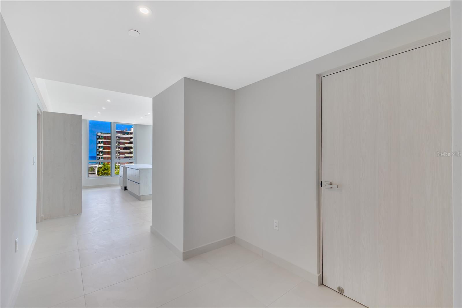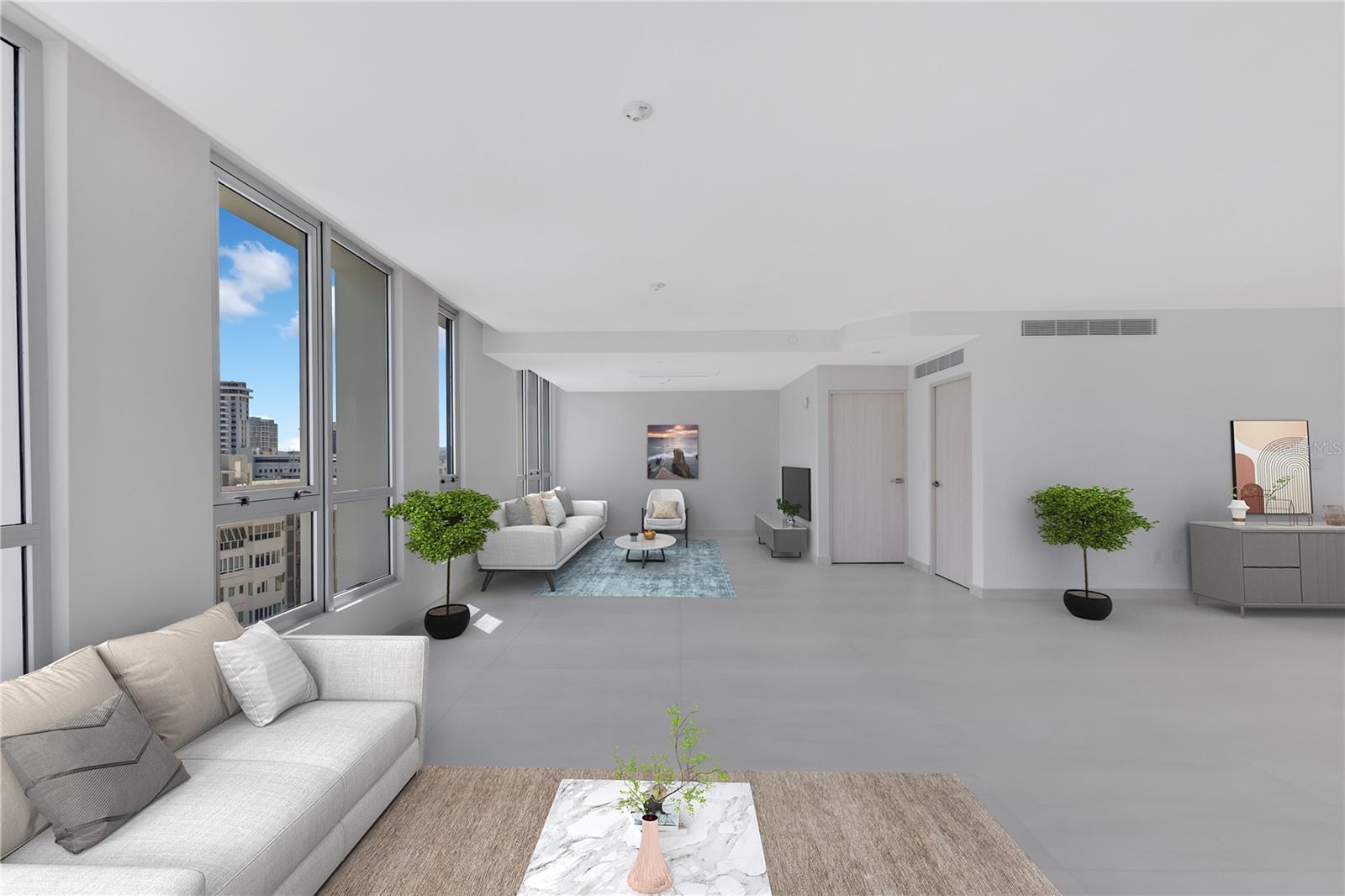 This newly built 1-bedroom apartment, easily convertible into 2 bedrooms, spans 1,466 square feet and offers 2.5 stylish bathrooms. The master suite is a sanctuary with a double vanity ensuite and a spacious walk-in closet. The open-concept design flows effortlessly, with a sleek kitchen featuring an oversized island, perfect for casual meals or entertaining. Floor-to-ceiling windows bathe the space in natural light and showcase breathtaking views of the city and ocean.