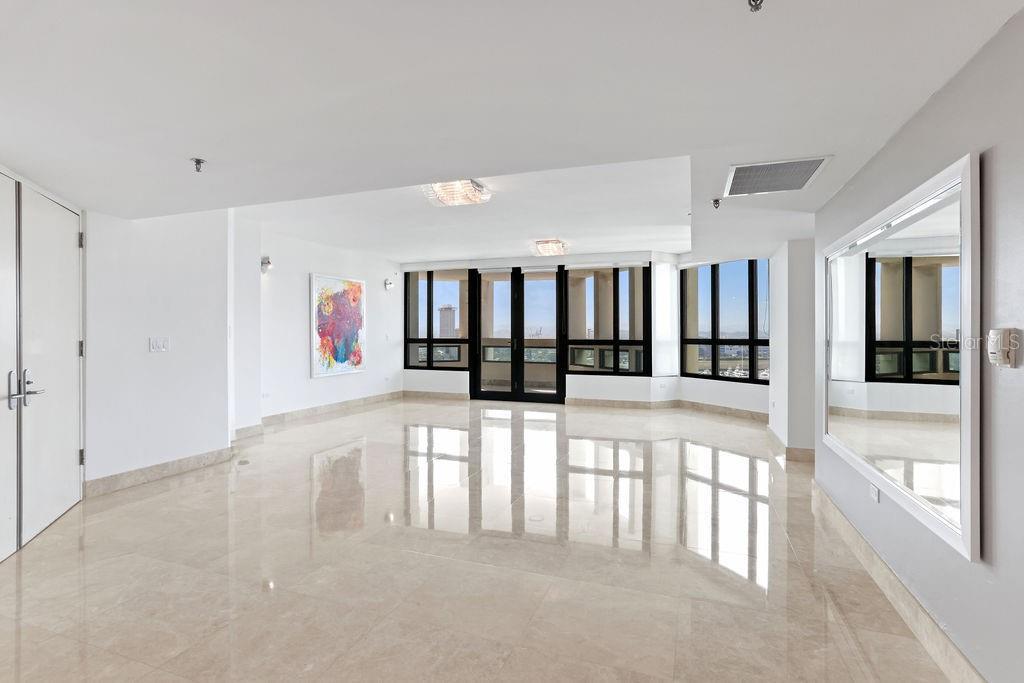 Experience the epitome of luxury living in this elegant residence at Caribe Plaza, featuring renovated marble floors and breathtaking views of the San Juan Bay Marina, Condado Lagoon, Old San Juan, and the Convention Center. This home opens to a private lobby leading into a spacious great room, seamlessly connecting to the dining room, family room, and a gourmet kitchen outfitted with top-of-the-line appliances. The primary bedroom is a serene retreat, offering dual closets and an en-suite bathroom. Two additional en-suite bedrooms and a flex room provide versatility, complemented by a total of four full bathrooms and a powder room. Recent upgrades include new vanities, lamps, fixtures, and security windows. The unit comes with three side-by-side parking spaces and a temperature-controlled storage room. Designed for convenience and resilience, the building is powered by a full-power backup generator and equipped with a water cistern. Residents enjoy luxurious amenities, including 24-hour security, concierge and valet services, a fully equipped gym, a heated pool, and an activity room. Ideally situated, Caribe Plaza is just steps away from the Luis Muñoz Rivera Park, the Caribe Hilton Hotel, and Escambrón Beach, with proximity to Condado's finest restaurants, shopping, entertainment, and top schools. The vibrant Distrito T-Mobile and Old San Juan provide endless opportunities for leisure and exploration. This property offers an unparalleled lifestyle in one of San Juan's most desirable locations. Truly ready to move in and available for sale for the first time!