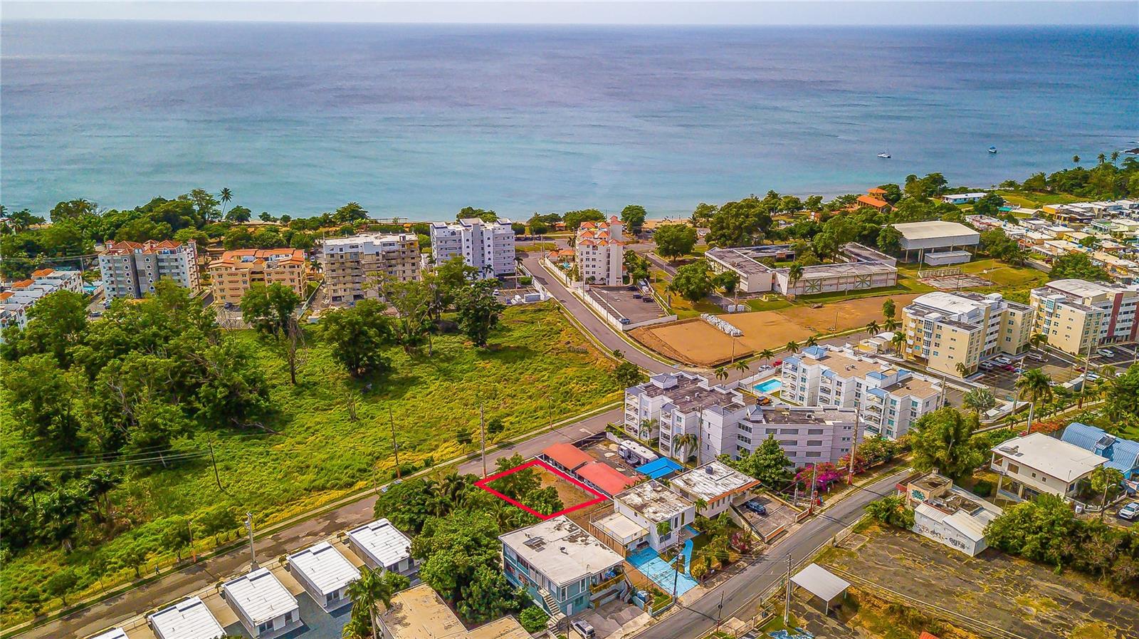 Location, location, location.  This is the best of the best in Rincon and it tops all.   Walk to the downtown plaza, farmers market, Art Walk, restaurants, shops and bars.  Public Beach with calm water, perfect for swimming and paddle boarding is within walking distanc.  A bit further to great surfing and snorkeling at Tres Palmas!  This flat, 465 sq meter lot has been improved by a six foot concrete wall on 3 sides.  Utilities are at the road and seller is offering PERMITTED plans for a 2 story residence.