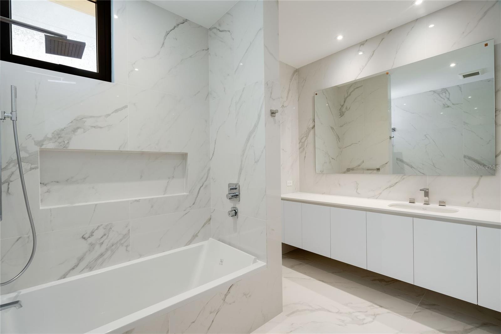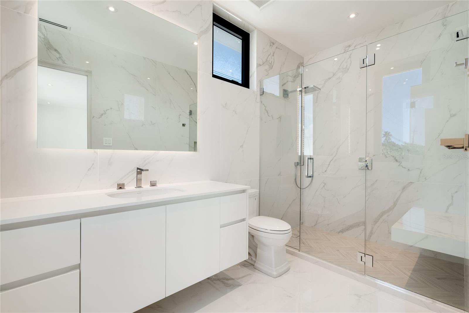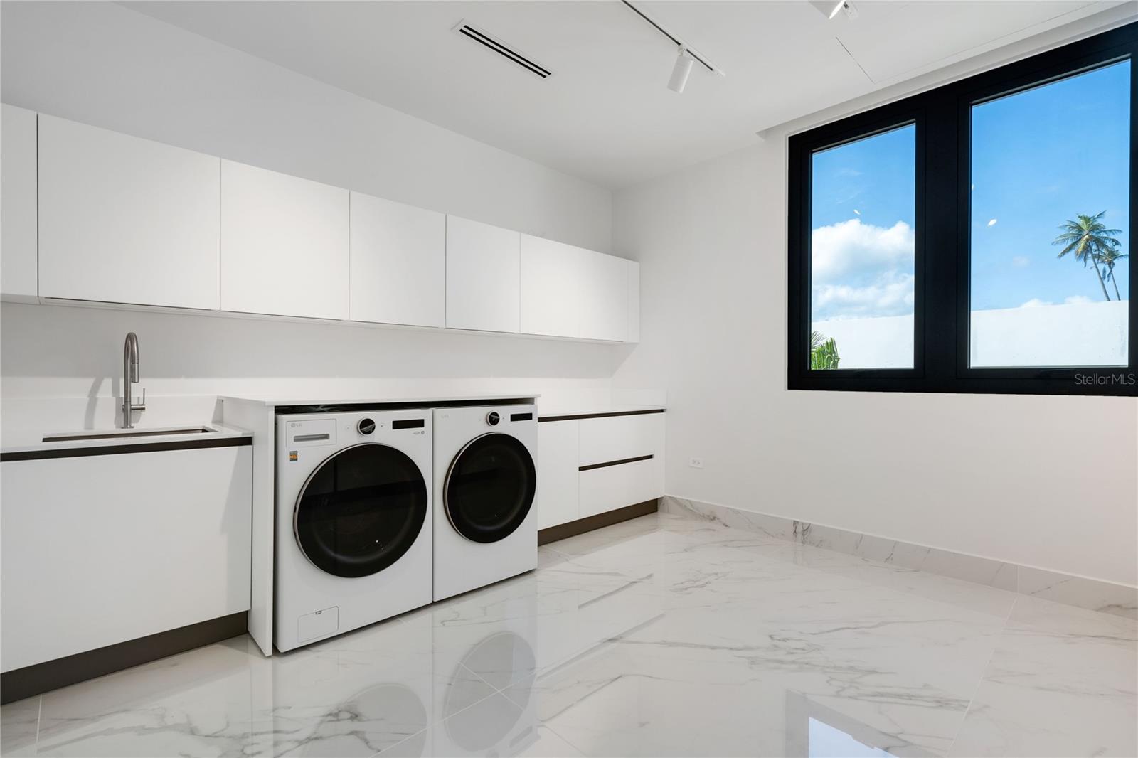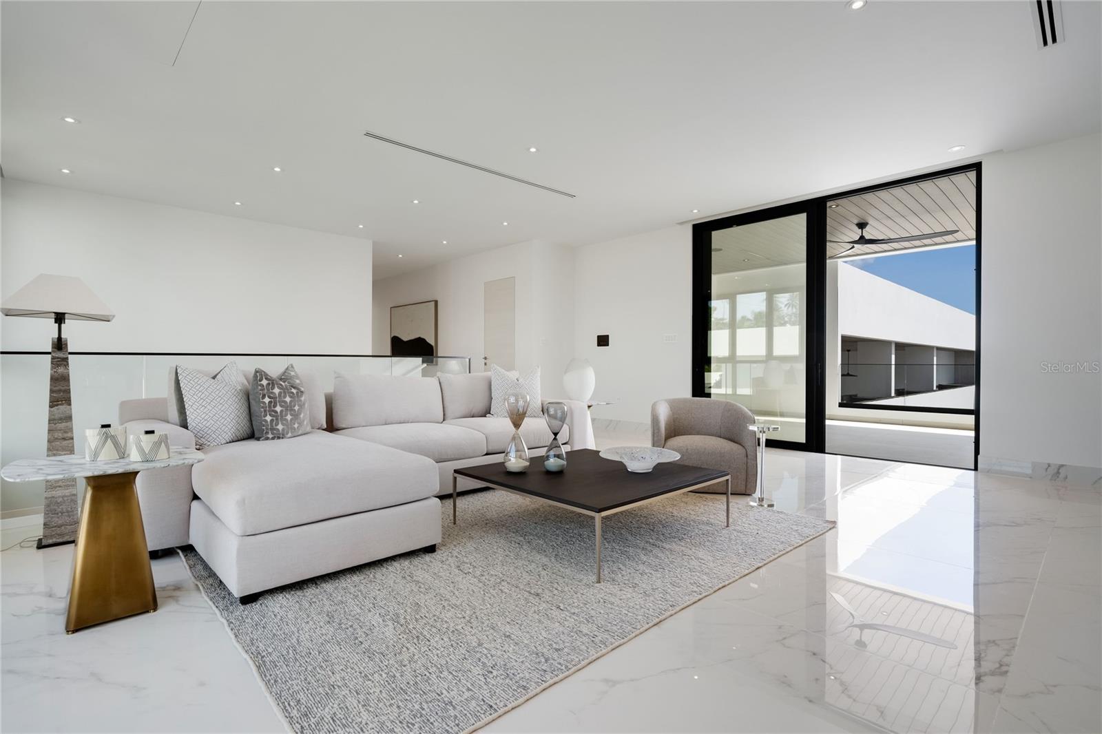 The home is equipped with premium upgrades throughout, including a Culligan water softener, ceiling speakers, sound bars, and subwoofers for an immersive audio experience. Doors and windows by Alumni from the Durabella Group combine elegance with durability. The property’s thoughtful infrastructure includes an 800-gallon cistern and a 300-gallon irrigation system to support sustainable water management. The upper level feels like a home within a home, featuring three additional bedrooms, a family room, a second laundry room, and two terraces—one covered with views of the courtyard and another open-air terrace overlooking the surrounding mountains. Designed for relaxation and entertaining, the outdoor spaces include expansive covered terraces, a large pool, a convenient pool bath, and an outdoor shower nestled within lush landscaping on a 2,500-square-meter (26,909 sq. ft.) lot. A three-car garage with a golf cart bay and extra storage completes the home. This exquisite property is more than just a residence—it’s a luxurious sanctuary designed for family connection and entertaining on the beautiful island of Puerto Rico