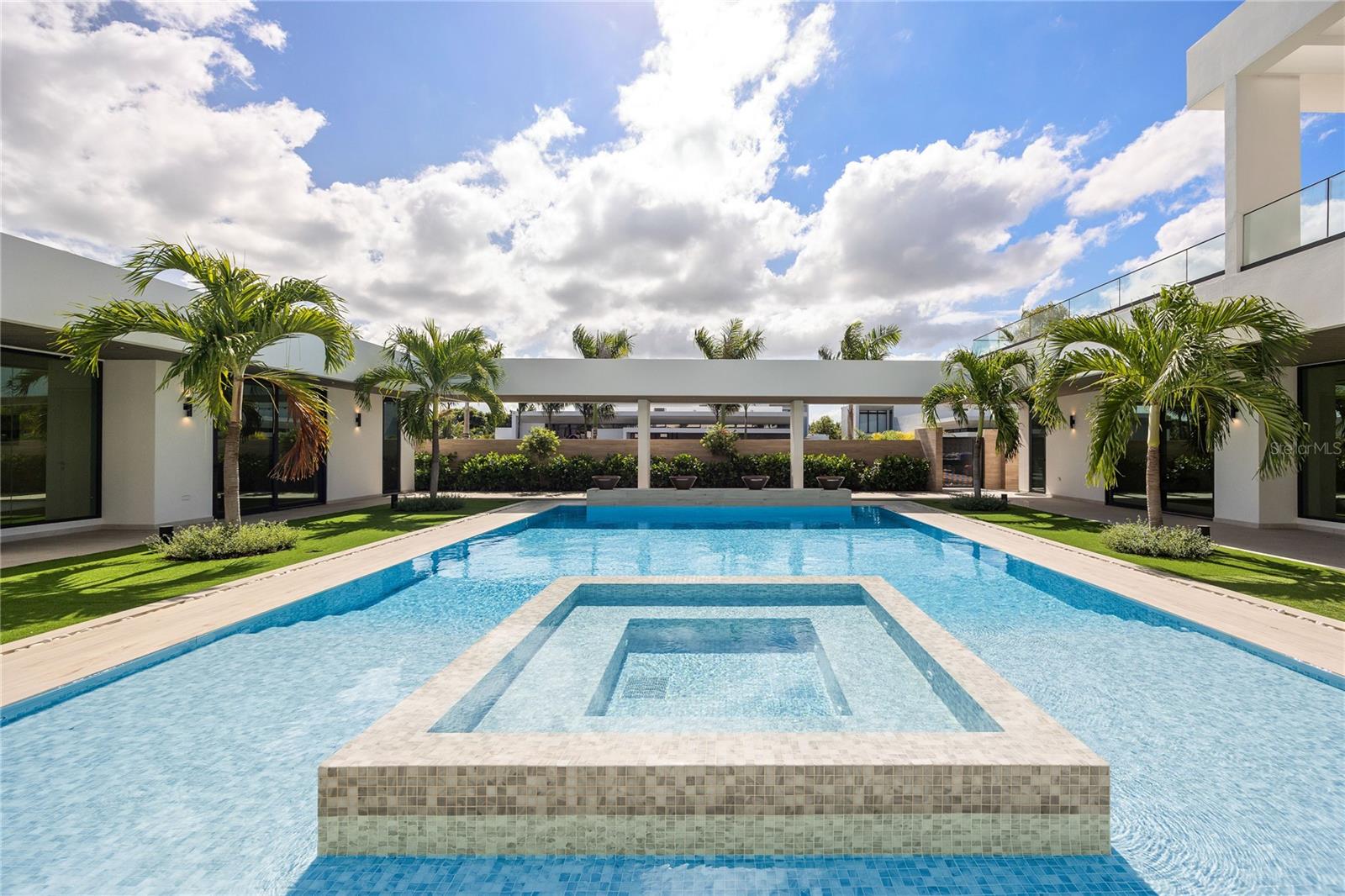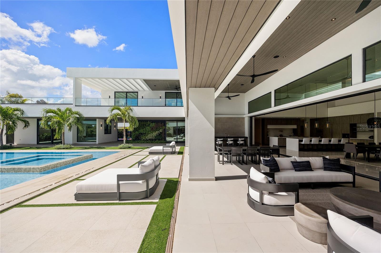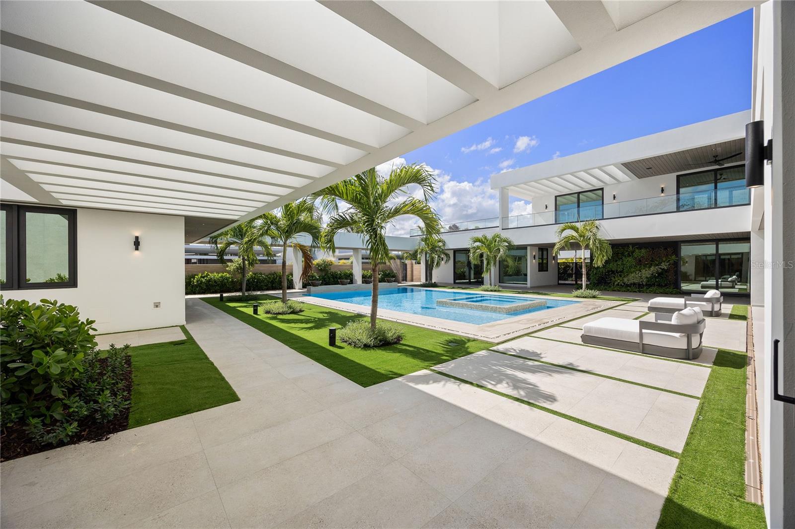 Step into one of the most extraordinary properties at Dorado Country Estates, a home that redefines luxurious living with the ambiance of a boutique hotel. At its heart lies a stunning interior courtyard featuring a vertical plant wall, a serene waterfall jacuzzi, and a sparkling pool, allowing abundant natural light to flood nearly every room. Thoughtfully designed with unparalleled attention to detail, this estate offers 6 spacious bedrooms, each with ensuite bathrooms. Two downstairs guest suites stand out with their own separate entrances, private kitchenettes, and direct access to the pool, creating the ultimate retreat for visitors or multi-generational living. The master suite is a private oasis, complete with a spa-like bathroom featuring dual showers and a soaking tub, an oversized closet with a center island, and an adjacent private office. The great room flows seamlessly into a chef’s kitchen outfitted with dual islands, Sub-Zero and Wolf appliances, a wine fridge, and a pantry. This space opens to a covered terrace equipped with an outdoor kitchen and living area, perfect for entertaining.