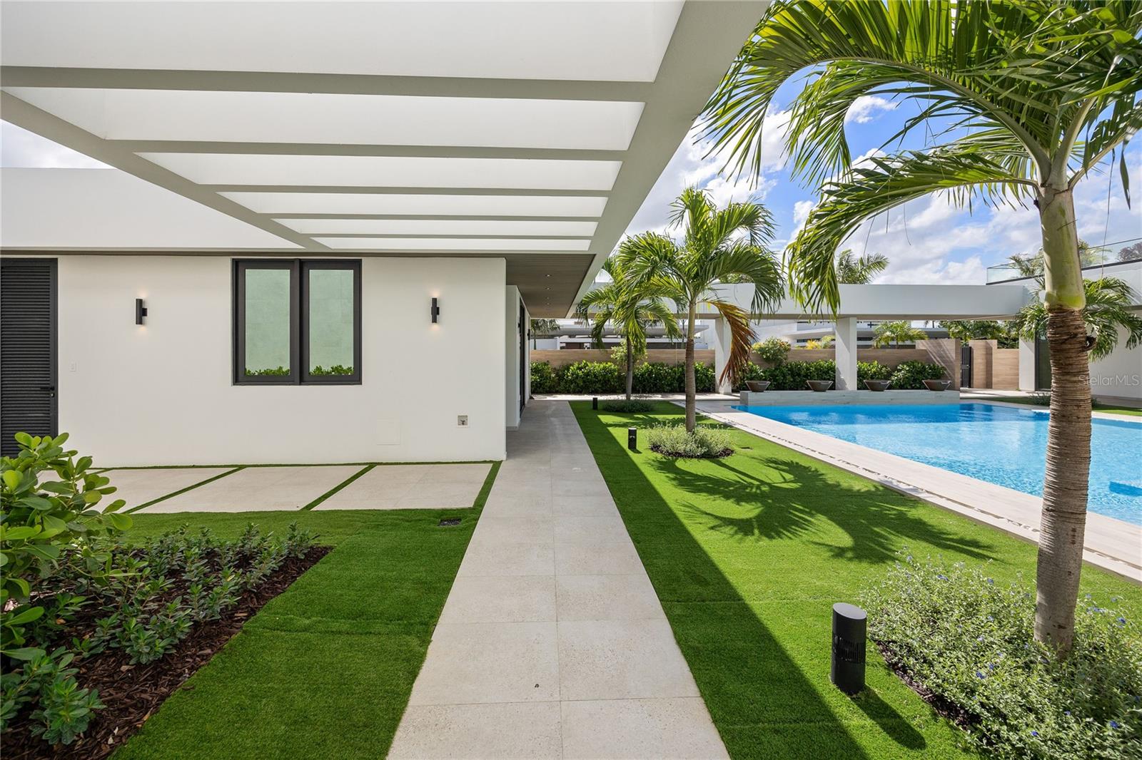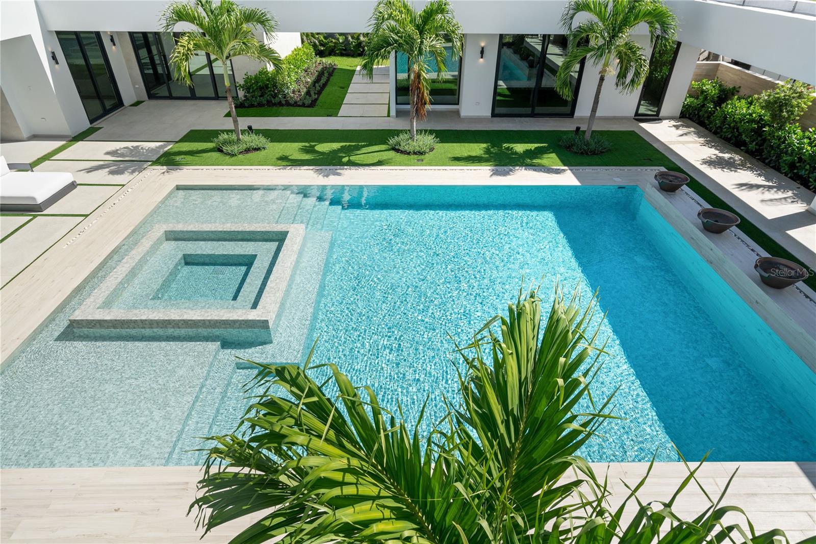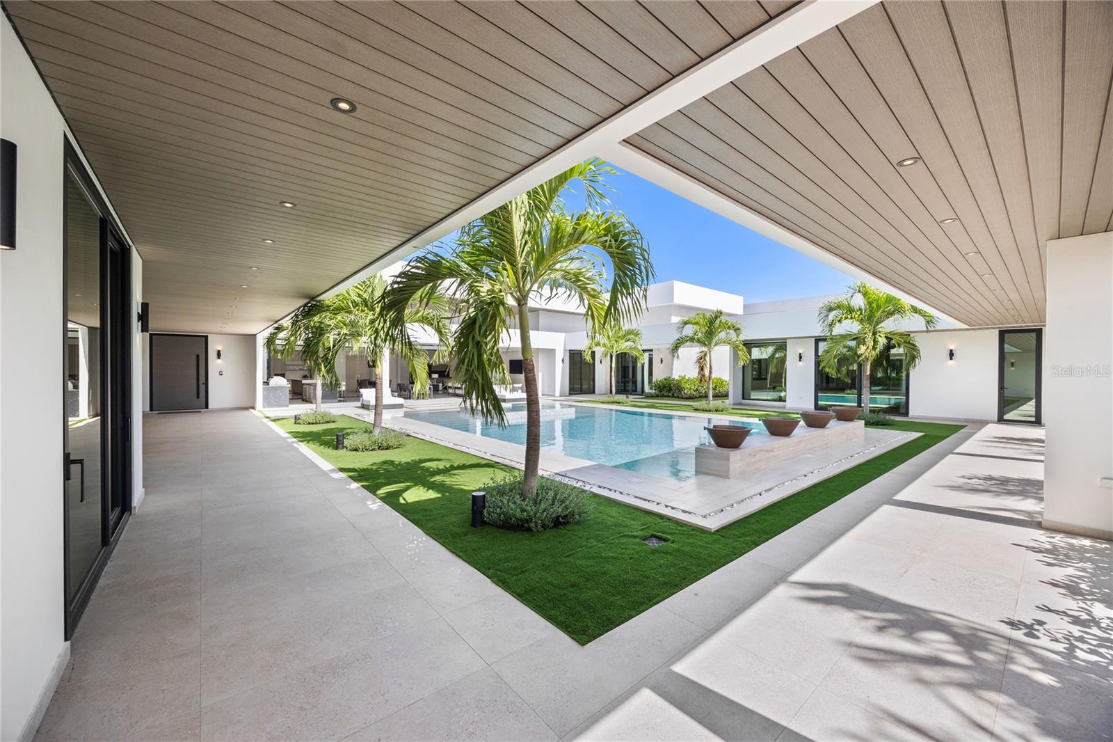Step into one of the most extraordinary properties at Dorado Country Estates, a home that redefines luxurious living with the ambiance of a boutique hotel. At its heart lies a stunning interior courtyard featuring a vertical plant wall, a serene waterfall jacuzzi, and a sparkling pool, allowing abundant natural light to flood nearly every room. Thoughtfully designed with unparalleled attention to detail, this estate offers 6 spacious bedrooms, each with ensuite bathrooms. Two downstairs guest suites stand out with their own separate entrances, private kitchenettes, and direct access to the pool, creating the ultimate retreat for visitors or multi-generational living. The master suite is a private oasis, complete with a spa-like bathroom featuring dual showers and a soaking tub, an oversized closet with a center island, and an adjacent private office. The great room flows seamlessly into a chef’s kitchen outfitted with dual islands, Sub-Zero and Wolf appliances, a wine fridge, and a pantry. This space opens to a covered terrace equipped with an outdoor kitchen and living area, perfect for entertaining.