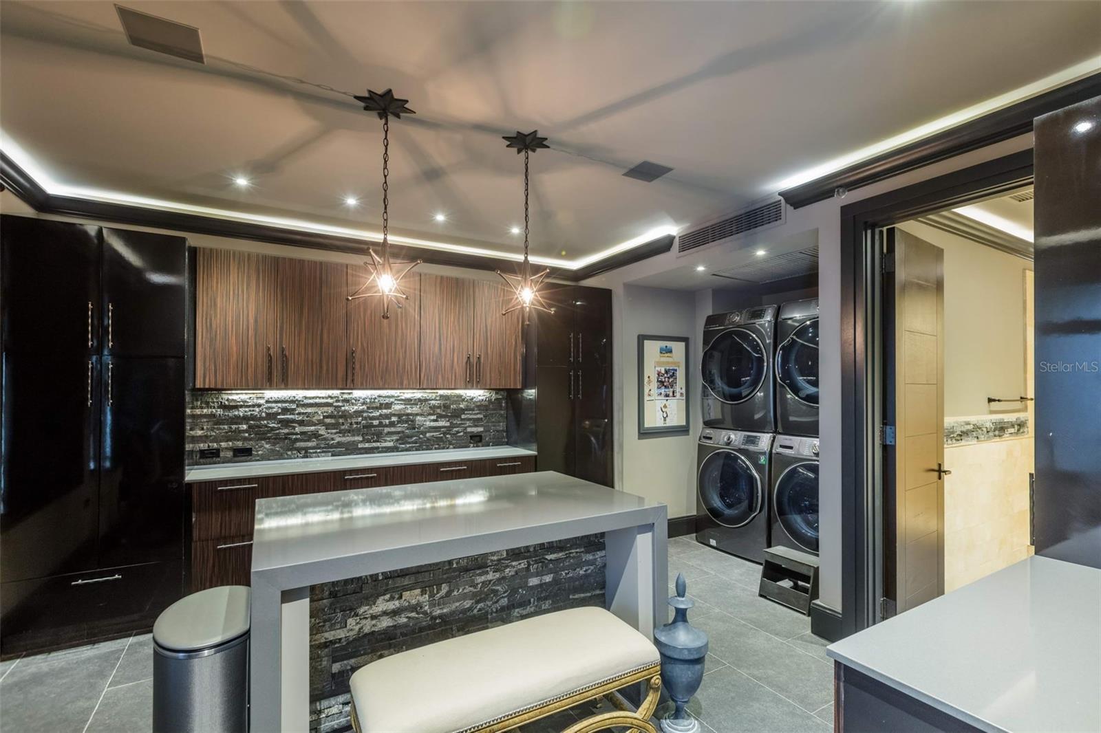 This Penthouse is offered fully furnished and equipped with top of the line appliances, commercial grade gym equipment, a $50,000 race car simulator and two Tomberlin golf carts.
