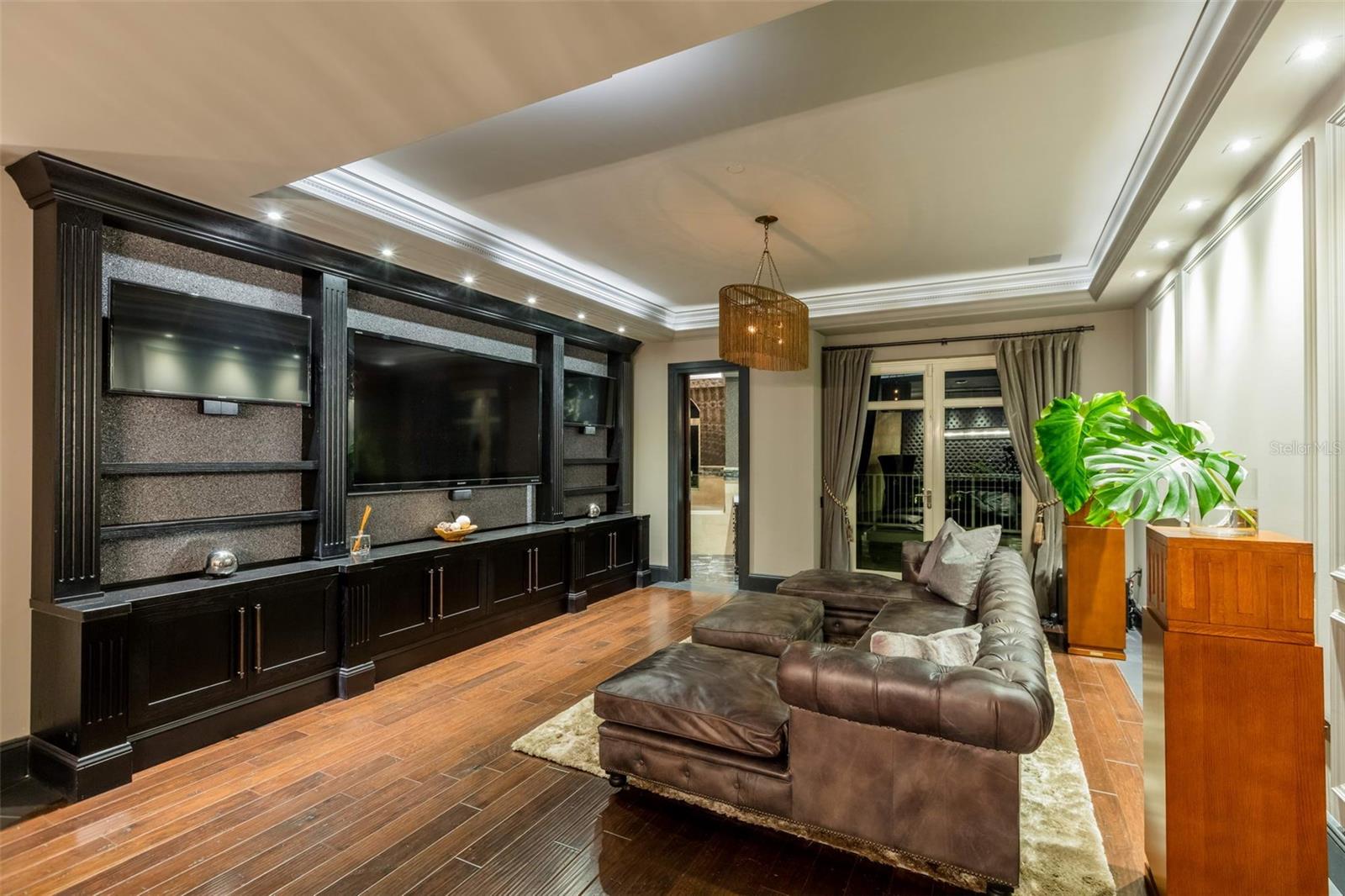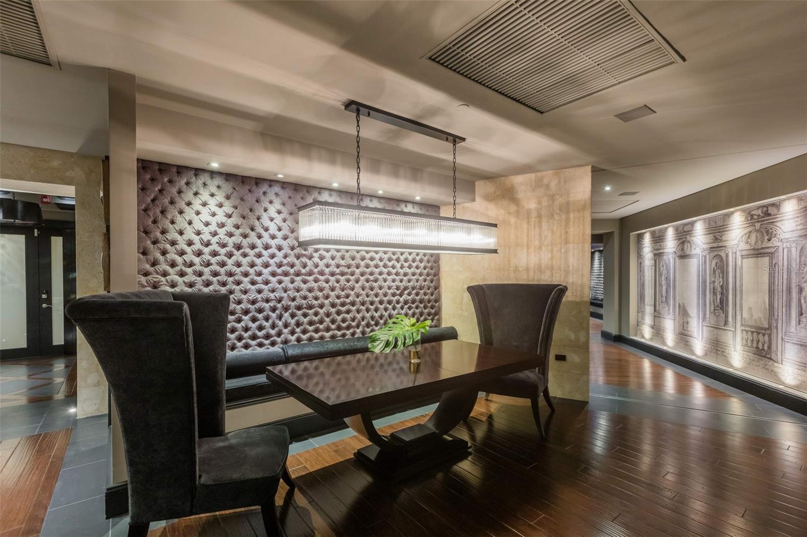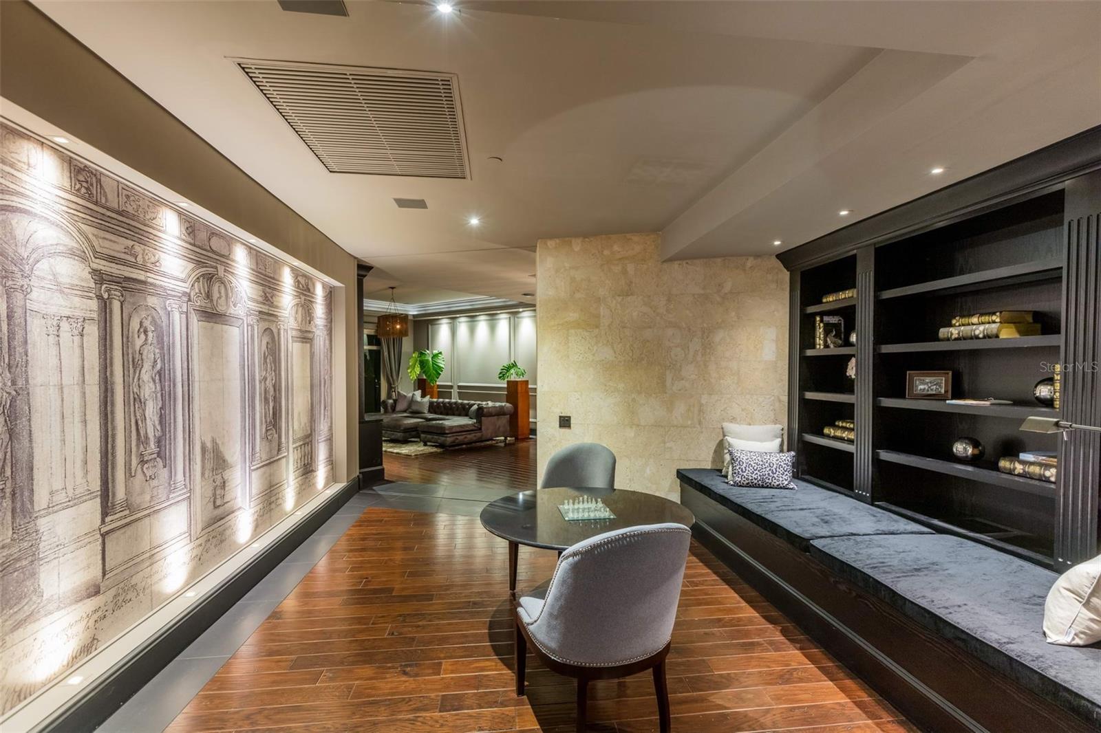 The fully equipped office room provides direct access to one of the terraces. Enjoy a nice workout in your home gym which includes equipment from Body Solid. Next to the fitness room is the entertainment room with a pool table by Olhausen, manufacturer of the best billiards in the USA. The private theater outfitted with plush upholstered seating, dramatic cove lighting to make viewing the large projection screens even more enjoyable, will be your preferred room whether you enjoy watching movies, a World Series Game, or the Super Bowl. The apartment has a full automations system including Lutron lighting and Sonos sound throughout.