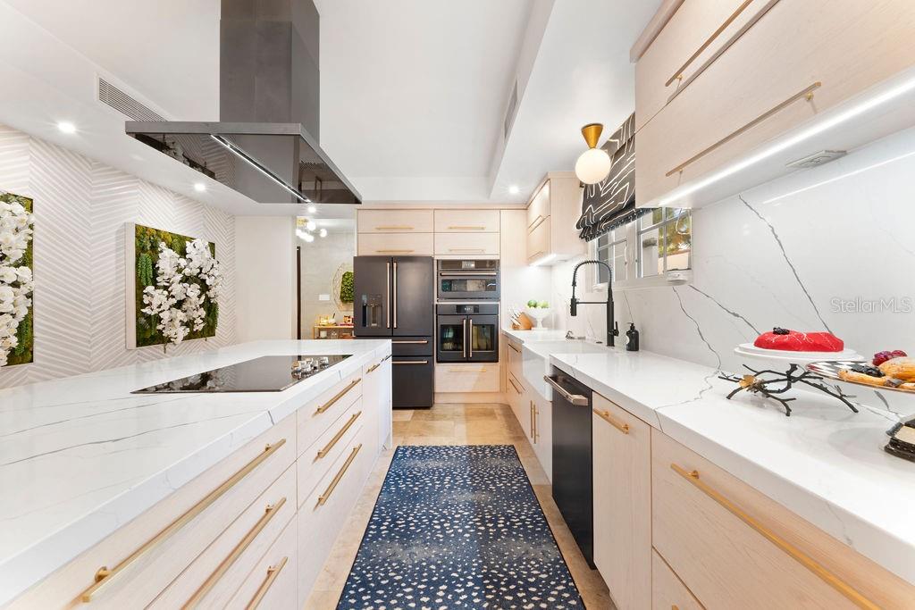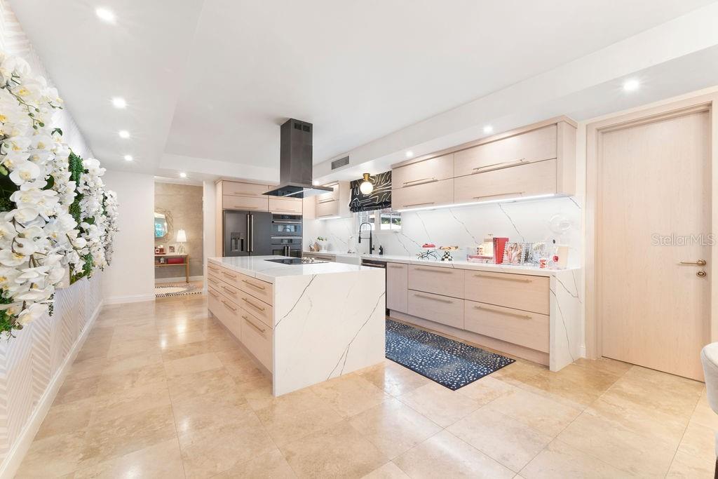 The kitchen features high-end Café appliances, a walk-in pantry with a second refrigerator, and a wine cellar. A guest bedroom with an en-suite bathroom completes the first floor.