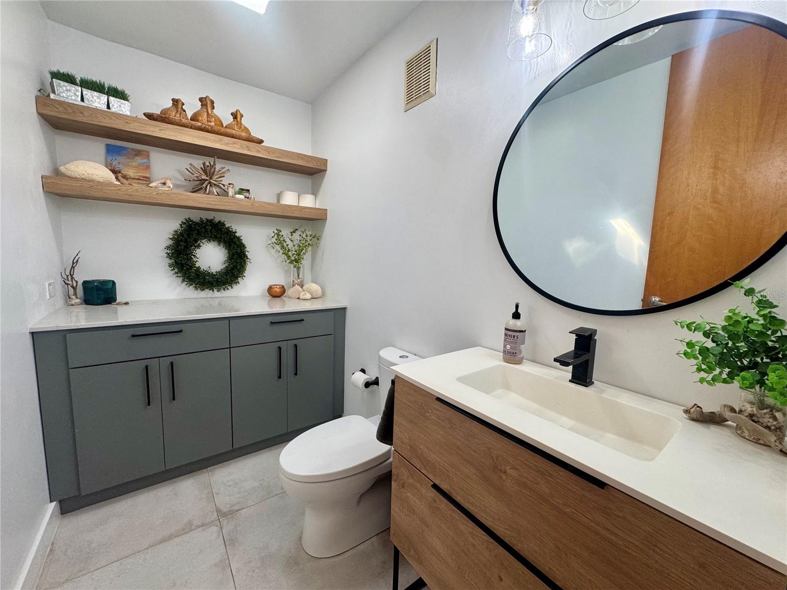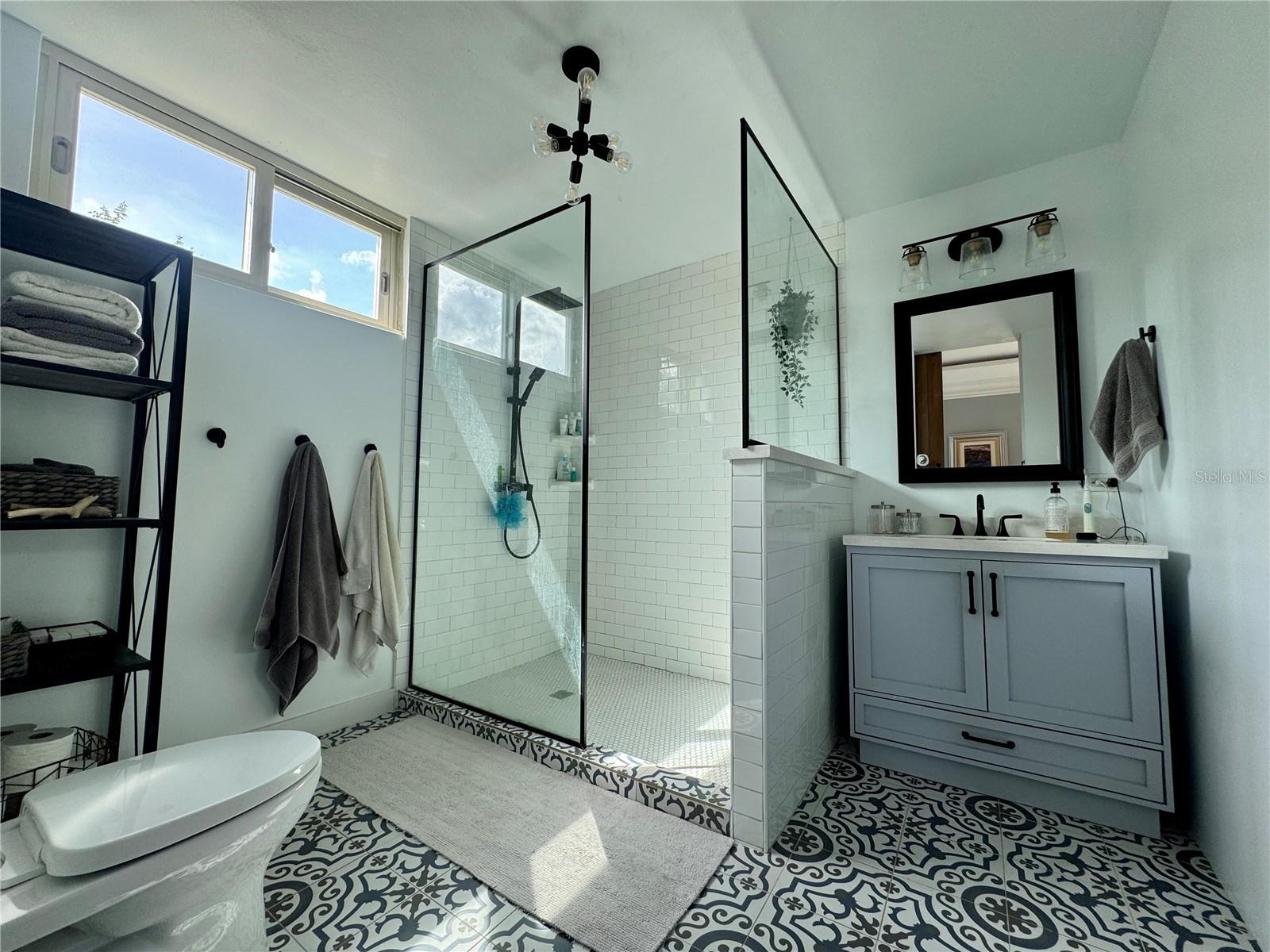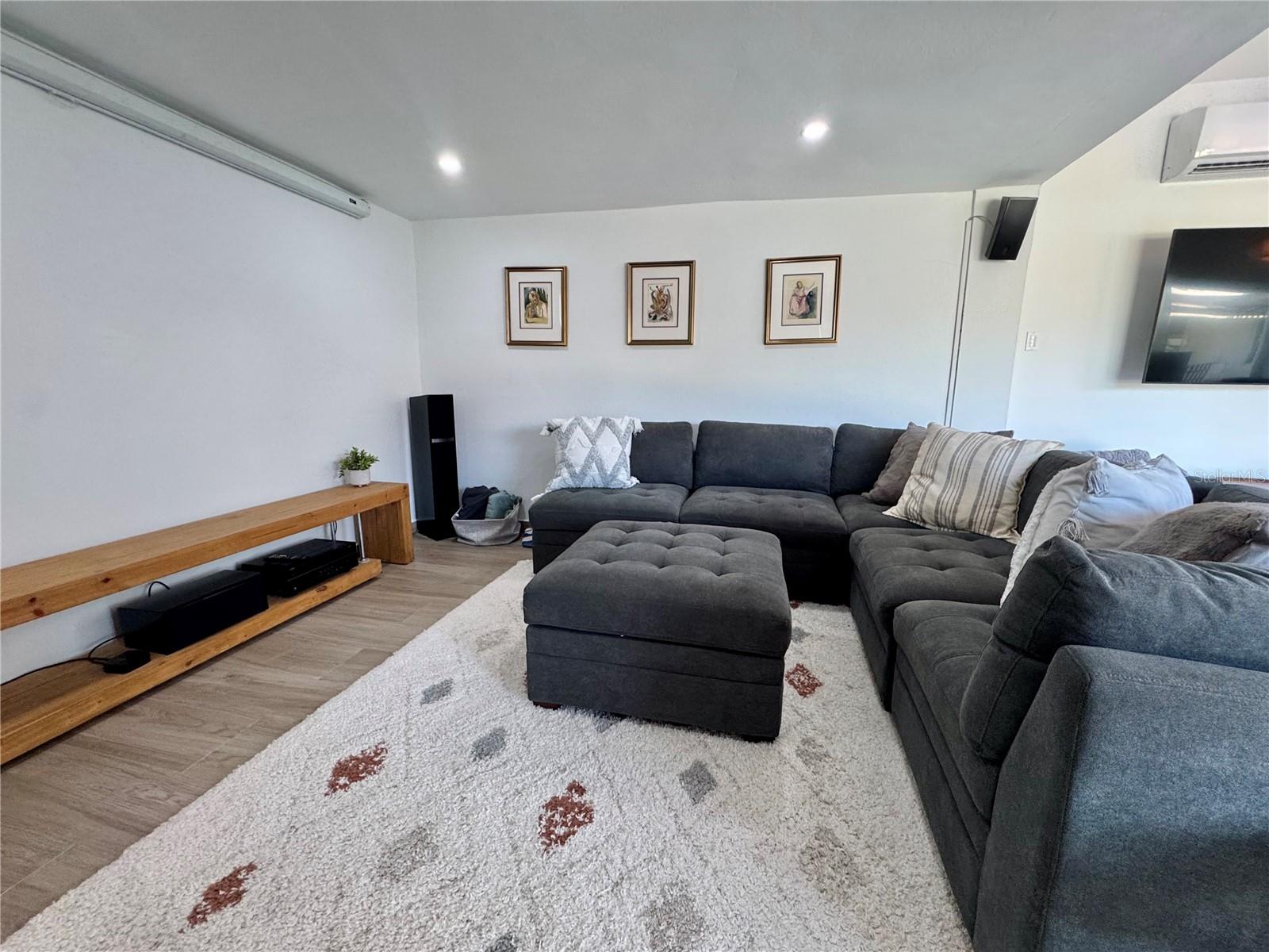 A standout feature of this home is the detached guesthouse, currently set up as a bonus room that could serve as a fifth bedroom. It’s a flexible space that works as a home office or a private home theater with blackout curtains and a projector. It also includes a full bathroom and is conveniently located near the private pool, making it a great space for relaxing or hosting visitors.