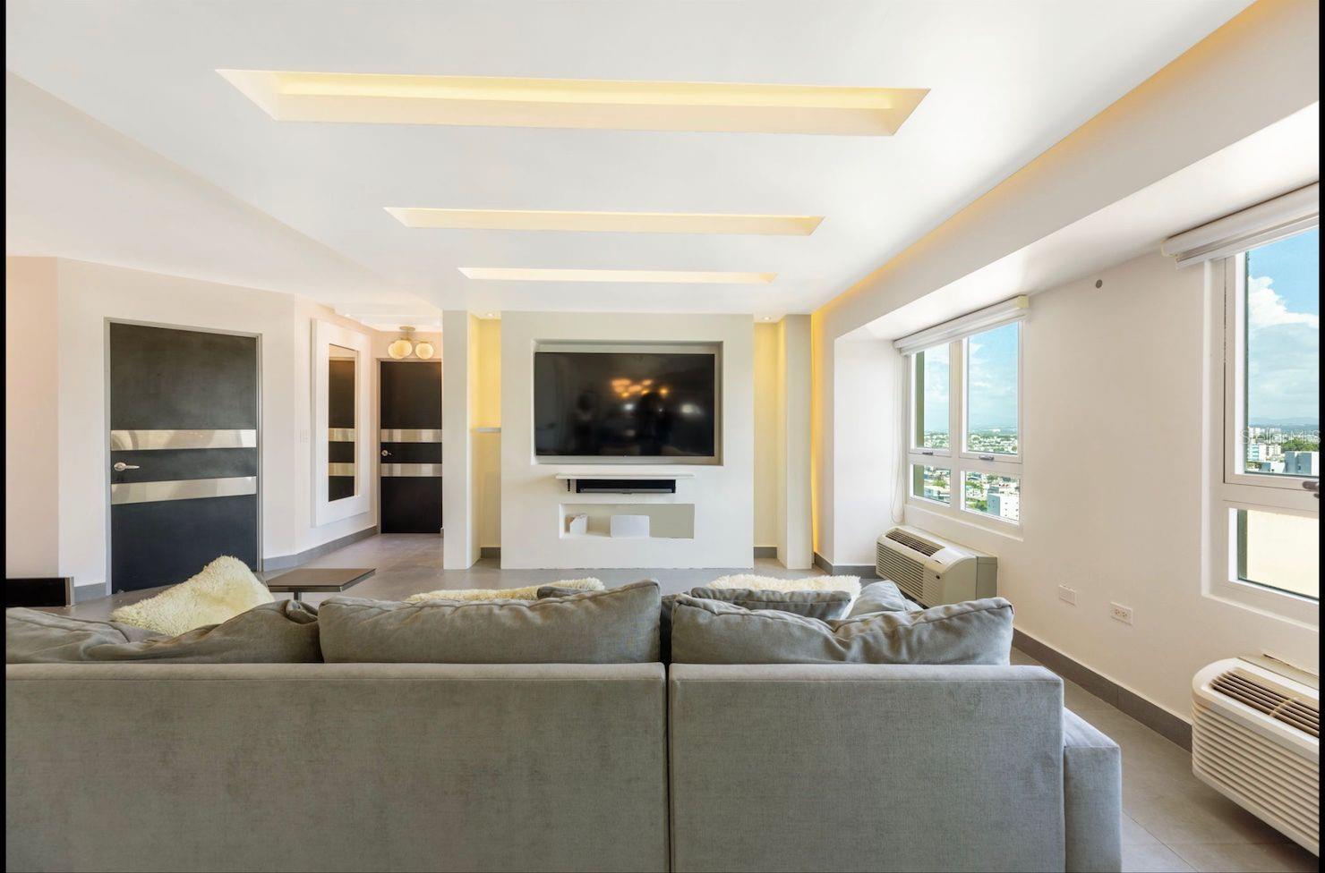 Located in Gallery Plaza, Condado, this fully renovated residence offers 2 bedrooms and 2 bathrooms with 1,337 sq.ft. of modern living space. The open-concept layout features panoramic city views, spacious living and dining areas, and a comfortable primary suite with walk-in closet. The apartment includes 2 assigned parking spaces for added convenience. Gallery Plaza provides 24/7 security, full power generator, water cistern, pool, and fitness center. Just steps from the beach, dining, and shopping, this home places you in the heart of Condado. HOA:$564.42/month – CRIM: $2,436.30/year.