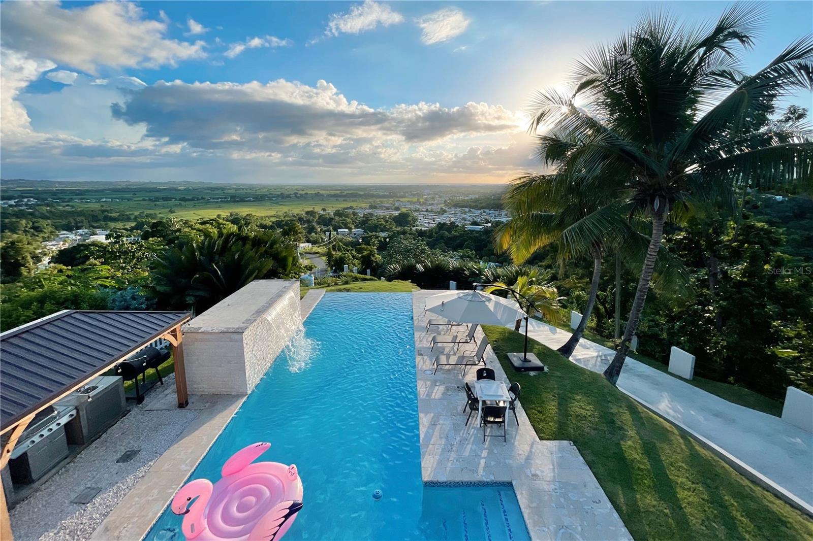 This impressive home, located in Carreras, Añasco, P.R., is a private estate offering 5 bedrooms, 4.5 bathrooms, and approximately 4,000 sq. ft. of construction on a 2,521 m² lot. It features 180-degree views of Puerto Rico’s West Coast and stunning sunsets through 20-foot ceilings and floor-to-ceiling windows.