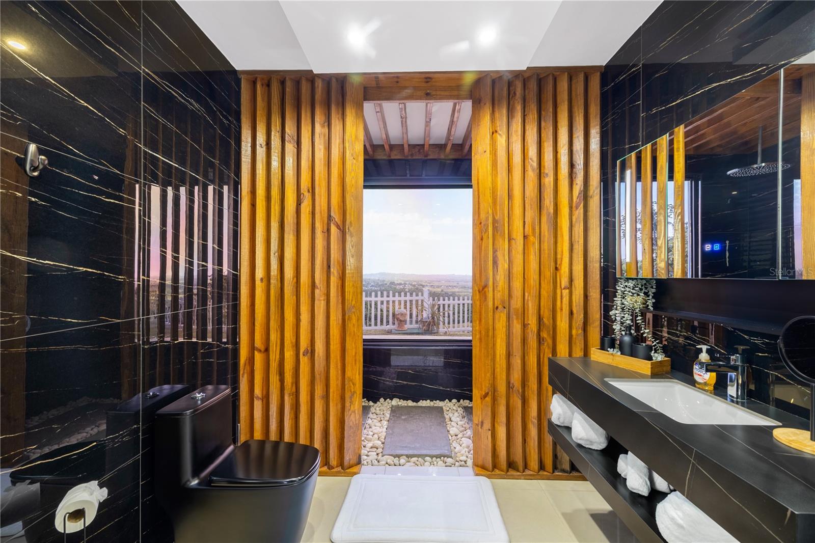 Modern amenities such as a 50kW generator, 16k Outback solar system with 60 panels and net metering, storm-rated windows, gated entry with surveillance, two laundry areas, and a chef-ready kitchen with commercial appliances ensure convenience and peace of mind.