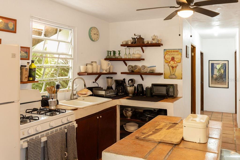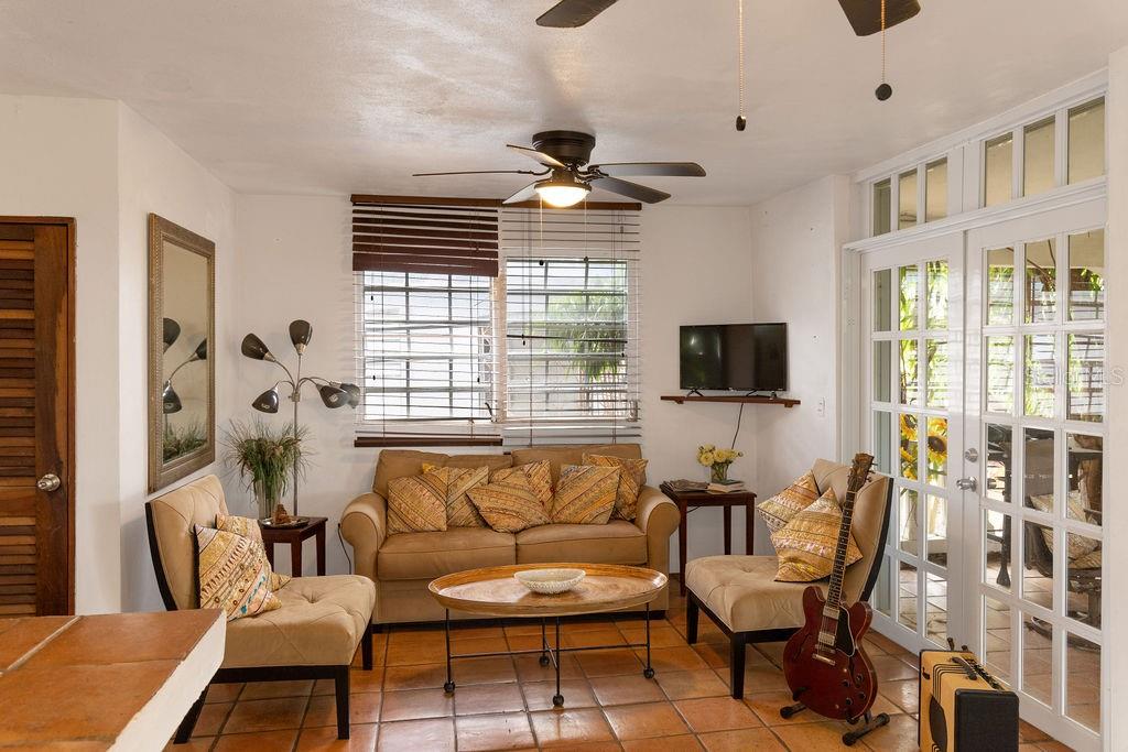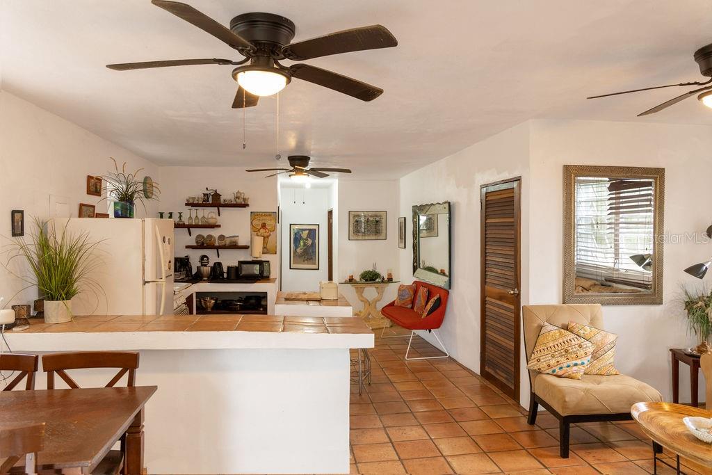 The Upper residence has two bedrooms and two and one half bathrooms with a lovely outdoor terrace amongst the jungle. Step into the upstairs apartment and be transported. This sun-kissed apartment offers natural light pouring into every corner. From it's perch above Isabel Segunda, the home offers views of the last Spanish fort built in the Western Hemisphere, and from the rooftop terrace, you'll enjoy vistas of the crystalline ocean and the mainland of Puerto Rico beyond - on clear days, it feels as though you can see forever.