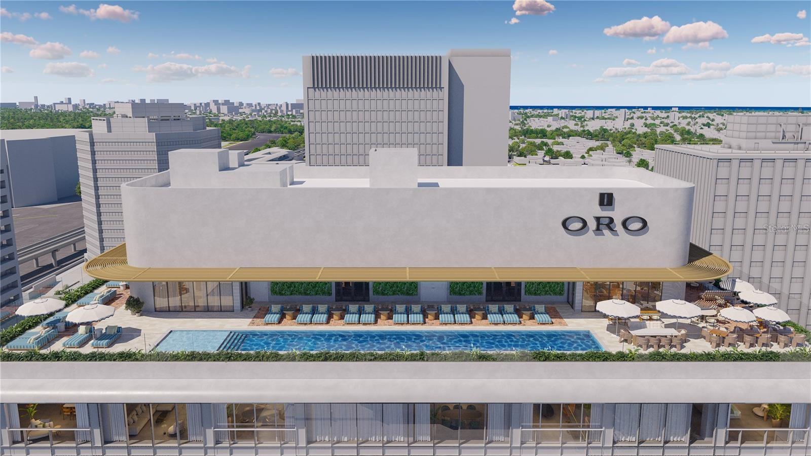 Pre-Construction. To be built. Pre-Construction. To be built. NOW SELLING PRE-CONSTRUCTION Inspired by heritage, glamour and sophistication. ORO is a historic landmark in the Golden Mile skyline of Hato Rey, San Juan’s vibrant financial district. Celebrated for its award-winning design by architect Victor Bisharat, this striking façade reveals artful setbacks with private balconies in most of its 32 breathtaking Autograph Collection branded residences, as its undulating curves echo the aesthetic of the golden-age tropical modernism architecture. The upper four levels of the tower are exclusively residential, culminating in a stunning rooftop on the 16th level featuring the stylish Liquid Bar and Restaurant, a private event space for residents to work and socialize, and a spectacular 28-meter swimming pool overlooking the breathtaking city views. Upon arrival, residents are greeted by a separate, 24-hour attended lobby entrance, a tastefully appointed residential lounge, and personalized concierge services. Offering the privacy of an exclusive residential condominium combined with the luxuries of upscale hotel amenities and à la carte services, Oro Residences is poised to transform urban living. The 1-to-3-bedroom residences boast floor-to-ceiling windows, expansive layouts, and cleverly concealed interiors by renowned architectural designers, Modus Operandi. Each residence celebrates the scale and beauty of the original architecture—a perfect balance of aesthetic and practical considerations. Handcrafted finishes, natural materials, and subtle Art Deco references bring a sense of history to gracious contemporary spaces. Residence 1204 is a grand, corner 2-bedroom residence with double exposures to the North and East, boasting 1,954 square feet of interior space and 267 square feet of exterior space, for a total of 2,221 square feet of living space. Its exquisitely selected interiors include American walnut wood floors creating a warm and inviting atmosphere throughout. A state-of-the-art kitchen featuring a separate island with roble gray millwork, Taj Mahal quartzite counters, and stainless-steel Bosch appliances completes the carefully considered space. The expansive primary suite provides a serene retreat with a generous walk-in closet and a well-appointed 5 fixture primary bathroom. This spa-like sanctuary includes a free-standing tub, a separate oversized shower, a dual vanity with Kohler fixtures and refined chrome fittings. The sprawling layout further enhances ease with a powder room, laundry room, and a generous balcony allowing for a stunning backdrop of the city skyline. ORO Residences, an Autograph Collection Condo-Hotel powered by Marriott, flaunts 25,000 square feet of private amenities and programming spread across three levels, complemented by the impeccable service of one of the world’s premier hotel brands. Residents can indulge in an impressive array of world-class amenities, including a state-of-the-art fitness center and a luxurious spa tailored to meet all wellness needs. Culinary excellence is a cornerstone of ORO Residences, with the Bullion Steakhouse Restaurant and a Barrilito-branded rum bar. A furniture package is available to purchase providing a hassle-free, turnkey ownership experience, along with the opportunity to join Marriott’s exclusive hotel rental program. Estimated Completion Q4 2026.