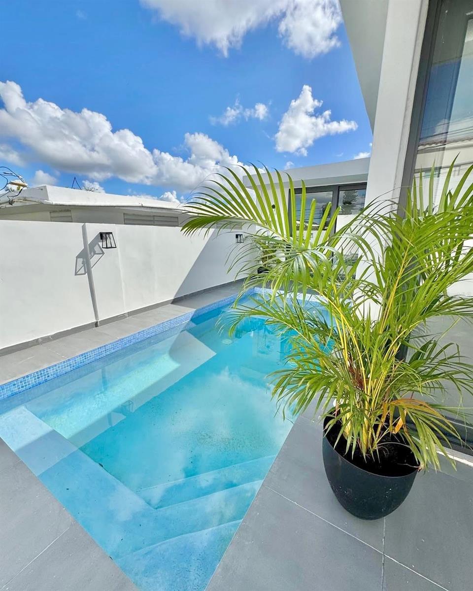 Discover a fully reimagined modern residence in Torrimar, Guaynabo. This 4,000 ft² home sits on a 6,458 ft² lot (600 m²) and blends architectural design with comfort. Featuring 4 bedrooms, 4.5 bathrooms, and a private 9 × 22 ft pool, the property showcases exposed concrete, wood, and iron finishes.