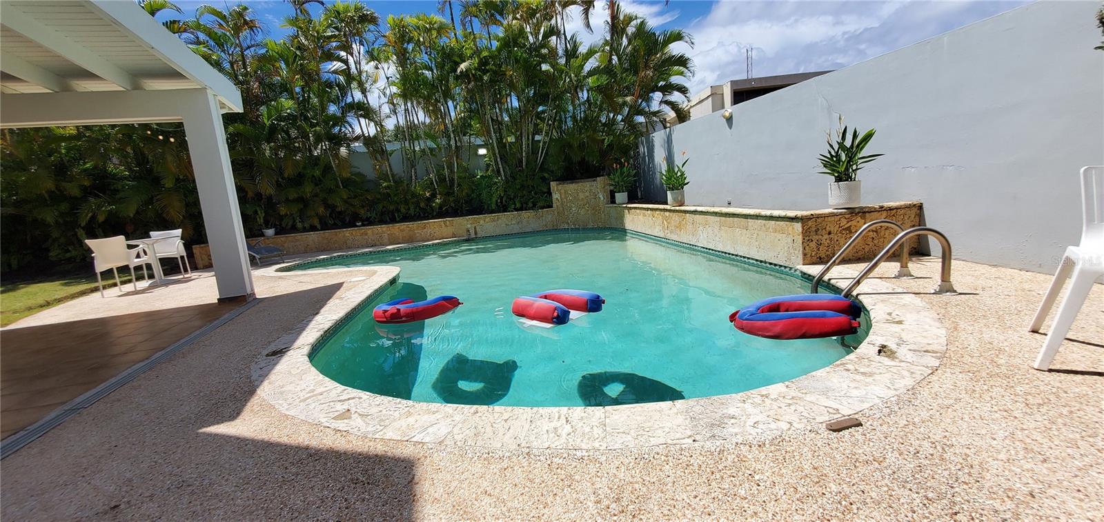 Under contract-accepting backup offers. Beautiful home for sale in Estancias de San Fernando, Carolina. Located in a gated community with 24/7 security, outdoor gym, walking track, basketball courts, playground, and gazebo. This 1,944 sq ft residence features 4 bedrooms with A/C, 2.5 bathrooms, a double carport, a spacious 34’ x 14’ wooden terrace, and a pool perfect for family fun. Added value includes a 26-panel solar system with batteries and a 600-gallon cistern, ensuring energy savings and efficiency. Prime location just steps from Dr. Federico Trilla Hospital, 9 minutes from the airport, 12 minutes from The Mall of San Juan, and 15 minutes from Condado.