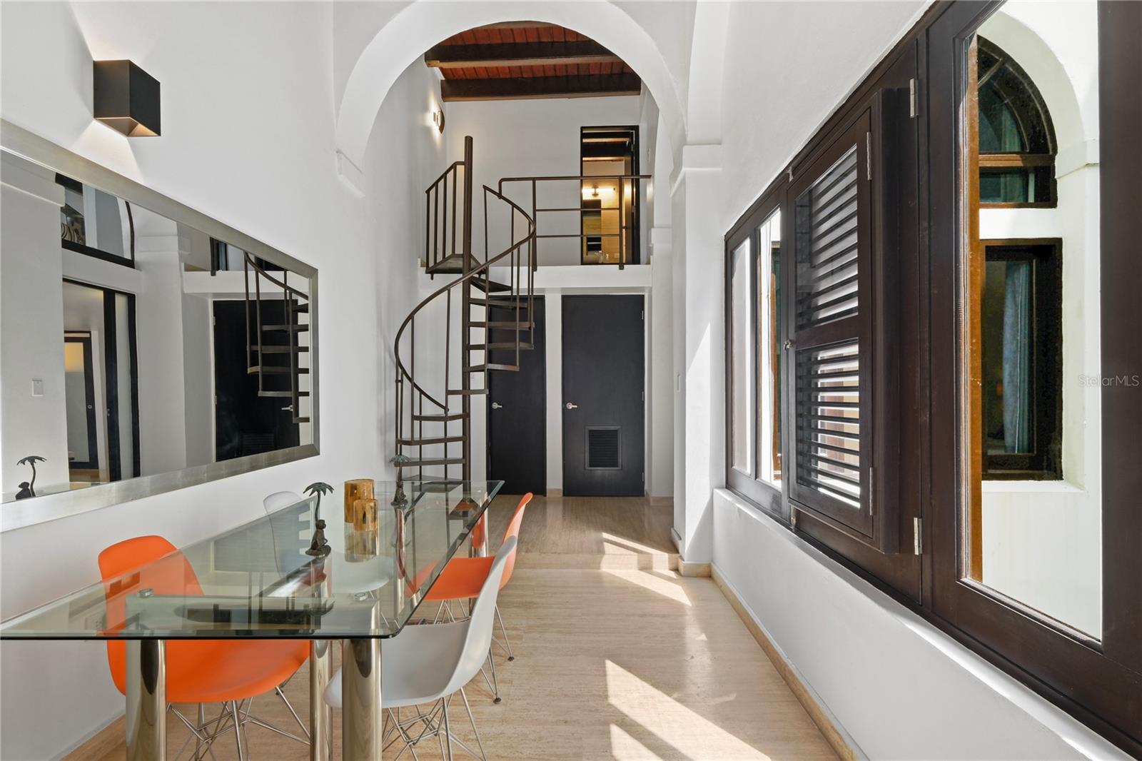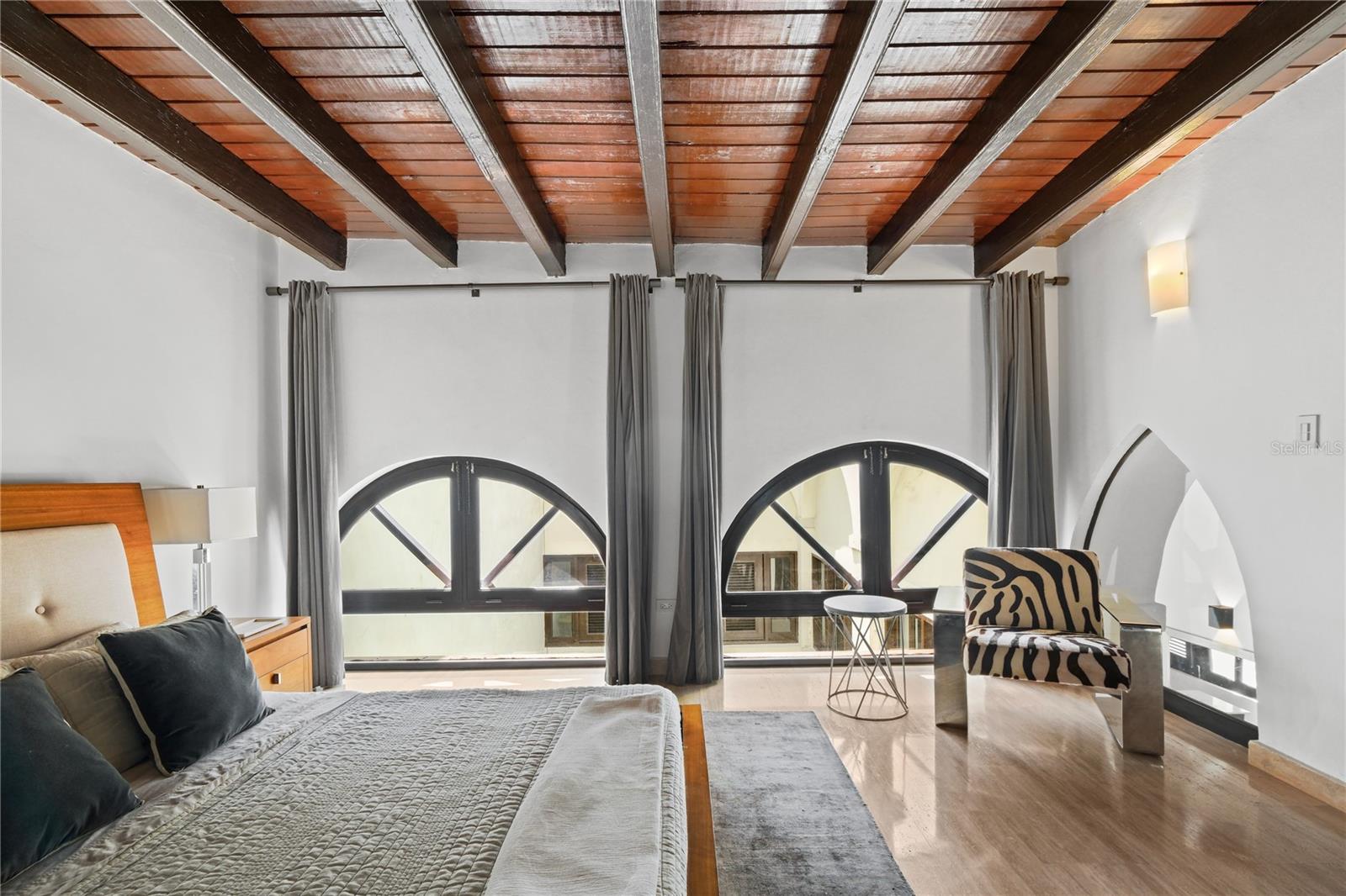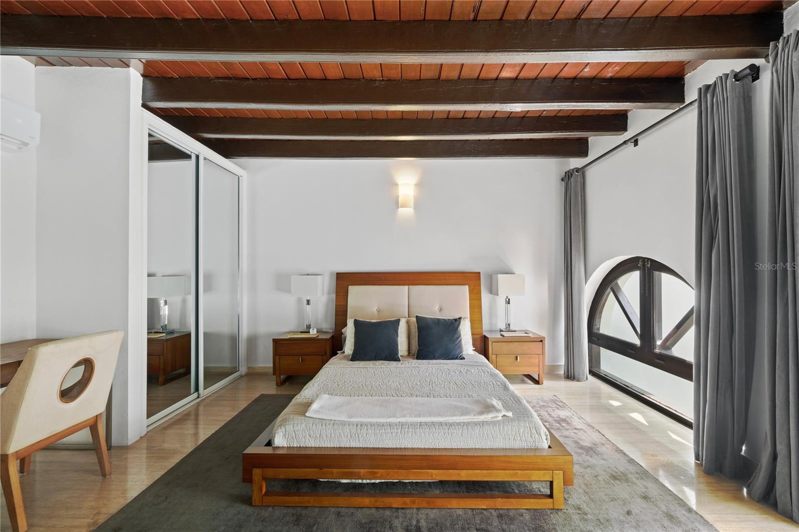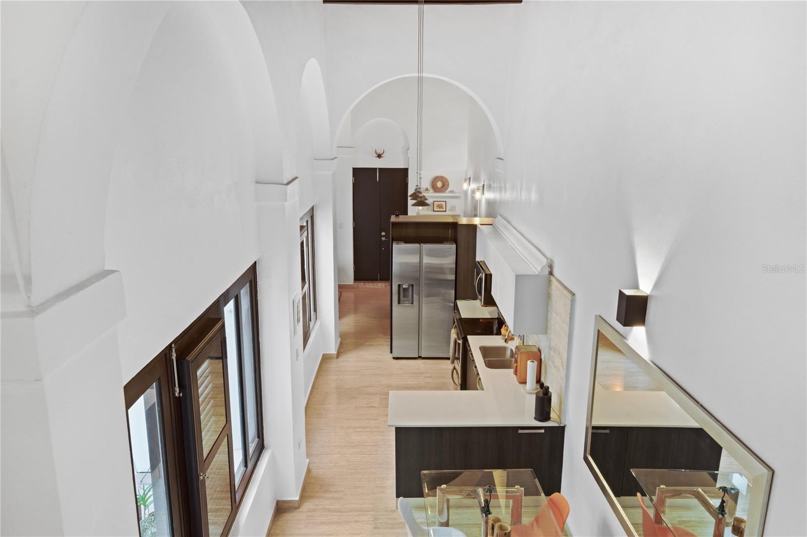 Live in the heart of Old San Juan in this beautifully designed and fully furnished second-floor apartment featuring soaring 17-foot ceilings that create a dramatic sense of space and light. Designed around an interior patio with expansive glass windows, the home is filled with natural light throughout the day, while original Spanish architectural details such as elegant arches blend seamlessly with an open floor plan for a unique and timeless design. The residence is finished with travertine stone floors, a European-style kitchen with modern appliances, and a built-in wine bar refrigerator, offering both comfort and sophistication. Quietly tucked away yet only half a block from Plaza de Armas, residents can enjoy immediate access to shops, cafés, restaurants, and even a SuperMax grocery store, making everyday living convenient and enjoyable. The apartment comes fully furnished for easy move-in, providing a stylish and functional space ideal for city living. Whether you’re seeking a private retreat, a home base while working remotely, or simply want to experience the history and charm of Old San Juan in comfort, this rare rental offers the perfect combination of historic character and modern amenities.