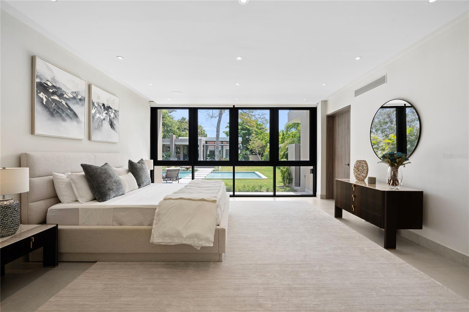 The luxurious primary suite is a true sanctuary, featuring remarkable views of the lush backyard and the serene lake. It boasts a spa-like en-suite bathroom that will take your breath away, complete with a standalone soaking tub, dual vanities, and expansive his-and-her closets that provide ample storage. Each of the additional bedrooms is thoughtfully designed, offering generous space and privacy, making them perfect for family members or guests.