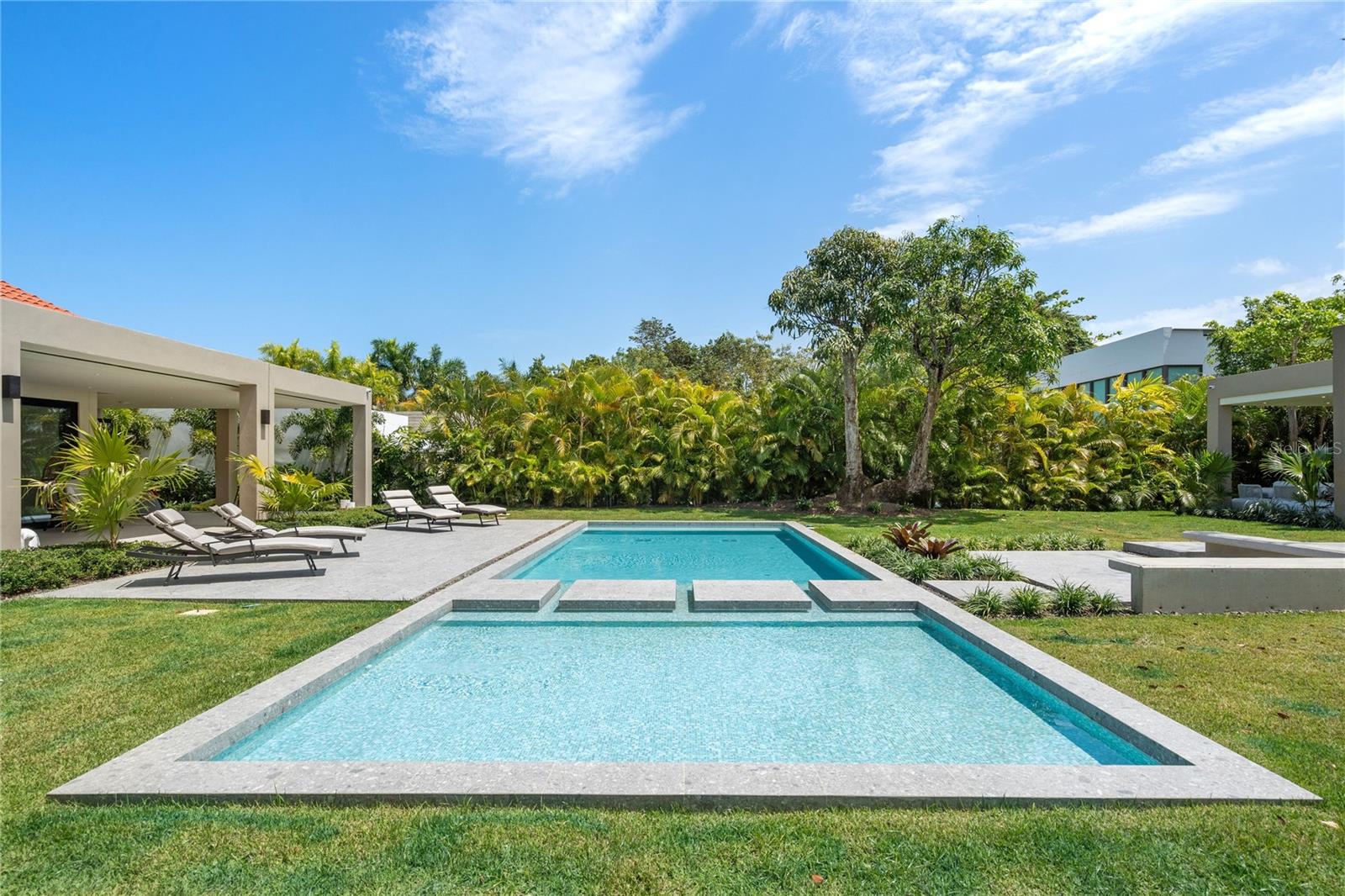 Additional DetailsInteriorTotal Bedrooms 5 Full Bathrooms 5 Half Bathrooms 1 Laundry Laundry Room Flooring Ceramic Tile Appliances Cooktop, Dishwasher, Dryer, Electric Water Heater, Microwave, Refrigerator, Washer, Water Filtration System Other Interior Features Open Floorplan ExteriorConstruction Materials Concrete Garage Space 3 Heating Electric Cooling Mini-Split Unit(s) Other Exterior Features Lighting, Outdoor Kitchen, Sliding Doors RoomsFirst Floor Living Room, Dining Room, Family Room, Kitchen, Foyer, Primary Bedroom, Bedroom 2, Bedroom 3, Bedroom 4, Bedroom 5, Laundry, Office, Breezeway GeneralDays on Market 72 Garage Yes Pets Allowed Yes Spa Yes Area and LotLot Size in Acres 0.6 Living Area in SQFT 4729 Utilities Cable Connected, Electricity Connected FinancialAnnual Tax $0 HOA Fees $950 Location