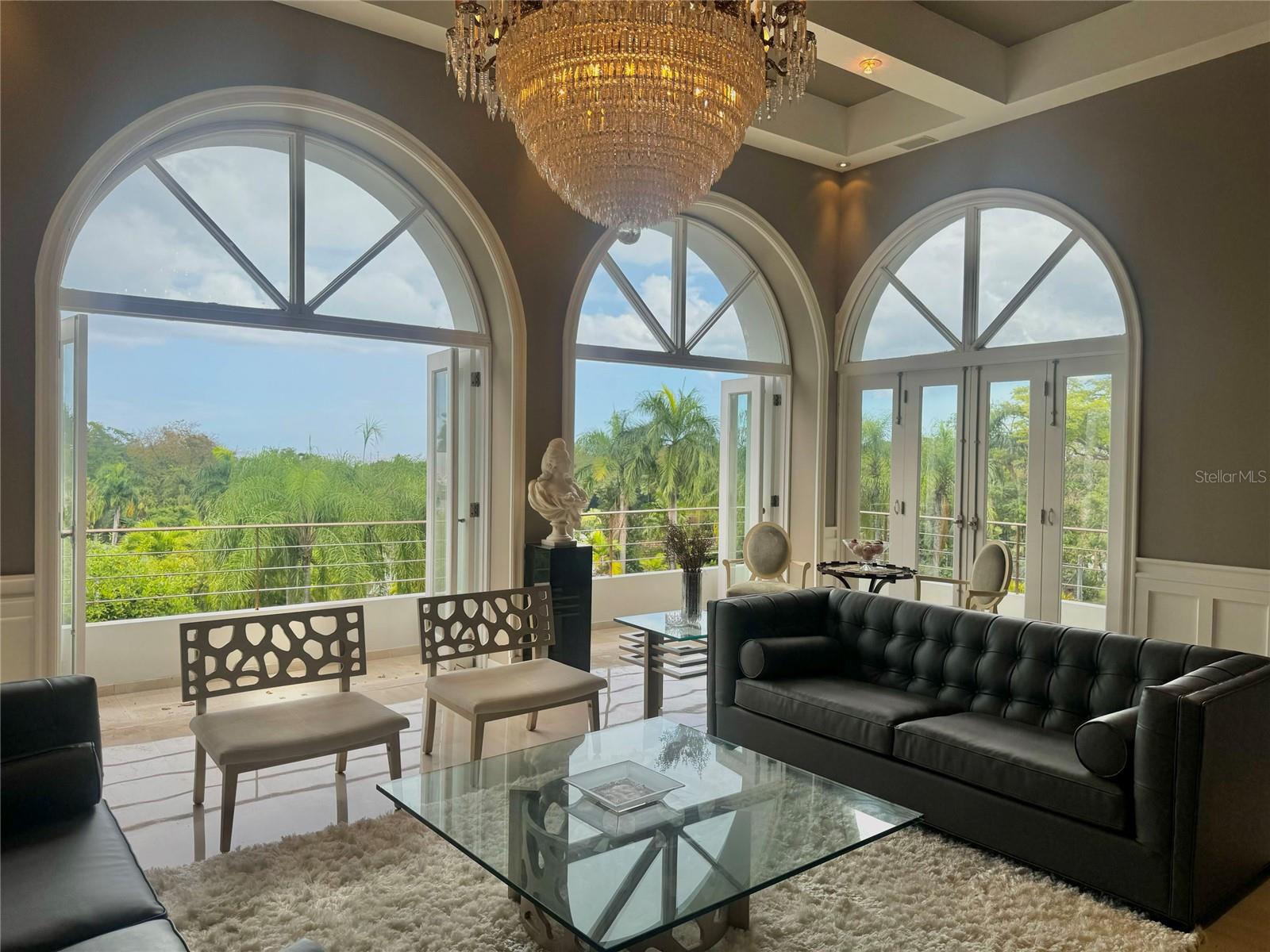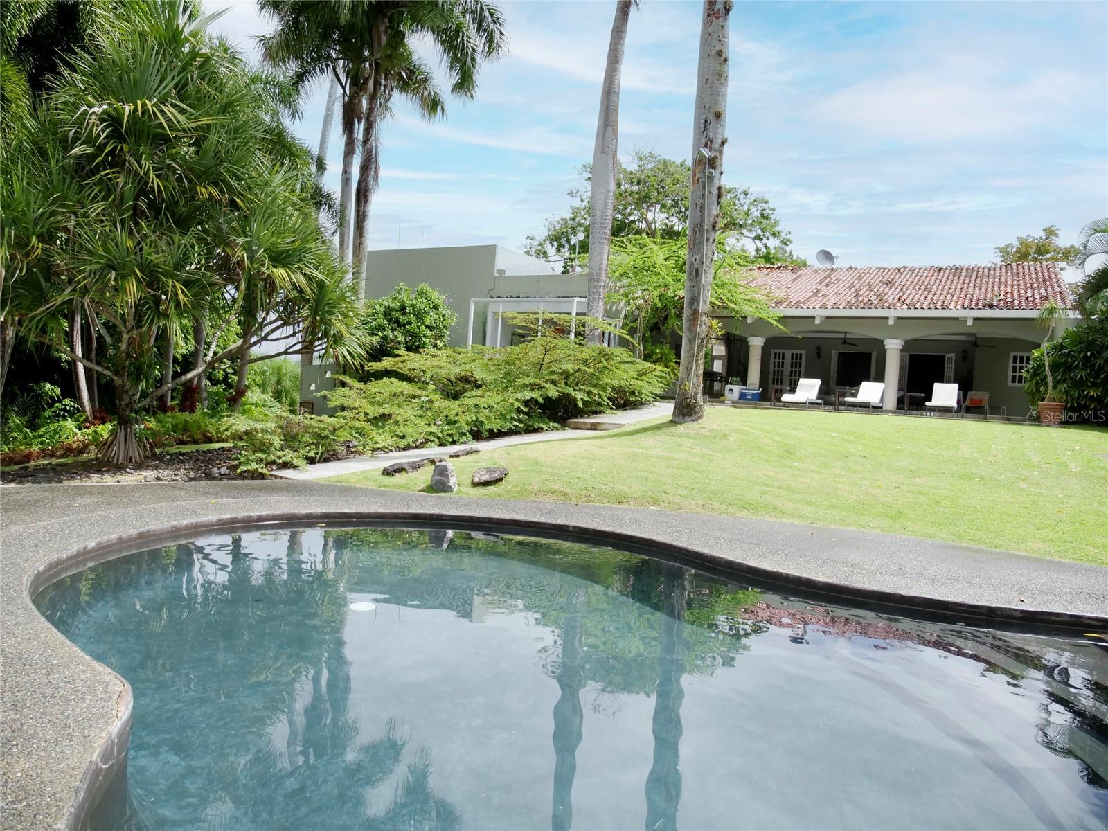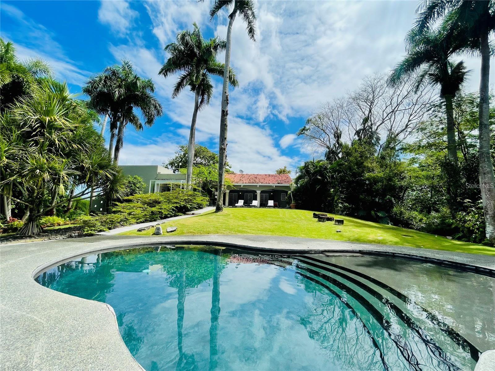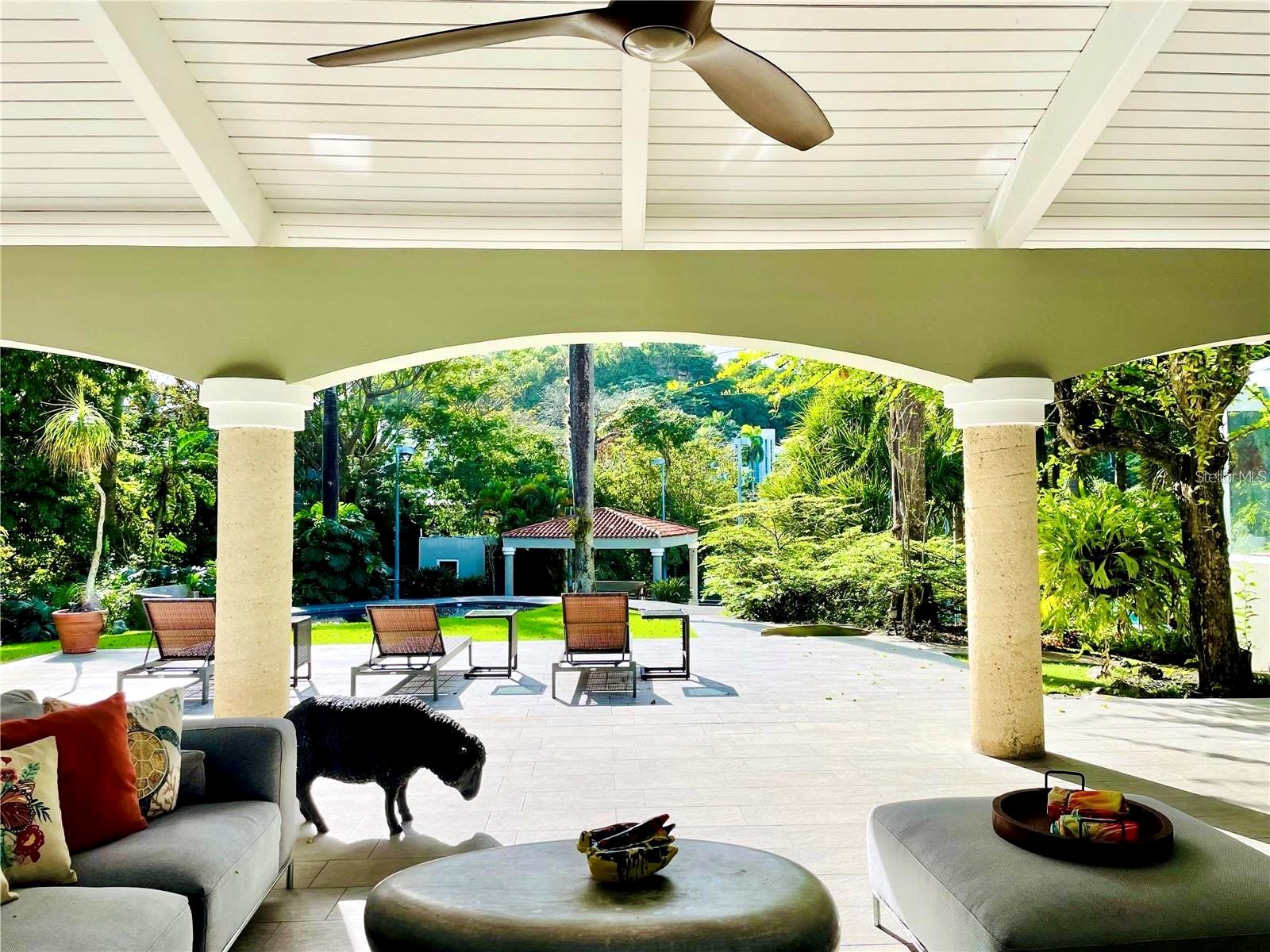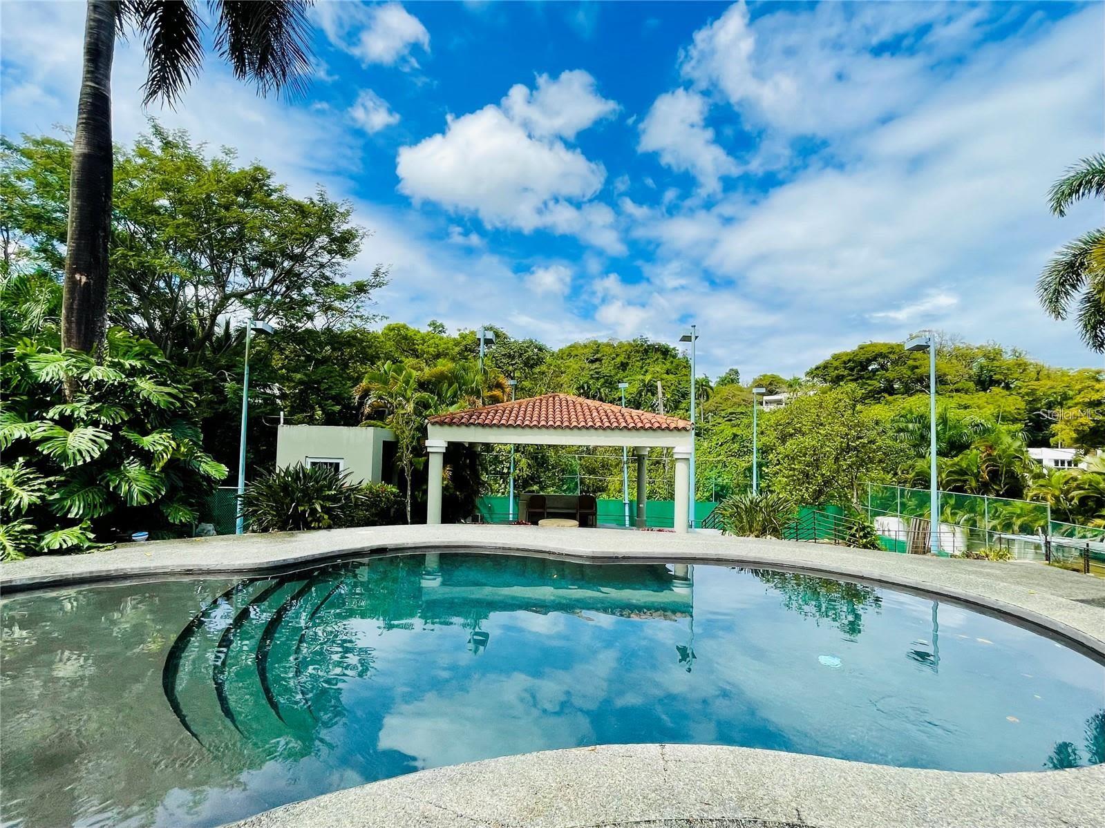 Enjoy living in this tropical Paradise, in your own private resort on a hilltop overlooking San Juan and the ocean in the distance, and yet only 6 miles from San Juan. This impressive 7,538 S/M luxurious estate is a true oasis surrounded by lush gardens and century old trees. The residence boasts magnificent marble floors throughout, majestic cathedral ceilings in the commanding Great Room, a chef's kitchen with top of the line appliances opening up to a modern dining room and a huge covered terrace, great for entertaining, and all overlooking the pool, tennis court (being renovated), a fire pit, a gazebo, a bar and wine room. The home also features an office or library, a large fully equipped media family room, also all overlooking the terrace, pool and tennis court. The home boasts seven bedrooms with en-suite baths, including a complete separate apartment, or guest quarter with its own entrance. An oversized laundry room, a caretaker’s bedroom (now a gym) with en-suite bath, three separate garages, a large full generator and a cistern complete this magnificent one of a kind suburban estate. Tintillo Hills is an exclusive enclave and one of the most secure double-gated communities in Guaynabo. This unique estate benefits from close proximity to Condado and Guaynabo’s best schools, restaurants, and cosmopolitan living while you indulge living in a secluded oasis, a tropical paradise, your own private resort. For qualified buyers by appointment only.