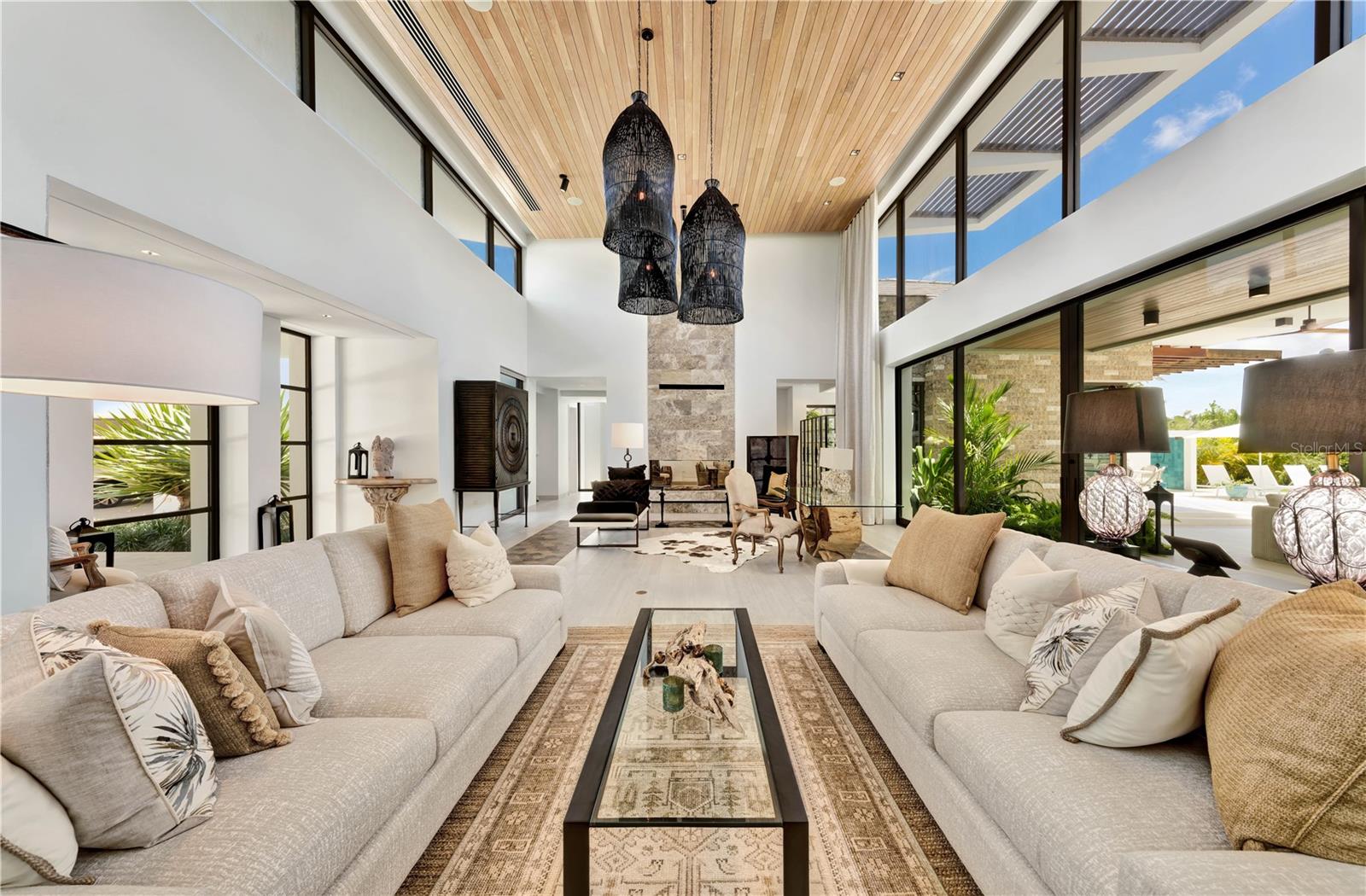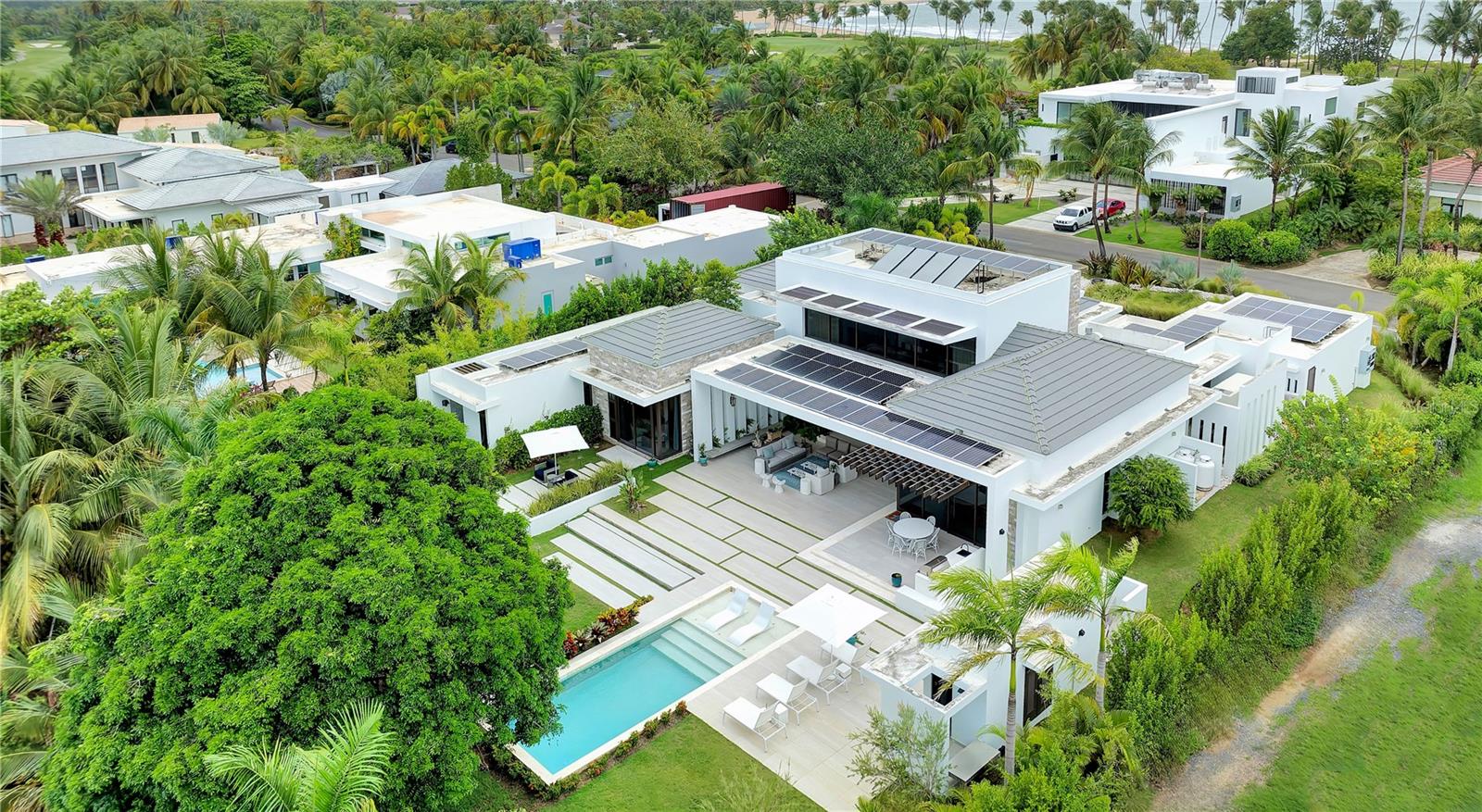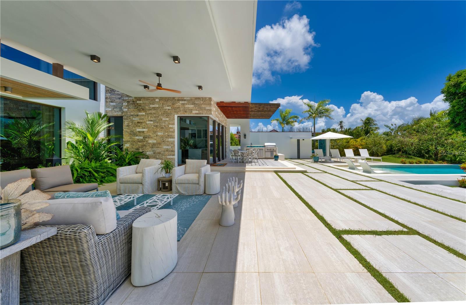 ***SOLD*** No expense spared on this true to form Caribbean contemporary new construction, sitting blissfully at the eastern entrance to the rainforest and within the gates of Bahia Beach Resort. Completed in 2024, 23 Las Estancias stands a testament in true adoration to architectural intention and sophisticated purposeful interior design. Sitting on just over 1/2 acre, each curated detail resonates throughout this 3 bedroom, 3 full bath and 2 partial bathroom single level estate. 20+ Ft entry ceilings pull all of the natural light from the floor to ceiling glass doors, with broad facing western exposure to the lake, mountains and lush tropical backdrop that only the El Yunque rainforest can afford. Brushed blond wood palettes delicately accent the pinnacle of each room's ceilings, pulling in natural textures to the all concrete structure. Limestone floors add a cool tonality to the juxtaposition of ultra green foliage enveloping the home's elevated exterior facade landscaping. Cascading honed marble countertops highlight this double sized gourmet kitchen, featuring a gratuitous 19x19 footprint, and cornered by 10+ ft glass doors that open fully to the property’s magical oasis. Privacy and purpose reign here, where your outdoor summer kitchen equipped with full gas range, sink and bar moves fluidity towards your zero edge swimming pool, which is adjacent to your outdoor shower and bath, dining, sunning areas and hidden entertaining spaces. Guest suites, each highlighting the exotic nature of living within the resort, feature walk-in closets, ensuite baths and full length picture windows encasing the spaces with fresh sunkissed natural light. The primary wing serves as an homage to refined peace. Double entry doors swing inwards towards the 4 post california king bed, masterfully angled towards the estate’s western outdoor living, where hints of running water from the lake abutting the property’s line, and coconut bearing palms sway off in the distance, to this coast's constant melodic breezes. A basin tub swathed in the greenery exposed by the large bay windows, and indoor/outdoor shower textured in raw stone elements, and an 11' 11” X 13' 11” temperature controlled boudoir and closet round out the home's impeccable design. Warm neutrals kiss every element of design here, where Lutron lighting and shades throughout, a fully off grid solar installation on roof and numerous other refined details, allow the owner the ease of purposeful living. 23 Las Estancias serves as a culmination of vision and passion elegantly aligned in both presence and form. The only of its kind, a true 1 of 1.