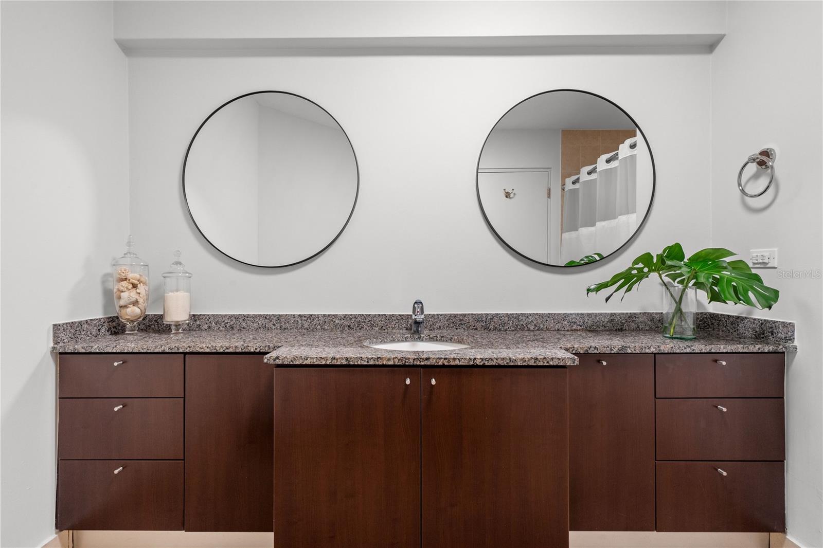 The primary suite offers its own private retreat with ocean views, a walk-in closet, and a bathroom appointed with his-and-hers vanities. A secondary bedroom with an en-suite bath provides comfort for family or guests.