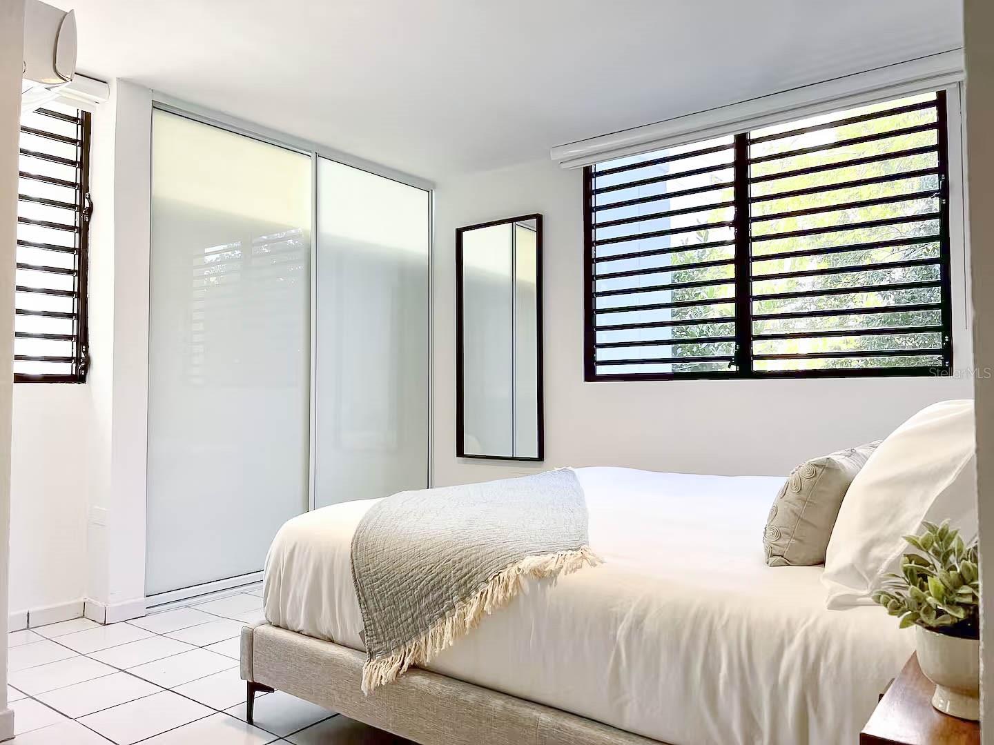 This fully renovated three-bedroom, two-bathroom condo is located in the heart of Miramar, San Juan, within a gated building that offers private and secure assigned parking. The spacious condo is fully furnished with one king bedroom and two queen bedrooms, its open-concept layout features a dining area for six, a comfortable sectional with a Smart TV, and a fully equipped kitchen with modern appliances and extra seating on quartz counter top peninsula. All bedrooms have a/c inverter split units. All windows have treatments, the bedrooms have blackout curtains in addition. All bedrooms have built- in closets. The balcony features an electric grill. Additional features include a washer and dryer in the unit. Location! Walking distance from Laguna del Condado and beach (1km), Escambron Beach (1.7km), Convention Center, Distrito T-Mobile (1.6 km), restaurants (500 m), cafés (400 m), and entertainment options such as theater (650 m). Miramar is one of San Juan’s most desirable neighborhoods.