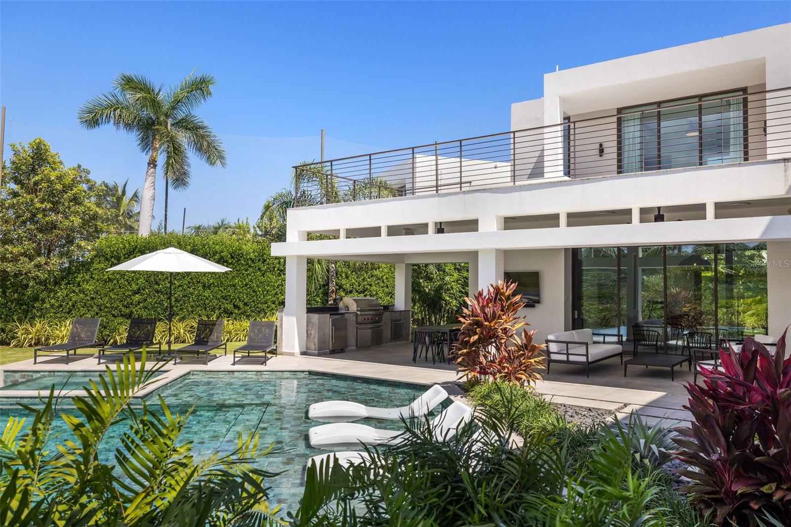 Introducing this stunning estate that offers approximately 7,000 sf of unparalleled luxury living space and functionality. The main house features 4 bedrooms, 5 full baths, 2 family rooms, and a spacious living room. A large walk-in pantry, dual laundry rooms, and a mudroom ensure convenience at every turn. Thermador appliances grace the kitchen, complemented by custom closets throughout. Additional highlights include a freezer in the garage and two refrigerators with freezers. The guesthouse provides a private retreat with 1 primary suite, 2 full baths, and a kitchenette. Step outdoors to discover an oasis complete with an outdoor kitchen featuring a pizza oven, BBQ, sink, and fridge. Enjoy the saltwater pool heated to perfection or explore the expansive grounds with ease using the 4-car garage and 4 golf carts. This exceptional property offers the ultimate in luxury living, blending comfort and sophistication effortlessly.