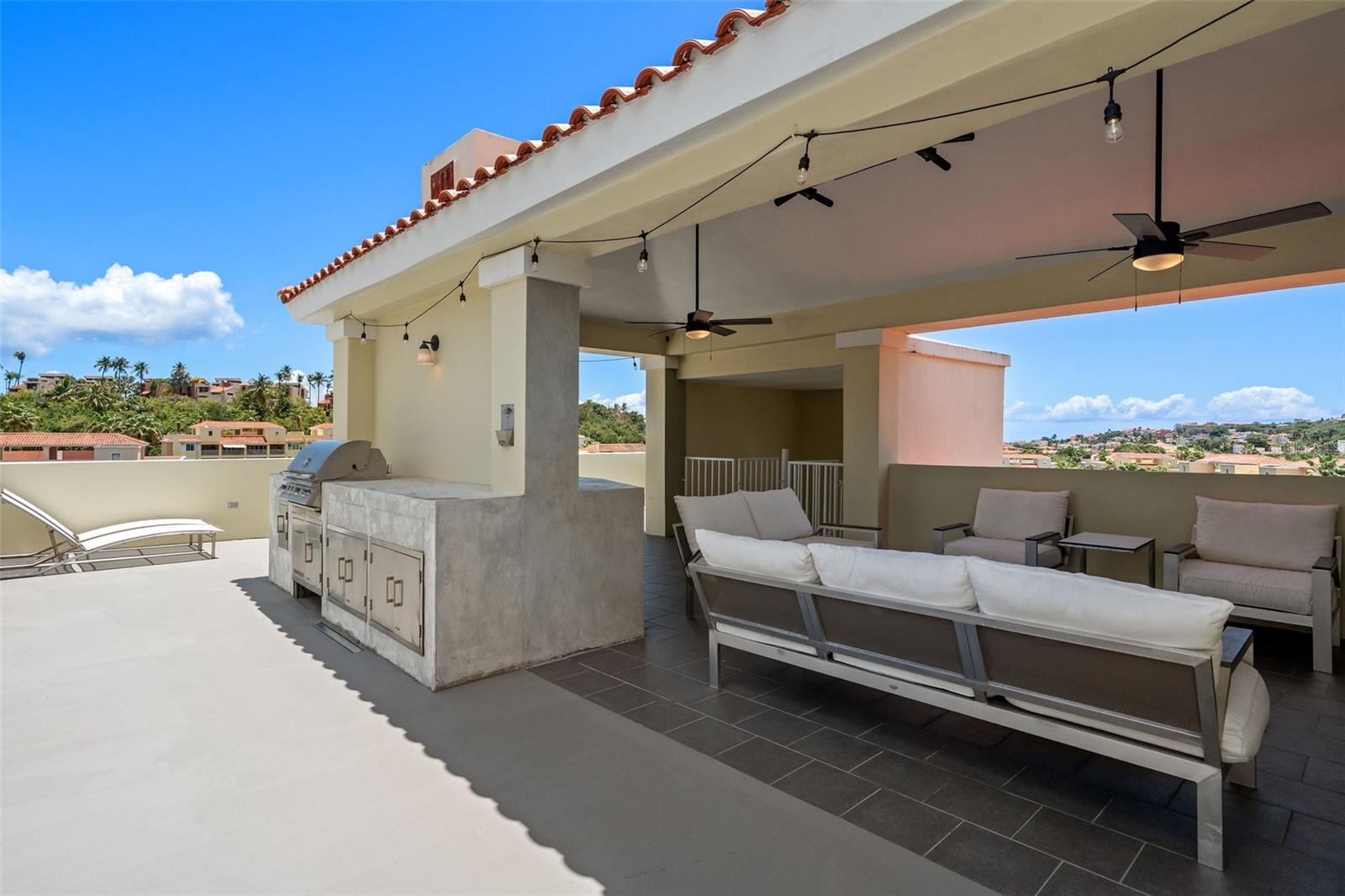 Imagine waking up each morning as golden sunlight fills your home, and ending your day under a Caribbean sky full of stars. Welcome to Harbour Lakes, a stunning corner penthouse featuring 3 bedrooms and 2.5 bathrooms, offering 1,587 square feet of thoughtfully designed living space, plus a spectacular 750-square-foot private rooftop terrace that captures the essence of island living. Thanks to its prime corner location, the residence enjoys six additional windows that flood the interiors with natural light and invite the gentle Caribbean breeze to flow throughout, creating a seamless connection between indoor and outdoor living. From the moment you walk in, you’ll feel at home. This penthouse is sold fully furnished and equipped, featuring brand-new high-efficiency air conditioning units, an elegant entertainment system with a 75" Samsung backlit TV, updated designer hardware and light fixtures, and durable electric storm shutters installed on all glass doors and windows. The main entrance door, with glass panels, adds even more light and sophistication to the welcoming atmosphere. The open-concept layout of the living, dining, and kitchen areas flows naturally, perfect for relaxed daily living or casual entertaining. Upstairs, your private rooftop terrace becomes the ultimate extension of your lifestyle, with a covered seating area, built-in bar, grill, sink, and extra storage. From here, enjoy serene lake views during the day and stunning ocean vistas at sunset. Whether sipping morning coffee or hosting sunset gatherings, every moment feels special. Within the gated community of Harbour Lakes, residents enjoy a resort-like ambiance with five sparkling pools, walking and biking trails, picnic areas, playgrounds, and lush tropical gardens. It’s a safe, tranquil, and social environment designed for active, outdoor living. Beyond Harbour Lakes, the expansive Palmas del Mar resort opens up a world of amenities, including two championship golf courses, a tennis and pickleball club, a world-class marina, an equestrian center, miles of golden beaches, over 20 restaurants and cafés, a supermarket, a bank, and The Palmas Academy, a pr¡vate school offering education from preschool through 12th grade. Monthly HOA: $196 | Annual community insurance: $1,716.79 | Palmas del Mar HOA: $1,300 | Annual property tax: $613.03. Short-term rentals (Airbnb) are permitted, offering flexibility whether you envision this property as your primary residence, vacation retreat, or investment property. This is more than a home. Here, every sunrise brings new possibilities, and every sunset reminds you that you made the right choice.