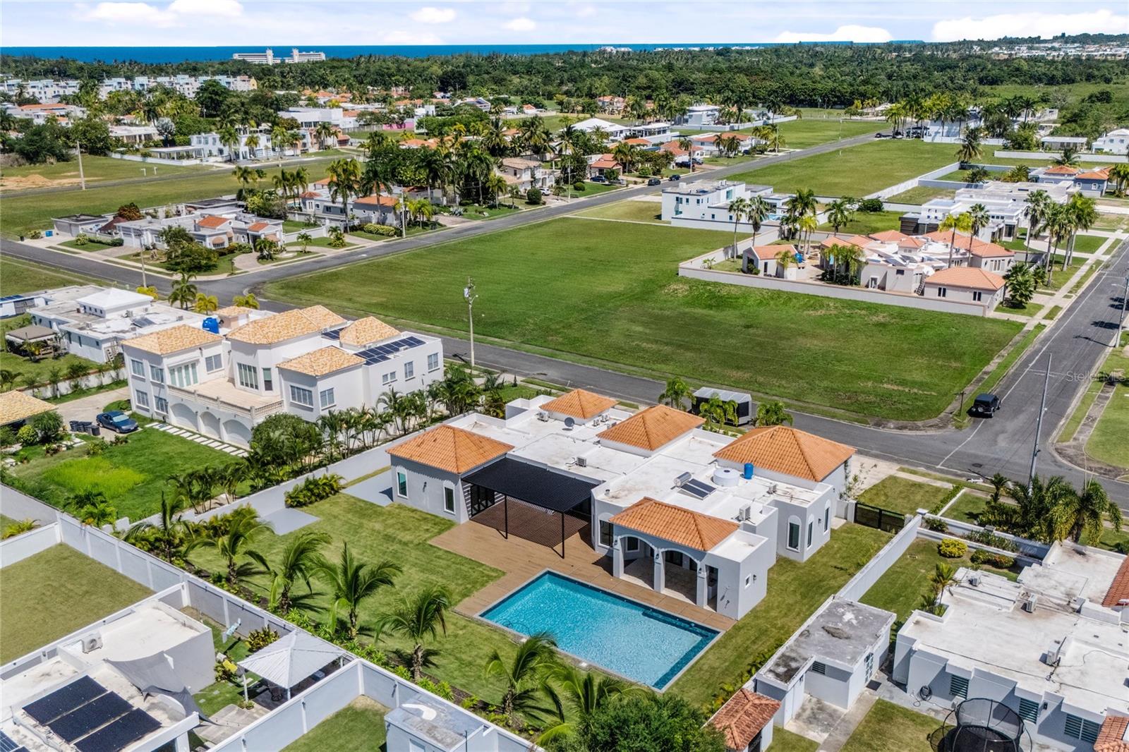 The property features a modern swimming pool surrounded by a spacious patio, perfect for gatherings and outdoor enjoyment. A rare find in a prime location close to Dorado’s beaches, restaurants, and top schools.