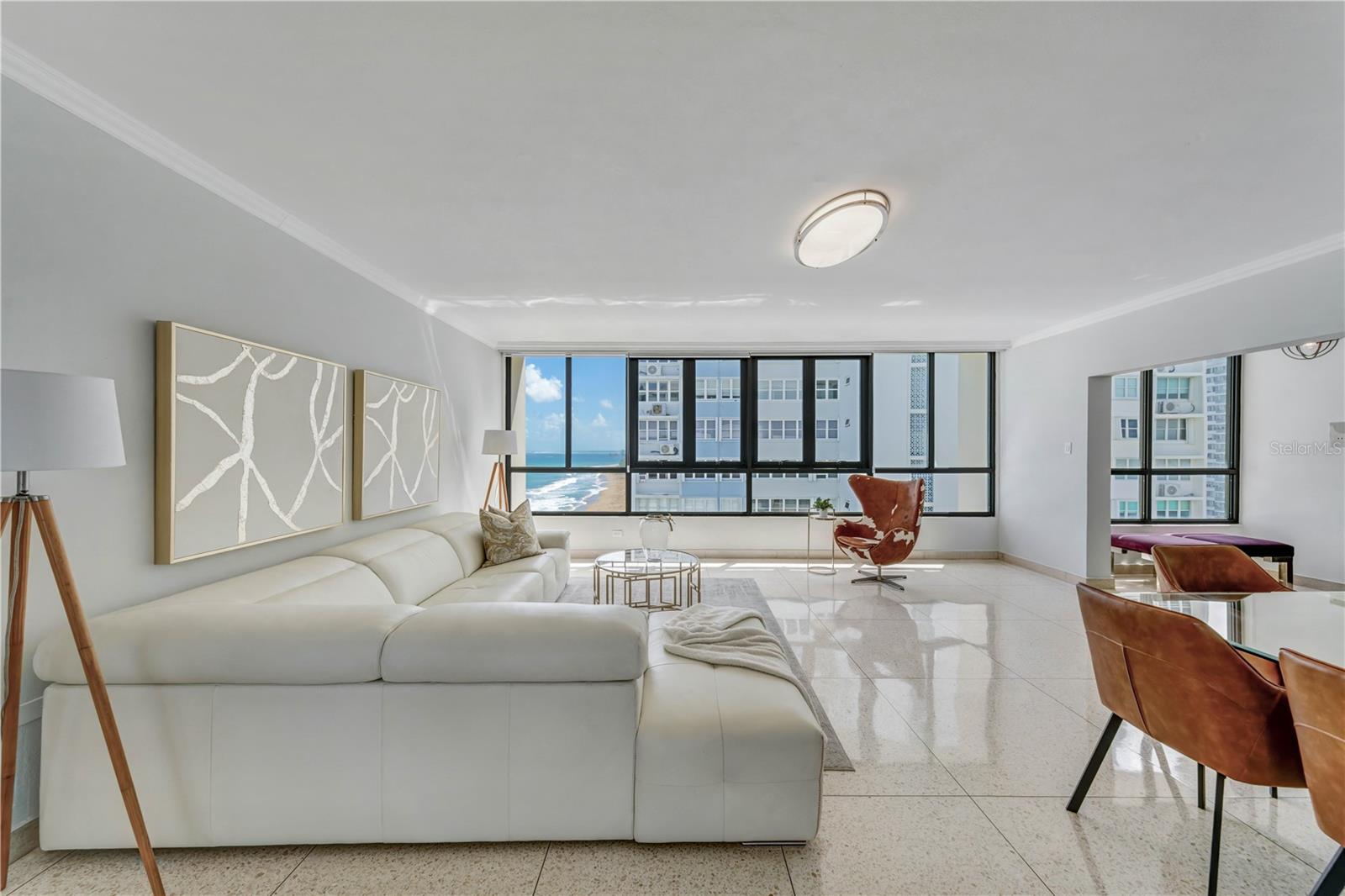 ***LEASED*** Situated in the heart of the Condado Beach district of San Juan, enjoy breathtaking ocean views and direct beach access with this 10th-story residence at Park Terrace. This 4-bed, 3-bath apartment offers approx. 1,975 Sq. Ft. of air-conditioned space with tasteful furnishing. The expansive living and dining areas feature a light-filled open-concept design that seamlessly connects to the adjacent kitchen. The North wing of the apartment houses all 4 bedrooms, 2 of which are ensuite. One of the guest bedrooms currently serves as an office, adding versatility to the home's sizable layout. The spacious primary bedroom includes a walk-in closet and an enviable bath with an overhead rain shower. A 1-car garage and an additional reserved parking space complete this turnkey metropolitan residence. Park Terrace offers residents a full-power generator and water cistern. Within close proximity to gourmet restaurants, entertainment options and shopping venues. Also less than a 5-minute drive away from Saint John's School and Robinson School. CoBe is a highly-esteemed community within the island's thriving capital. Near Isla Verde, Old San Juan and the Miramar Arts District. Experience the pinnacle of a Caribbean lifestyle in the city.