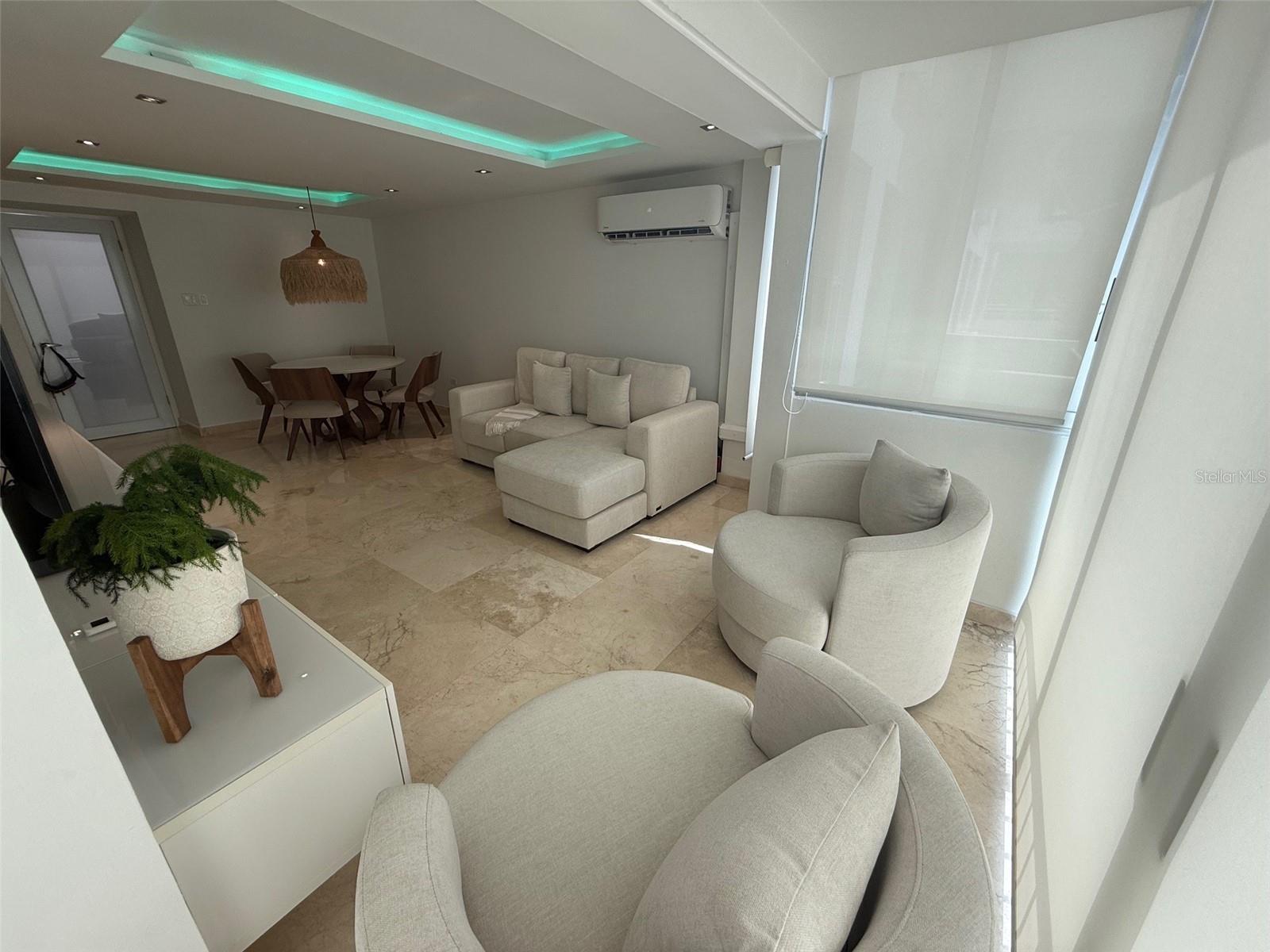 On The Beach- Discover the ultimate in comfort and elegance with this one Level fully decorated, modern , new facias and new doors, luxury apartment. This 1-bedroom, 1 full bathrooms residence offers spacious living areas with brand-new furniture The bedroom is thoughtfully designed with high-end furnishings and ample storage. The apartment boasts elegant lighting, and a fully equipped gourmet kitchen with top-tier appliances. Making this space move-in ready and perfect for stylish living. 1 covered parking spaces.