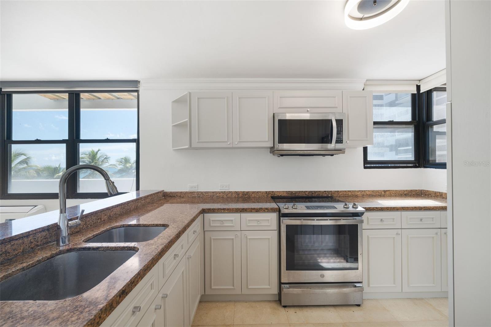 St. Mary's offers prime location, relaxed luxury and unparallel amenities. Located in the vibrant neighborhood of Condado, this bright and breezy apartment features a soothing view of the ocean and palm lined shore. Whether entertaining or relaxing after work, the open layout and panoramic view create a stunning backdrop for every day living. Amenities include direct beach access, fitness center, swimming pool, 24-hour security and full back-up generator.