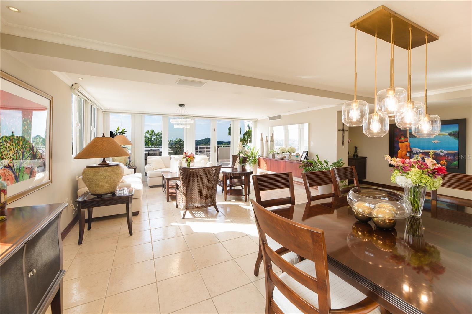Beautiful, fully furnished and equipped penthouse apartment featuring 2,145 SF of interior space and a 540 SF terrace facing PR-2, with panoramic views of San Juan, Cataño, Guaynabo, and Bayamón. The apartment includes an entrance foyer, a spacious kitchen, a dining area with an 8-seat table, a family room with sofas and a center table, a living room with a plasma TV, and two generously sized bedrooms—each with its own walk-in closet and full bathroom—as well as a laundry room. Thoughtfully decorated with unique and beautiful artwork, this home is in mint condition. Two covered parking stalls are conveniently located near the entrance to the elevator lobby. Building amenities include a pool, gym, visitor parking, full backup power generator, water cistern, and an air-conditioned lobby. Offered in completely move-in-ready condition with high-end finishes and furniture.